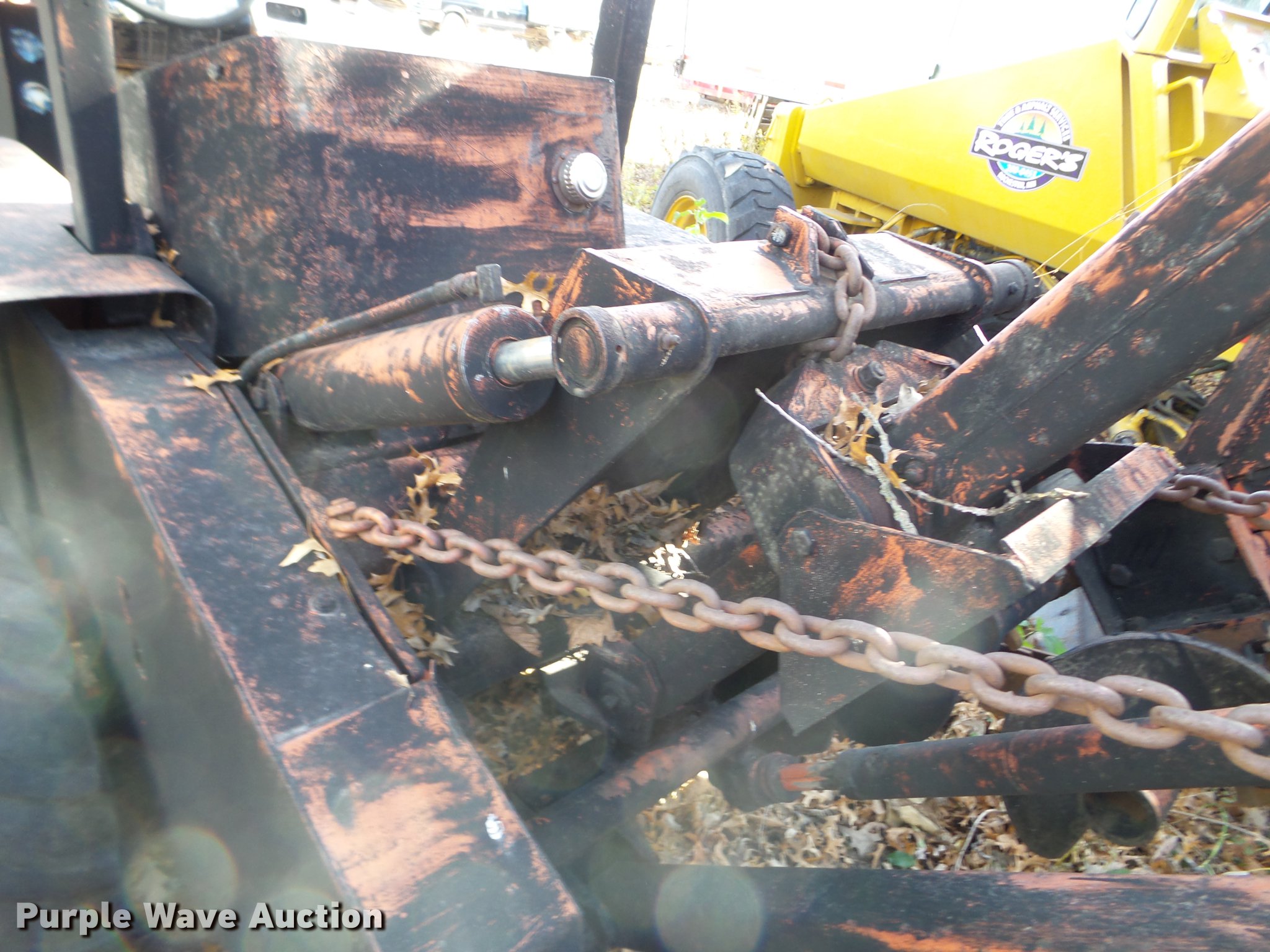 Ditch Witch R65 trencher. Four cylinder gas engine, Manaul transmission 3F-1R gears, Four wheel drive, 80" trencher boom length 5" cutting width, 10" end idler diameter, 15"W four tooth backhoe bucket Outriggers, Model 20RL2 combination unit, 31 x 15.5-15 tires, Unknown operating condition, Serial 647526. Rogers Tree Service & Construction. 2145 Marion Rd SE. Rochester, MN 55904
