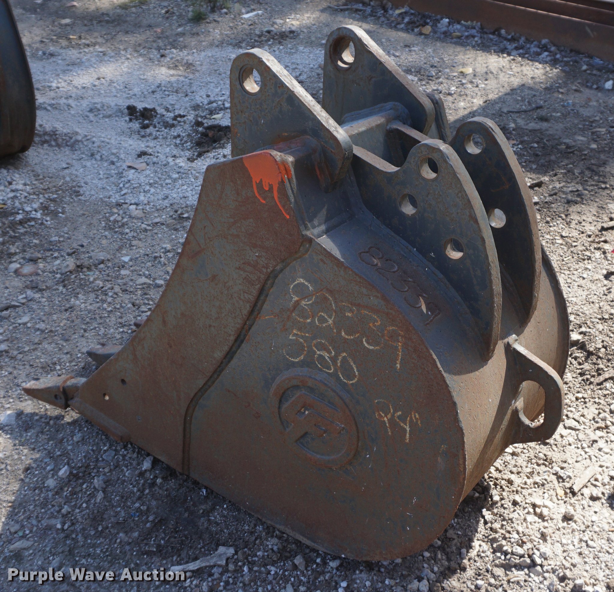 Purple Wave is selling a used Backhoe Attach. in Kansas. This item is a CF 24"W backhoe bucket with the following: (4) teeth, Fits Case 580 backhoe