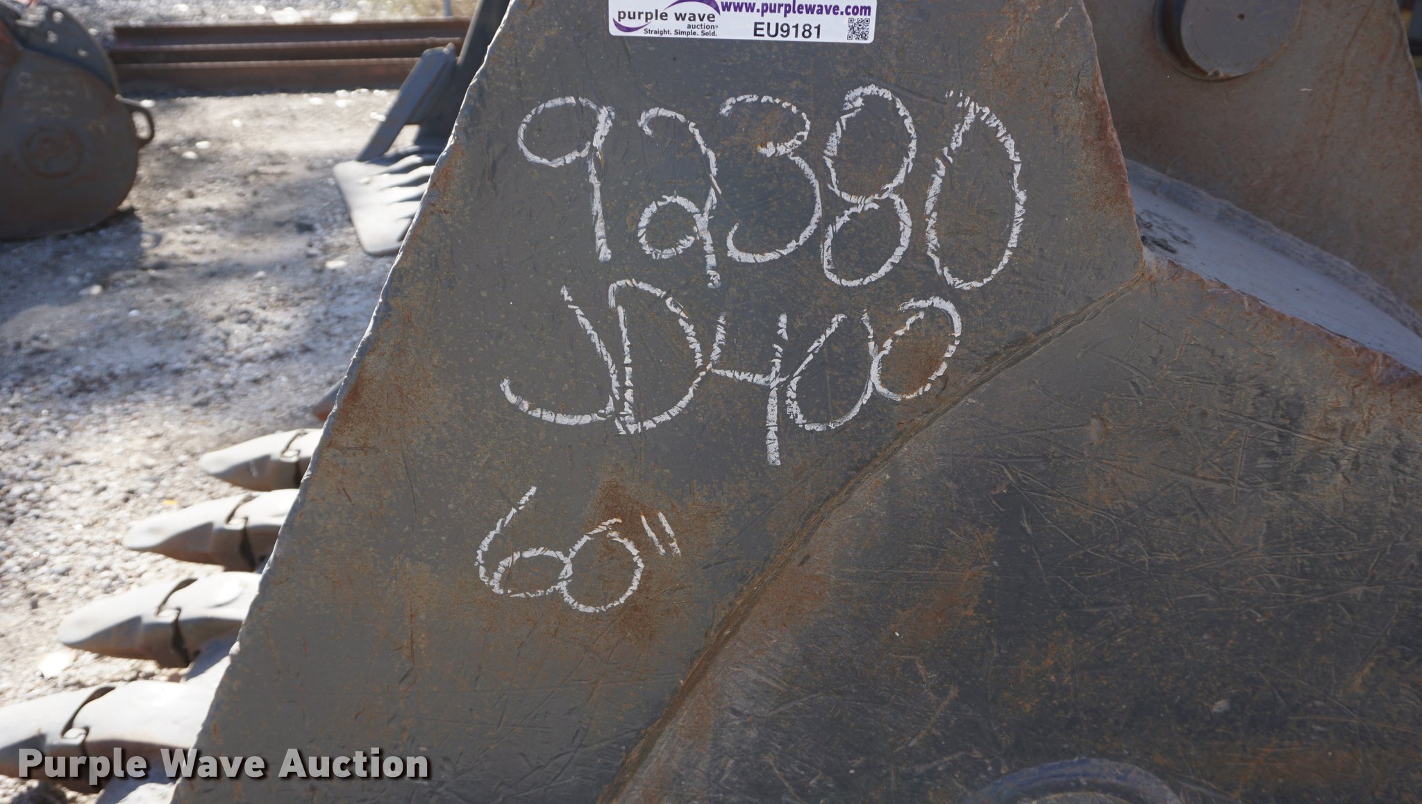 Purple Wave is selling a used Excavator Attach. in Kansas. This item is a CF 60"W excavator bucket with the following: (6) teeth, Side cutters, Fits John Deere 400 excavator