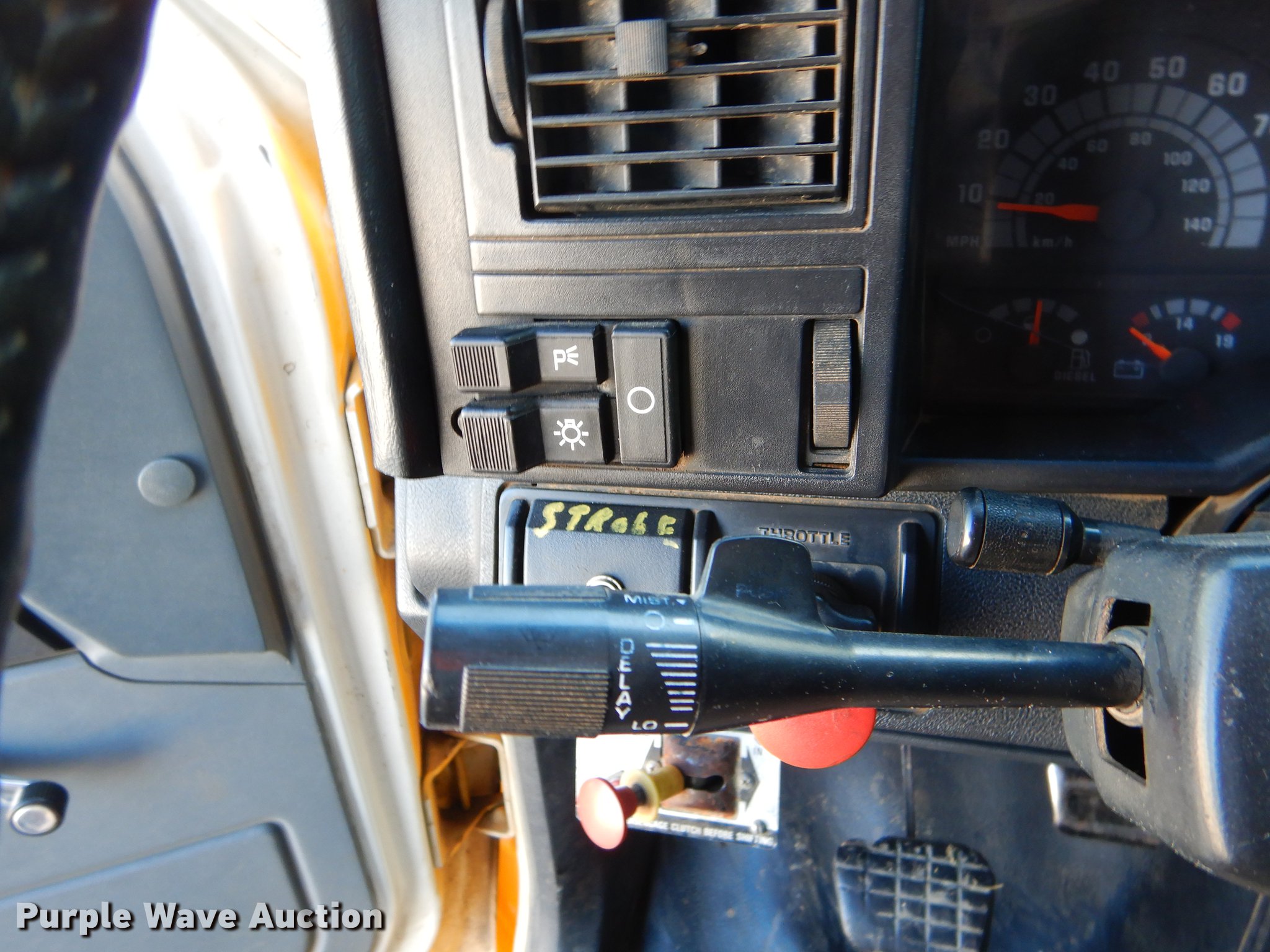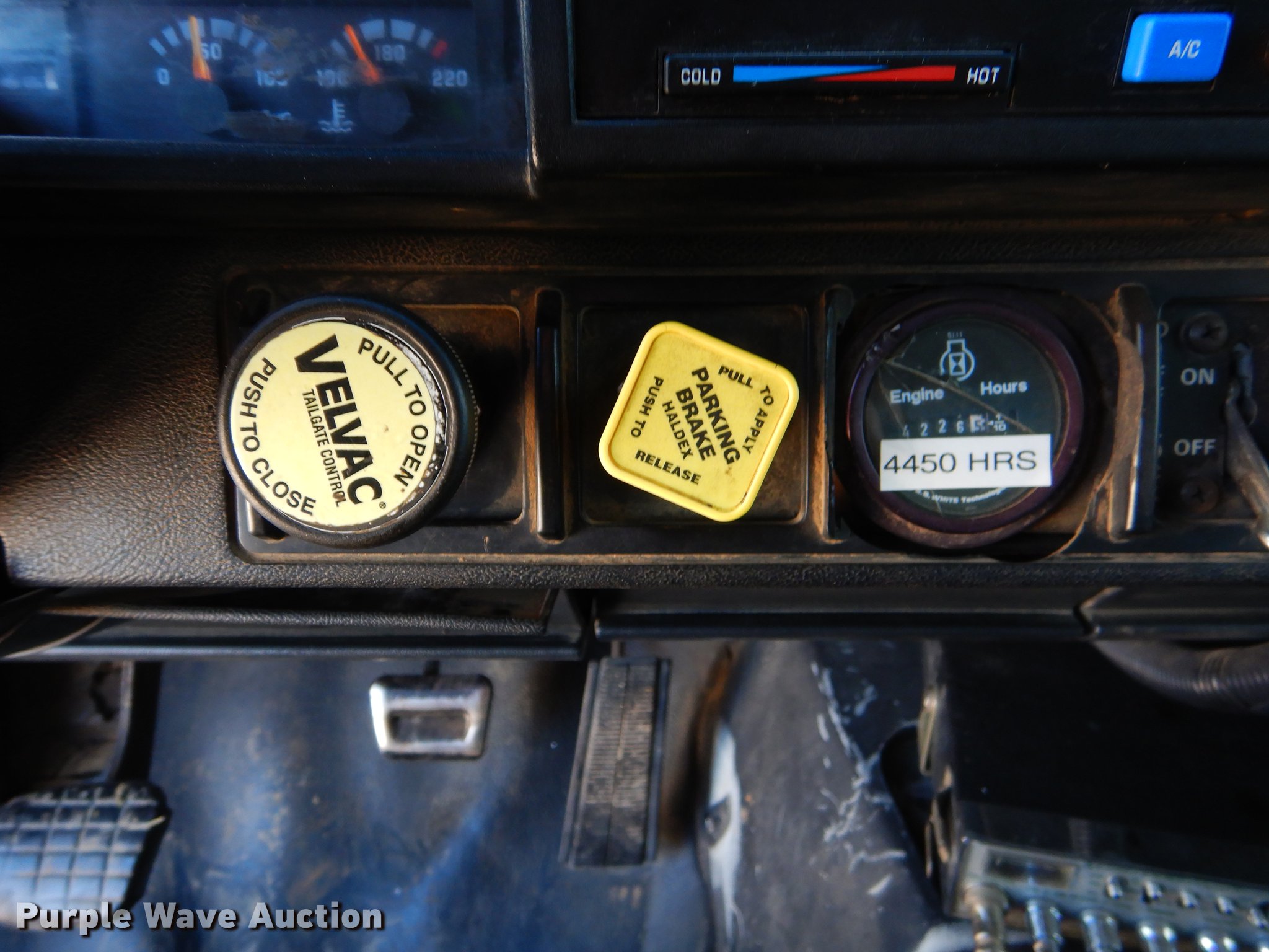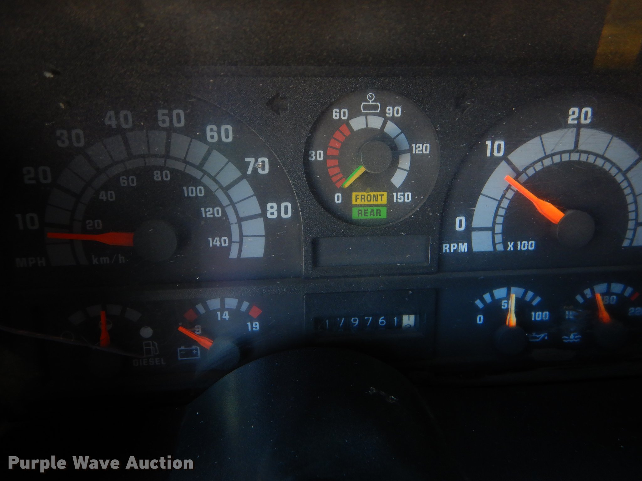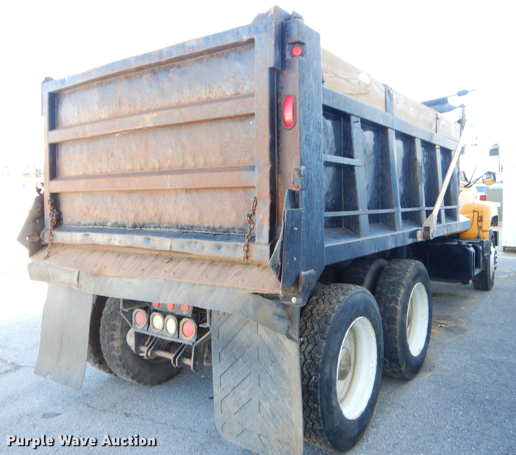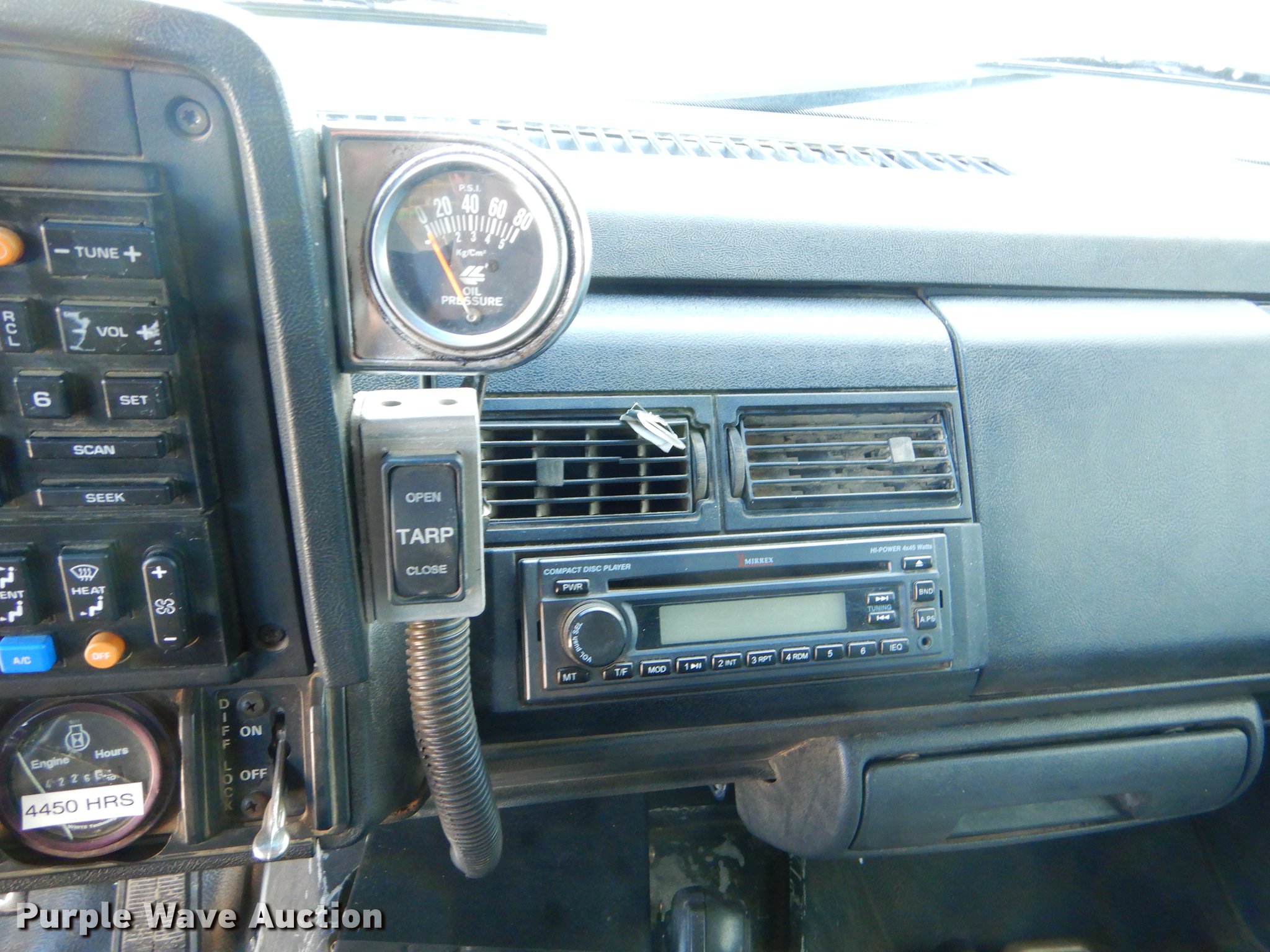 Purple Wave is selling a used Construction Dump Truck in Missouri. This item is a 1990 GMC C6000 dump truck with the following: 179,761 miles on odometer, Caterpillar 3116 6.6L L6 turbo diesel engine, Eaton Fuller manual transmission, Inter-axle differential lock, Tandem axle, AC and ehat, Tilt, AM/FM, Suspension seat, PTO, 14'L x 96"W steel dump bed, 36" side height, 10" side board height, Single ram hoist, Manual operated end gate, Roll tarp, Dual fuel tanks, 196" wheel base, Spring over walking beam suspension, Air brakes, 11R22.5 front tires, 285/75R24.5 rear tires, Engine smokes