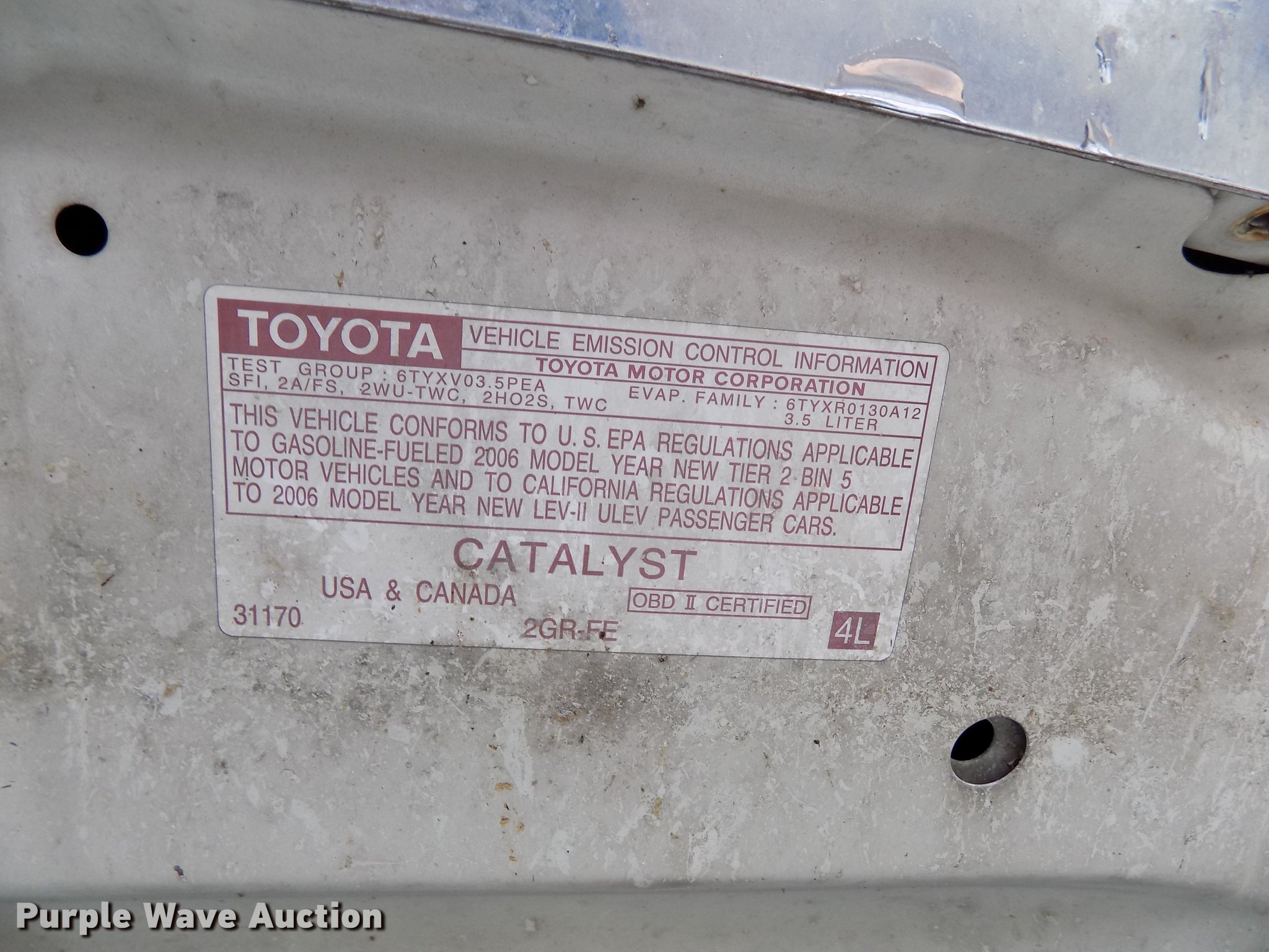 Purple Wave is selling a used Passenger Vehicle in Kansas. This item is a 2006 Toyota Avalon XL with the following: 207,297 miles on odometer, 3.5L V6 DOHC 24V gas engine, Automatic transmission, AC and heat, Tilt, Cruise, AM/FM/CD/Cassette, Power locks, windows, mirrors, and seat, Cloth interior, 215/60R16 tires, Cracked windshield, Passenger side mirror broken