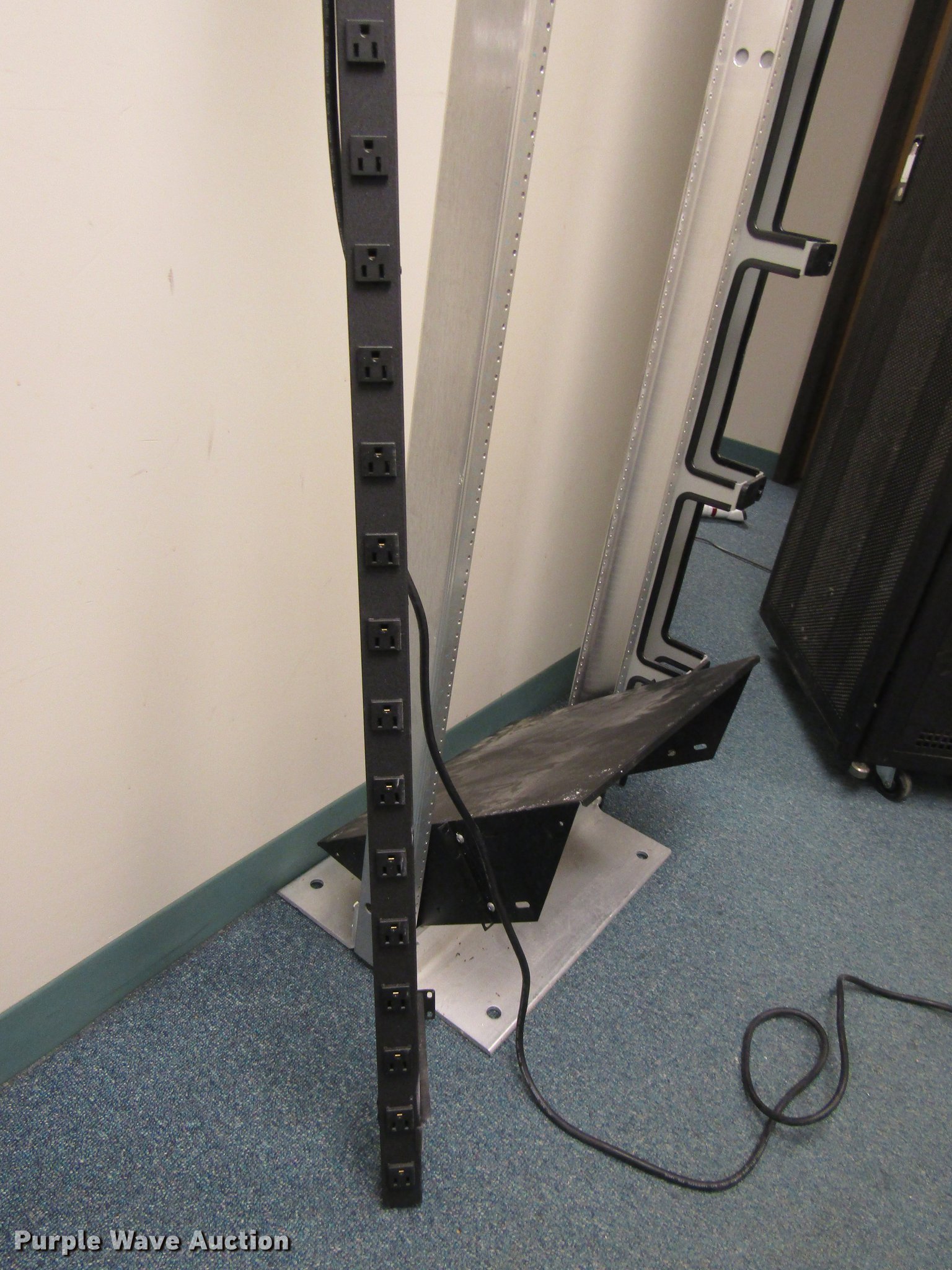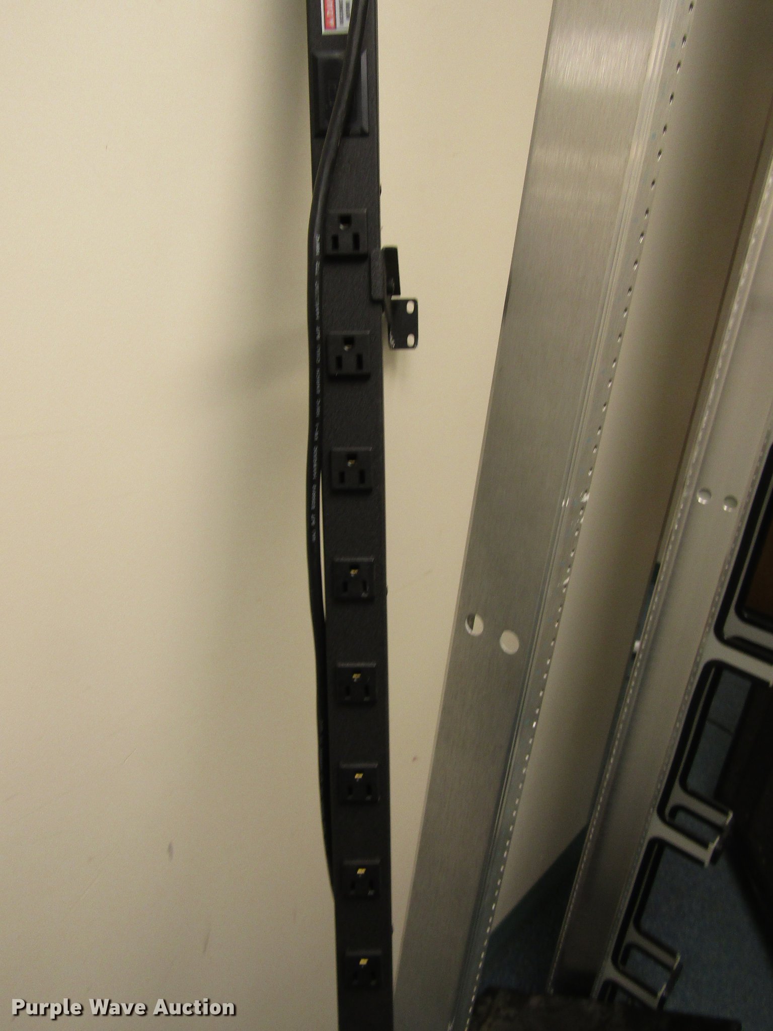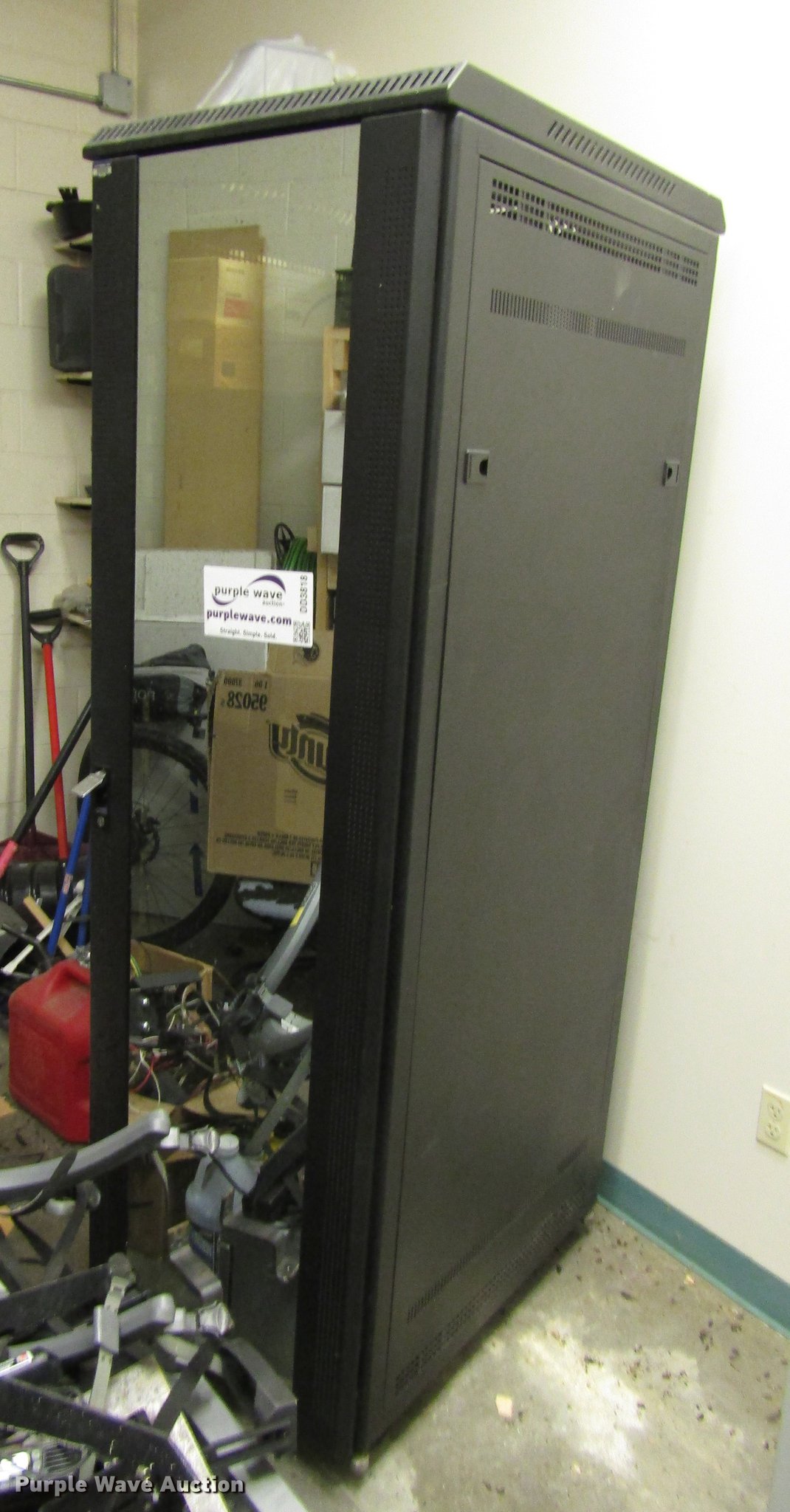 Purple Wave is selling a used Electronics in Kansas. This item is a Electronic cabinet with the following: 25"L x 36"W x 80.5"H, (3) shelves, Cooling fan, Server rack, 20 outlet power strip