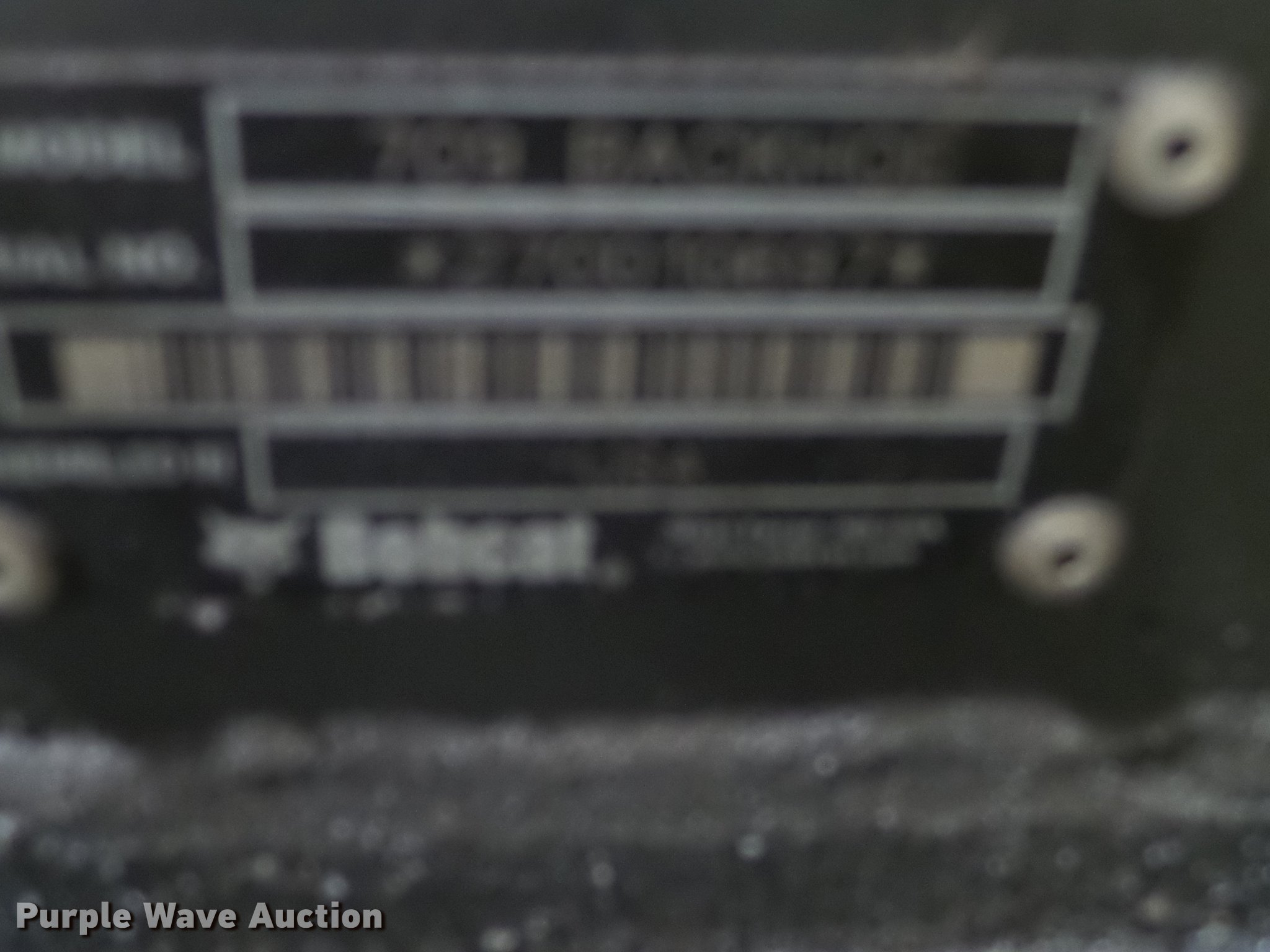 Purple Wave is selling a used Skid Steer Attach. in Iowa. This item is a Bobcat 709 skid steer backhoe with the following: 45" stick length, 15"W bucket, (4) bolt-on teeth, Outriggers