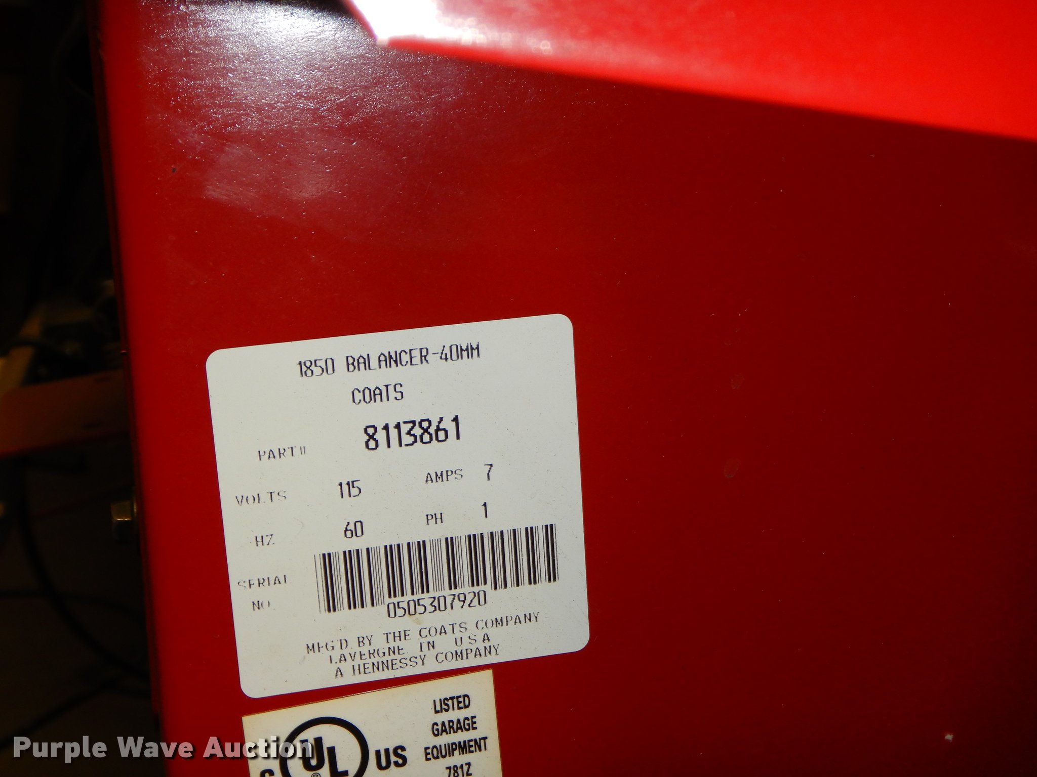 Purple Wave is selling a used Tools in Kansas. This item is a Coats XT1850 tire balancer with the following: 37"L x 57"W x 58"H, 115V, Single phase, 15" monitor, Non-operational unit, boards need replaced, Serial 0505307920