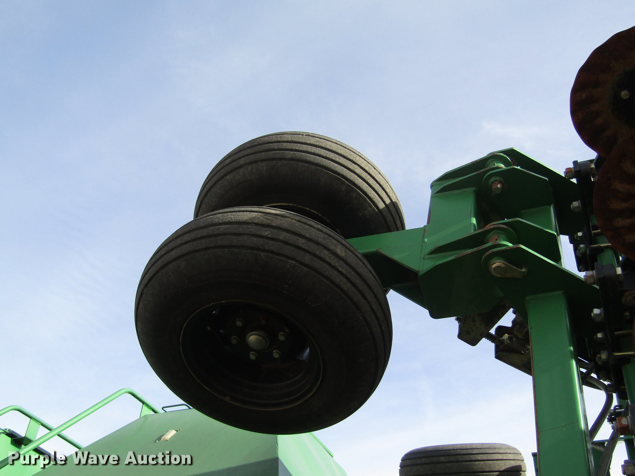 Purple Wave is selling a used Grain Drill or Seeder in Kansas. This item is a Great Plains NTA3510 air no-till grain drill with the following: 28,945 acres on meter, 40 row units, 10" row spacing, Hydraulic wing fold, Bulk fill system, 110 bushel capacity, Air delivery, Great Plains ADC2220 air commodity cart, 110 bushel fertilizer capacity, Vacuum metering, No-till coulters, Seed firmers, Double disk openers, Single rubber closing system, Dry fertilizer, Seed firmer application, Great Plains monitor, (4) 21.5L-16.1 transport tires, (12) 11L-15SL drive tires, Serial Z1254, GPY1276