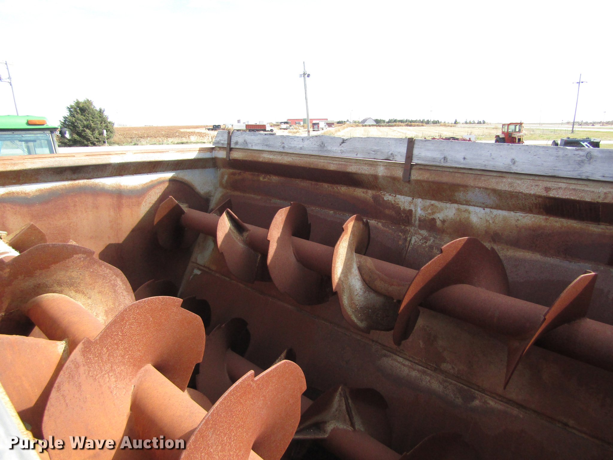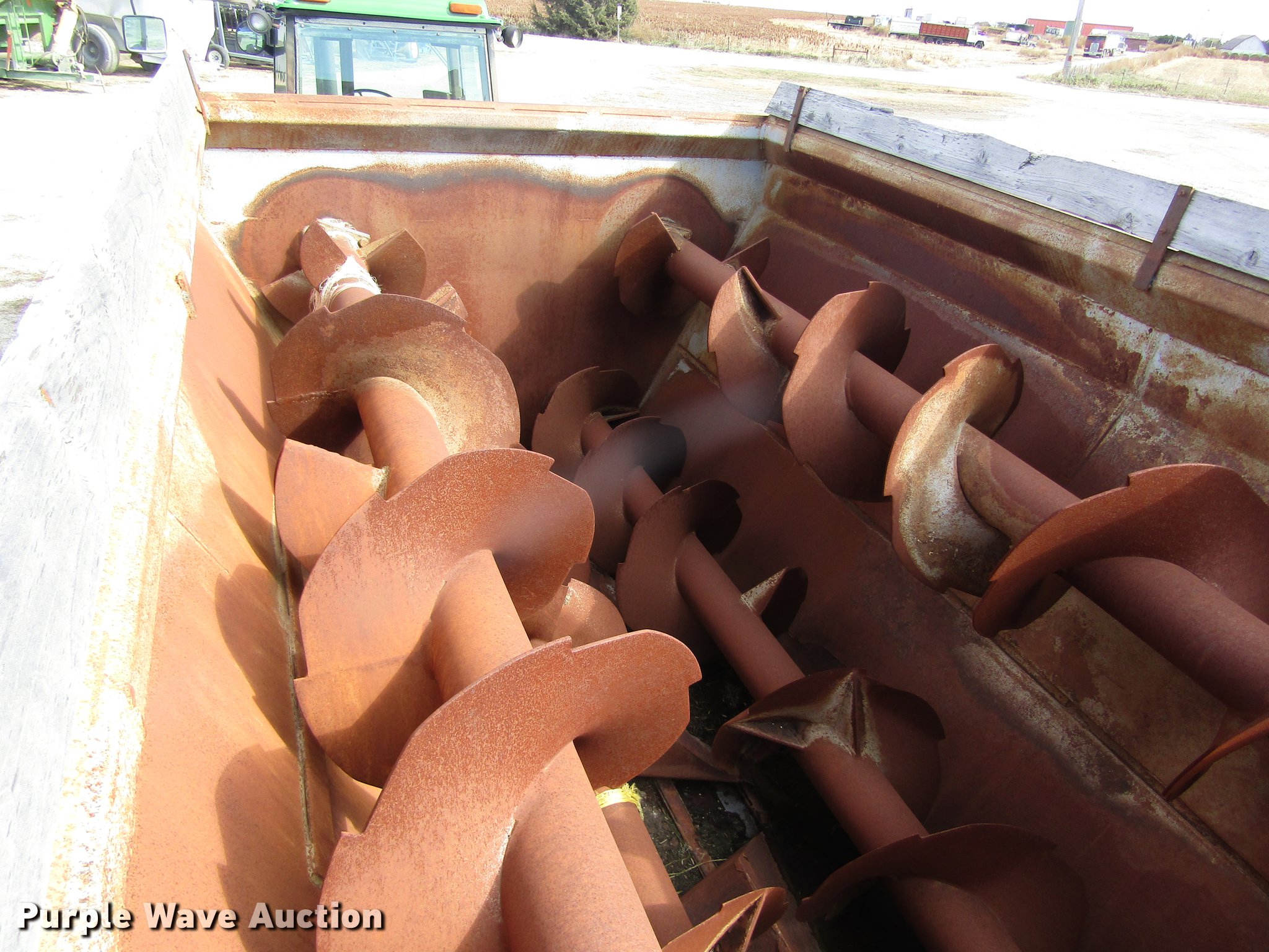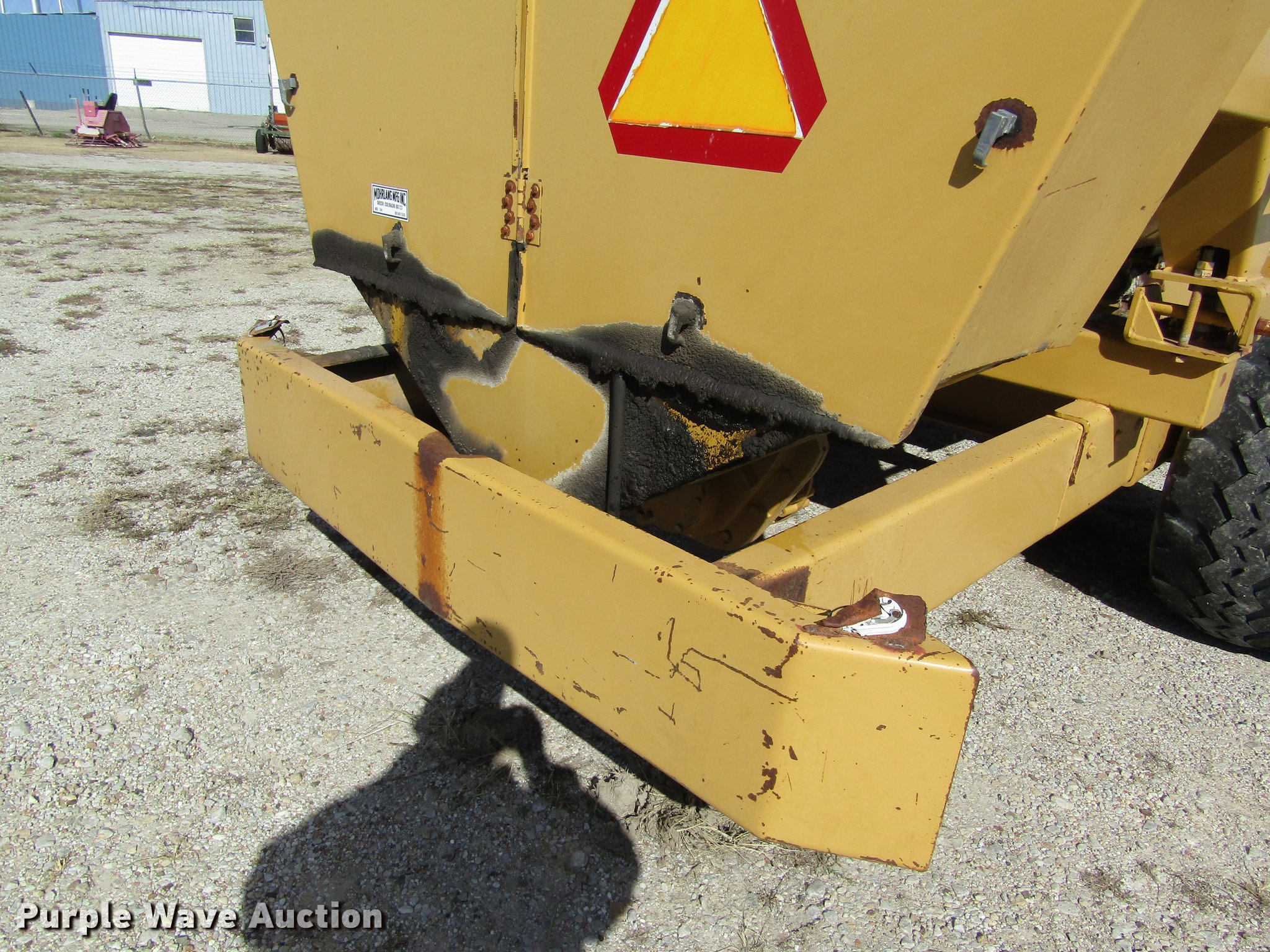 Purple Wave is selling a used Feed Mixer or Bale Processor in Kansas. This item is a Mohrlang 450 feed mixer with the following: 1000 PTO, Side chain discharge, Manual chute, Hydraulic door, 4" diameter auger, Pin hitch, Jack stand, 18-19.5 tires, Unknown condition of scales, Serial 1266