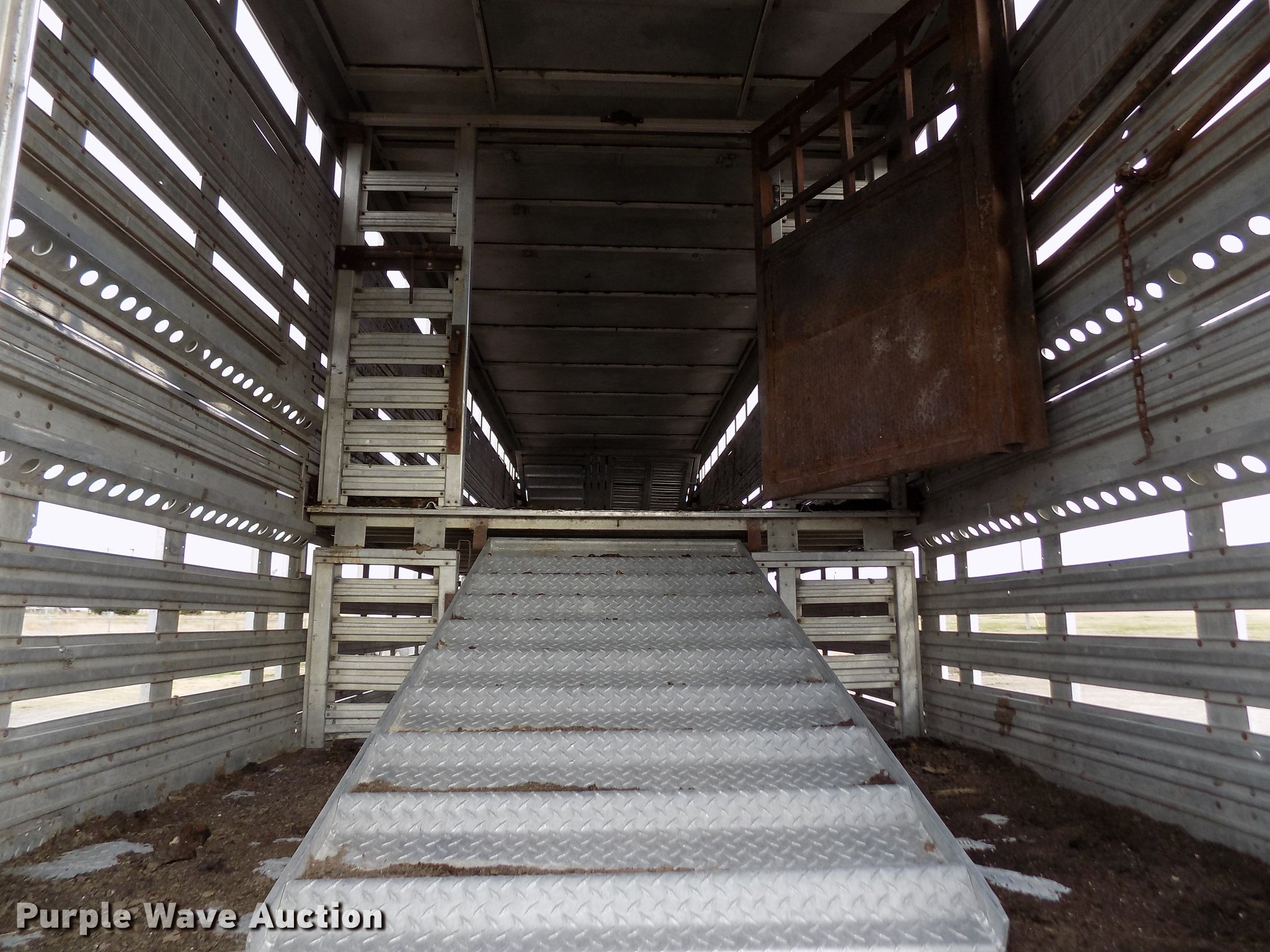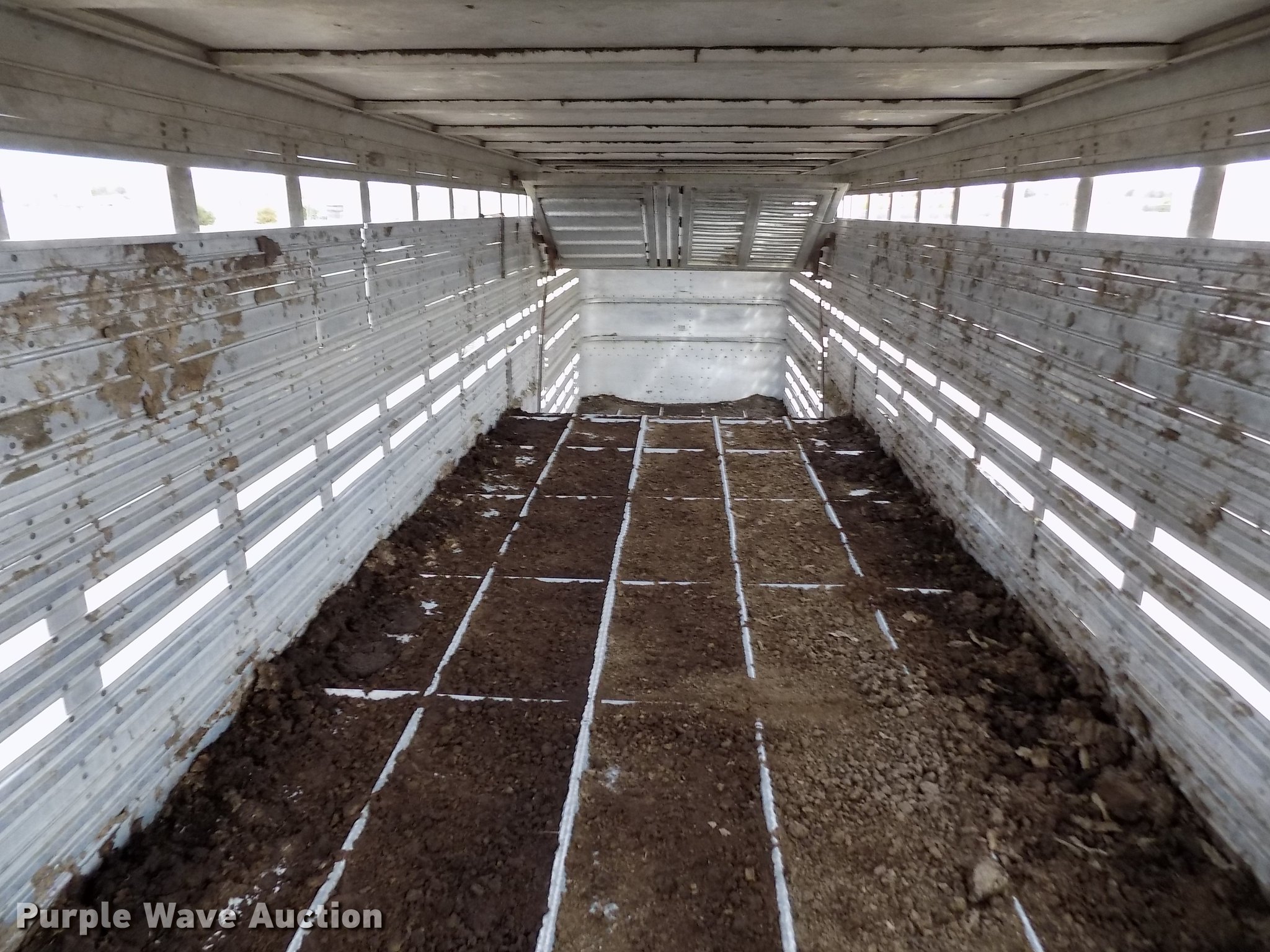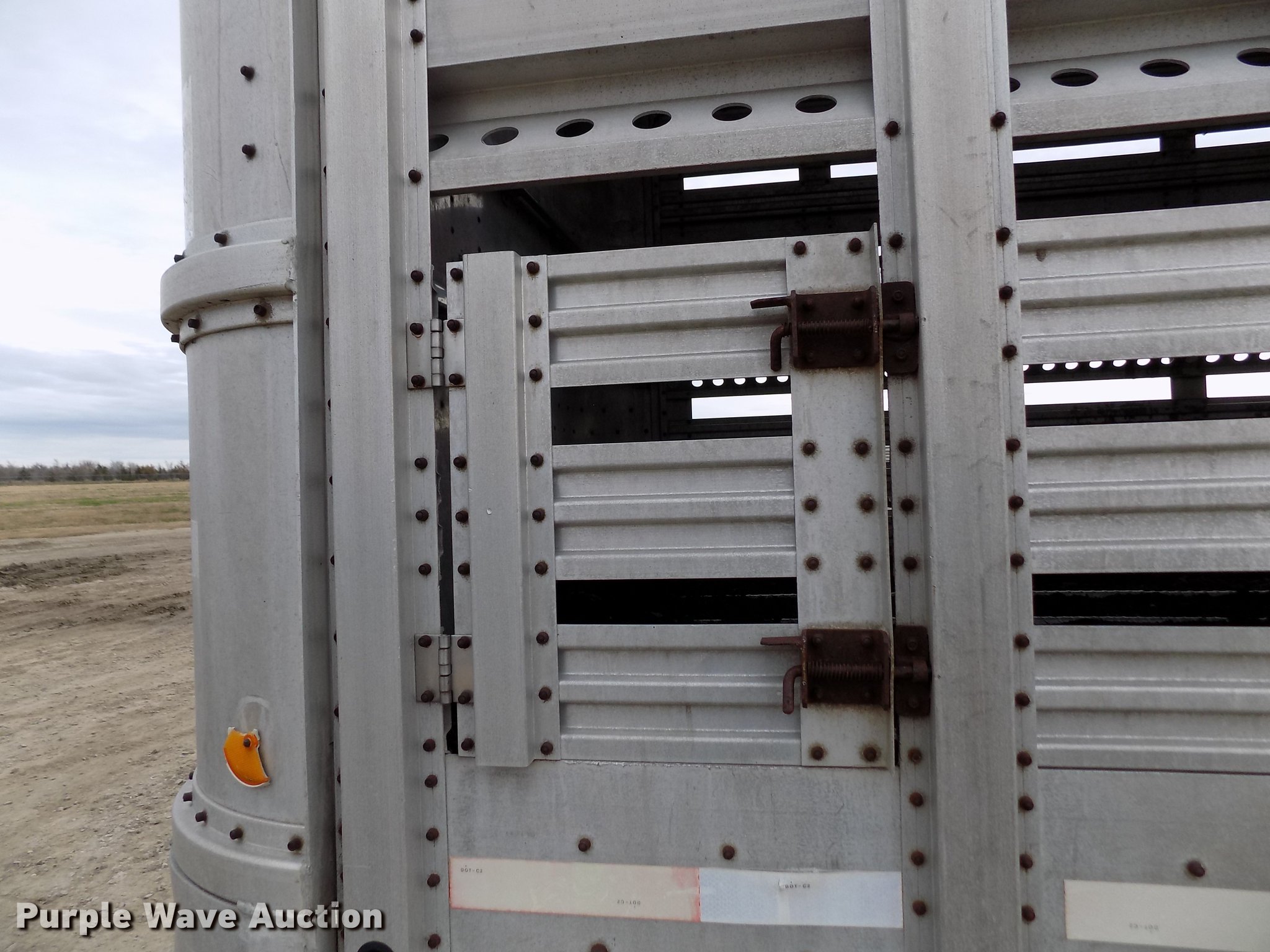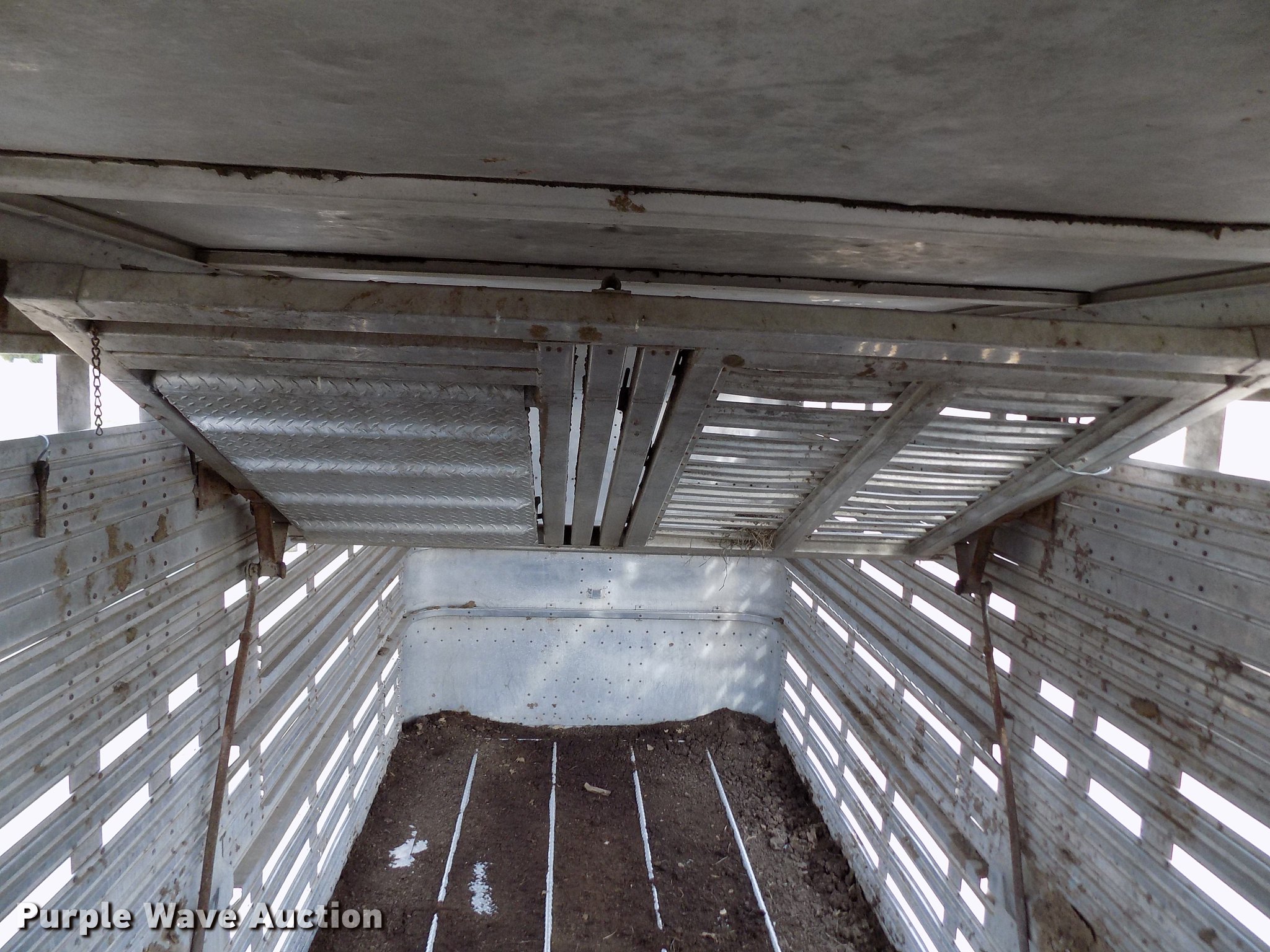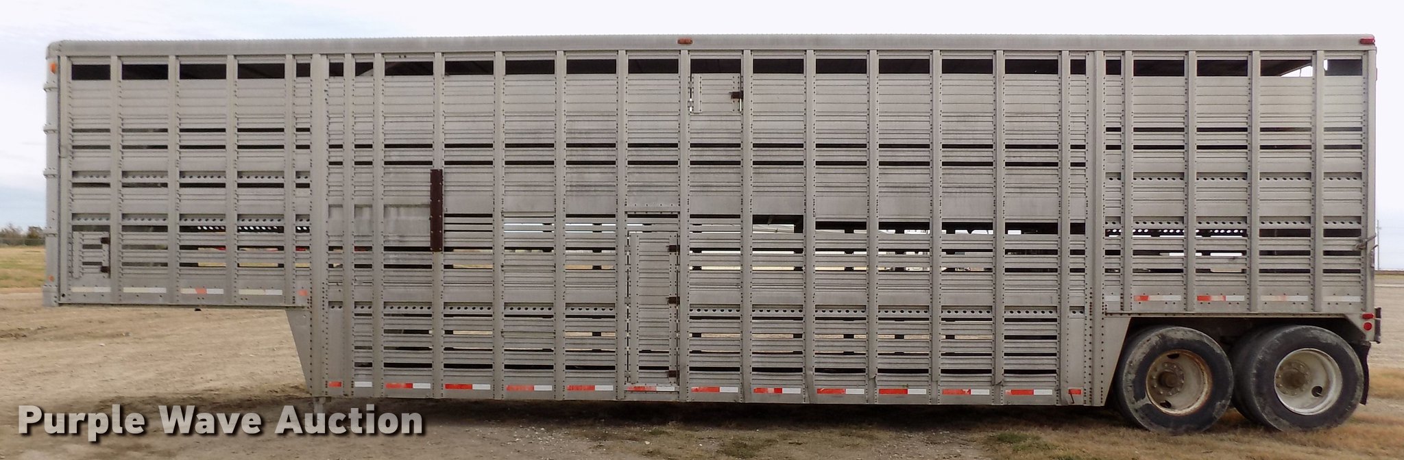 Purple Wave is selling a used Livestock Trailer in Kansas. This item is a 1974 Wilson Cattle Pot livestock trailer with the following: 44'L x 96"W, Two decks, Roll up rear gate, Clean-out door, Dock bumper, Aluminum construction, Fifth wheel plate, Dual leg landing gear, Spring suspension, Air brakes, Steel wheels, 11R24.5 tires, GVWR 60,000 lbs