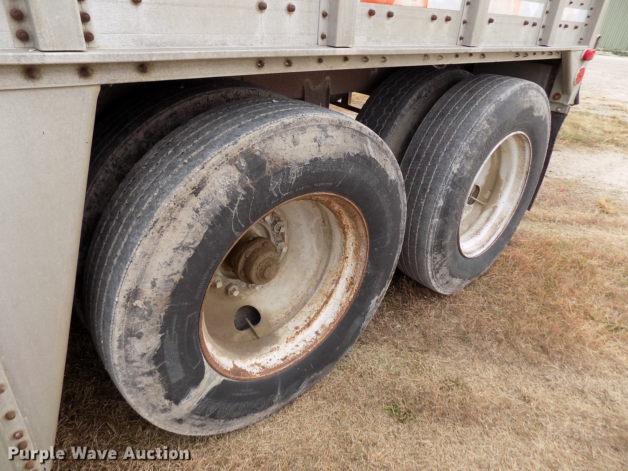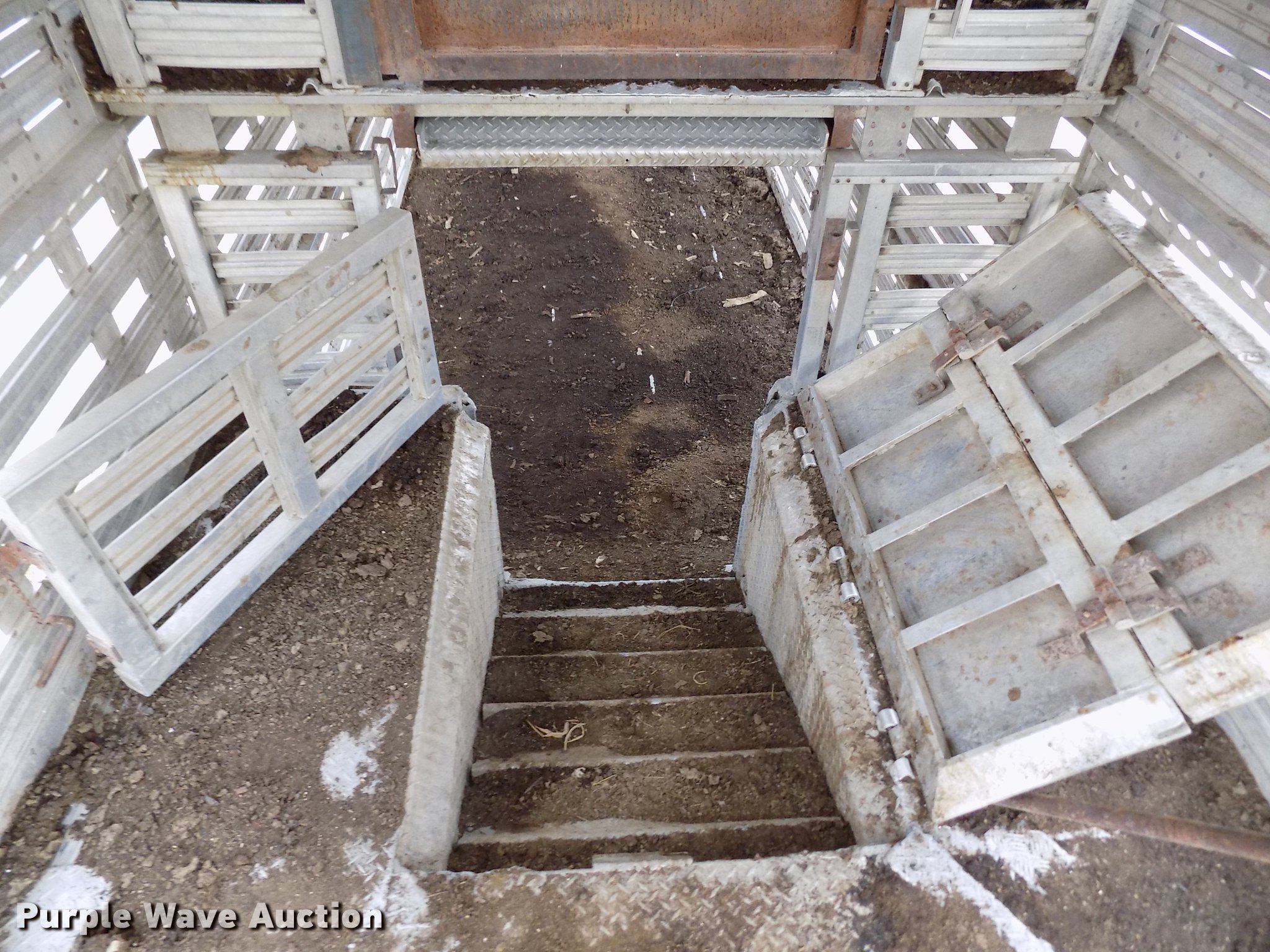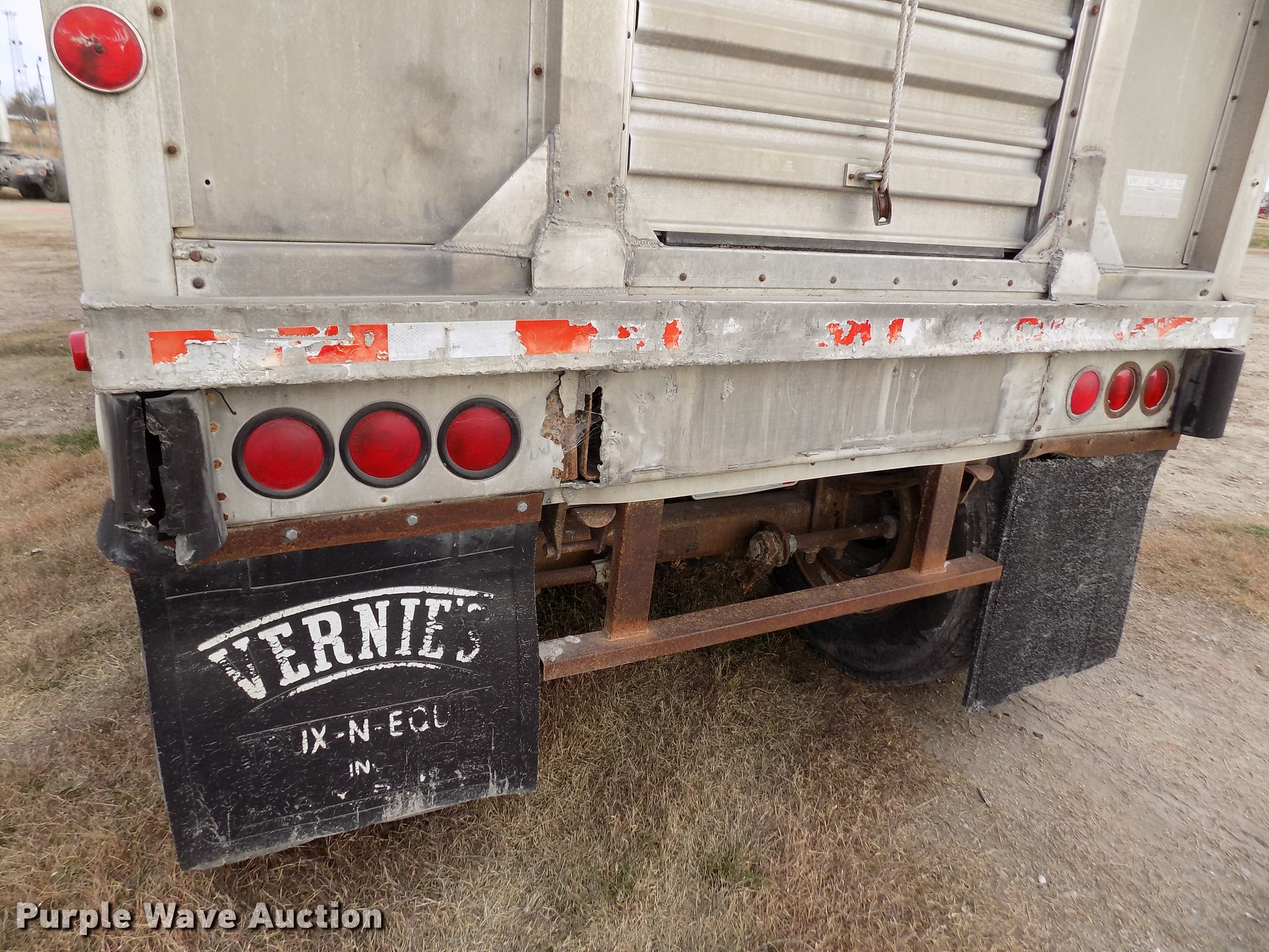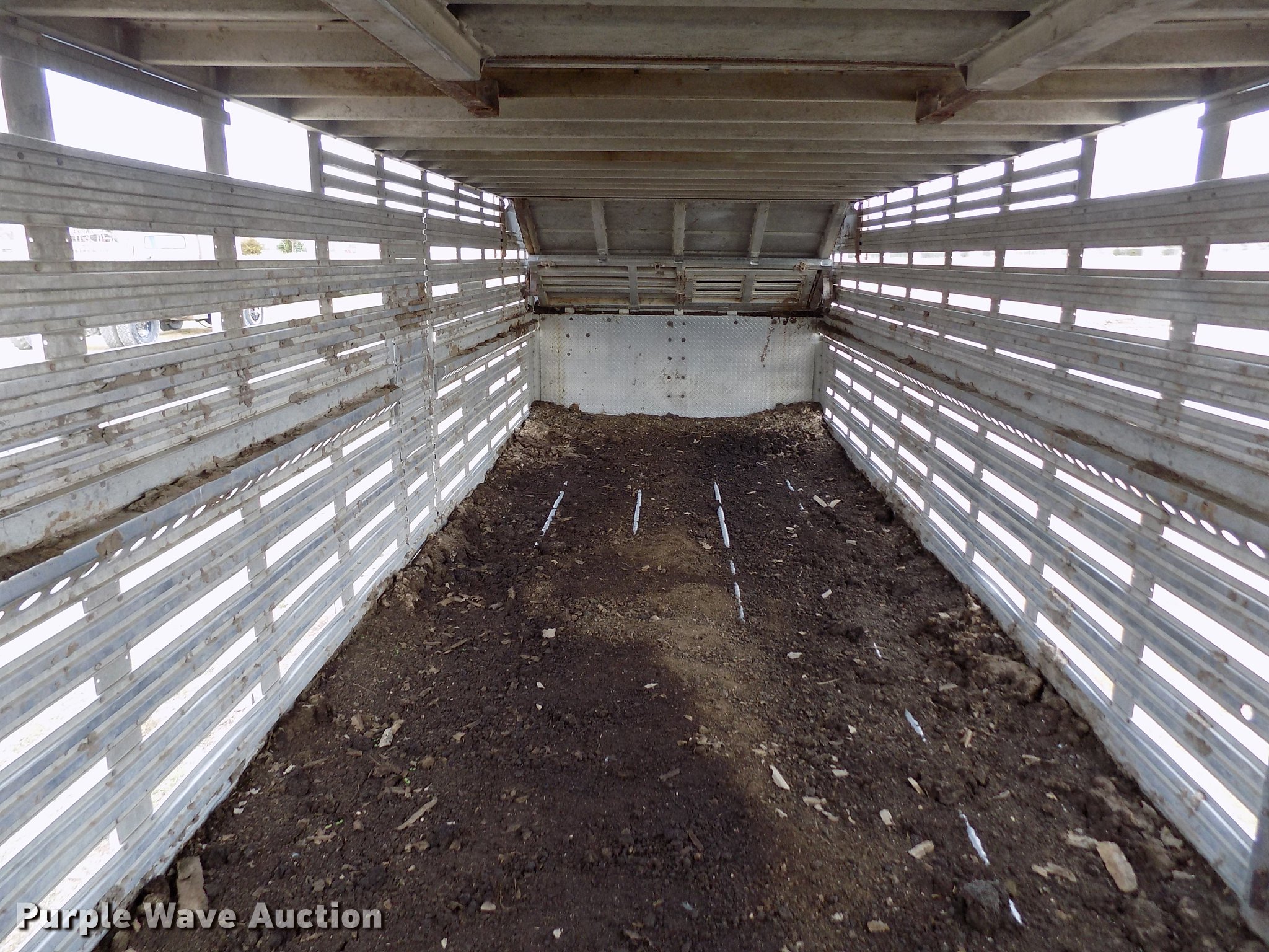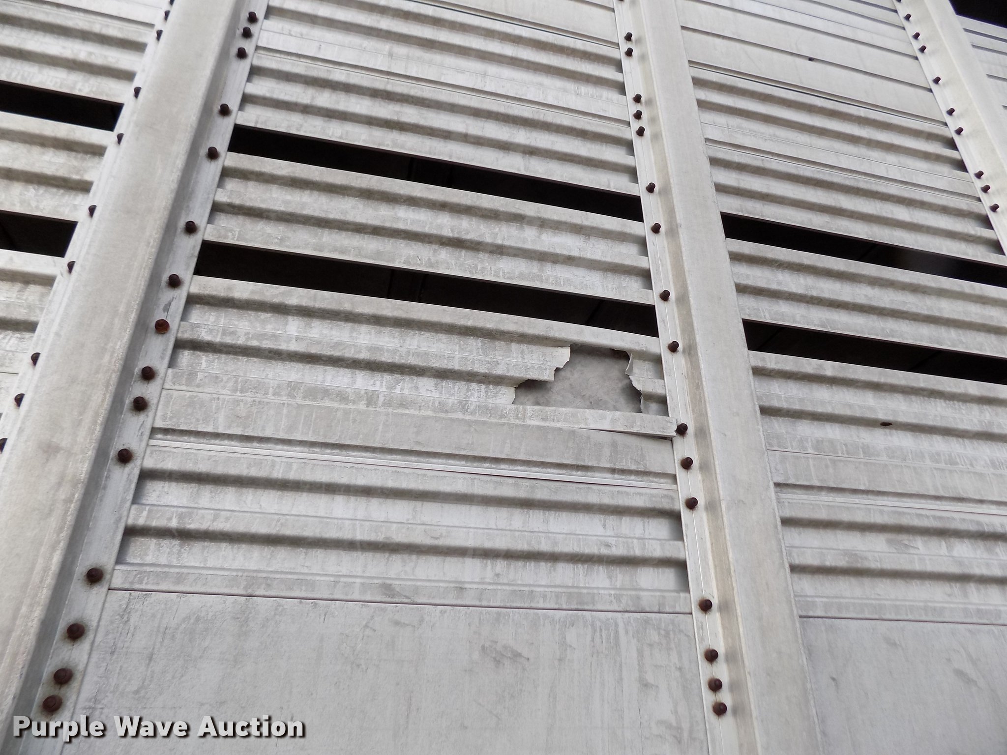 Purple Wave is selling a used Livestock Trailer in Kansas. This item is a 1974 Wilson Cattle Pot livestock trailer with the following: 44'L x 96"W, Two decks, Roll up rear gate, Clean-out door, Dock bumper, Aluminum construction, Fifth wheel plate, Dual leg landing gear, Spring suspension, Air brakes, Steel wheels, 11R24.5 tires, GVWR 60,000 lbs