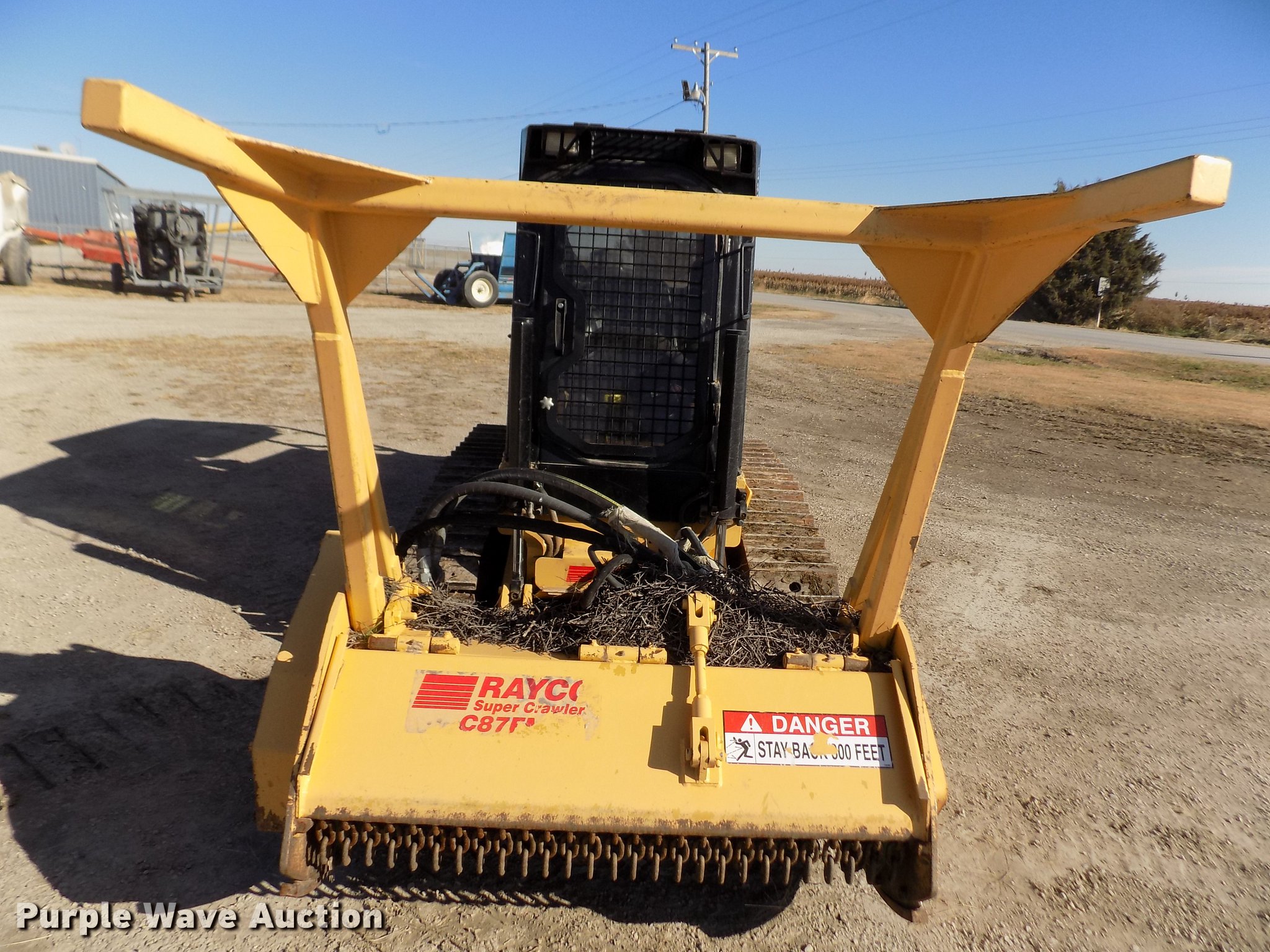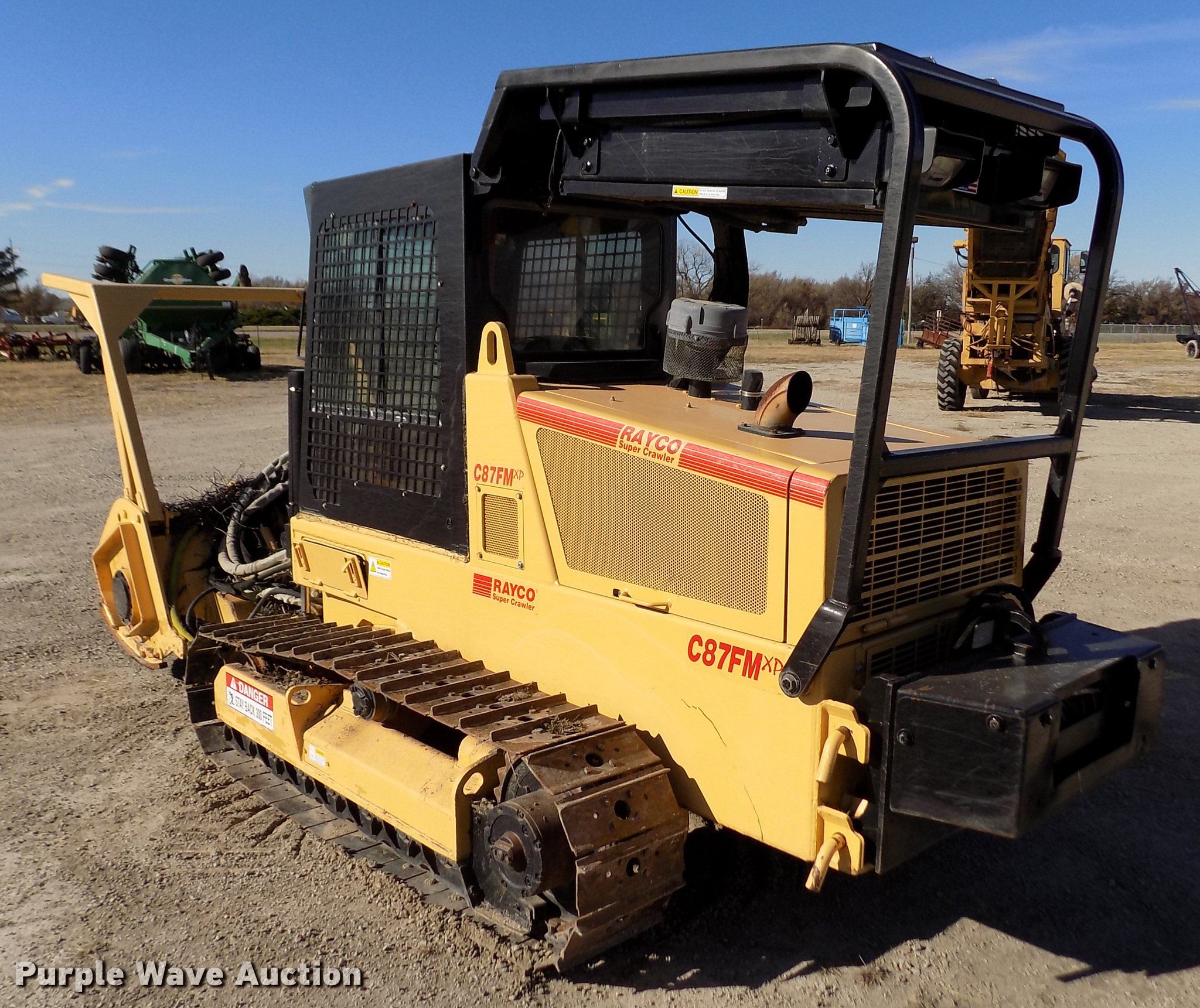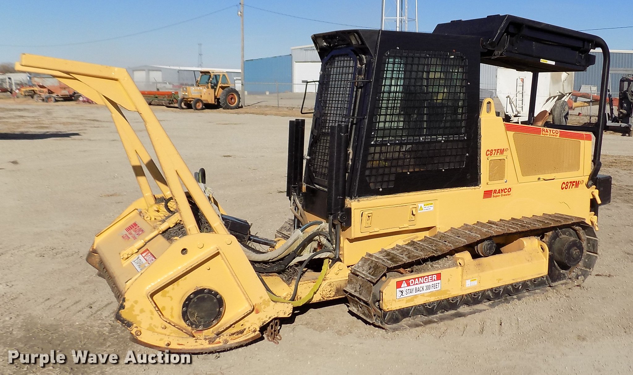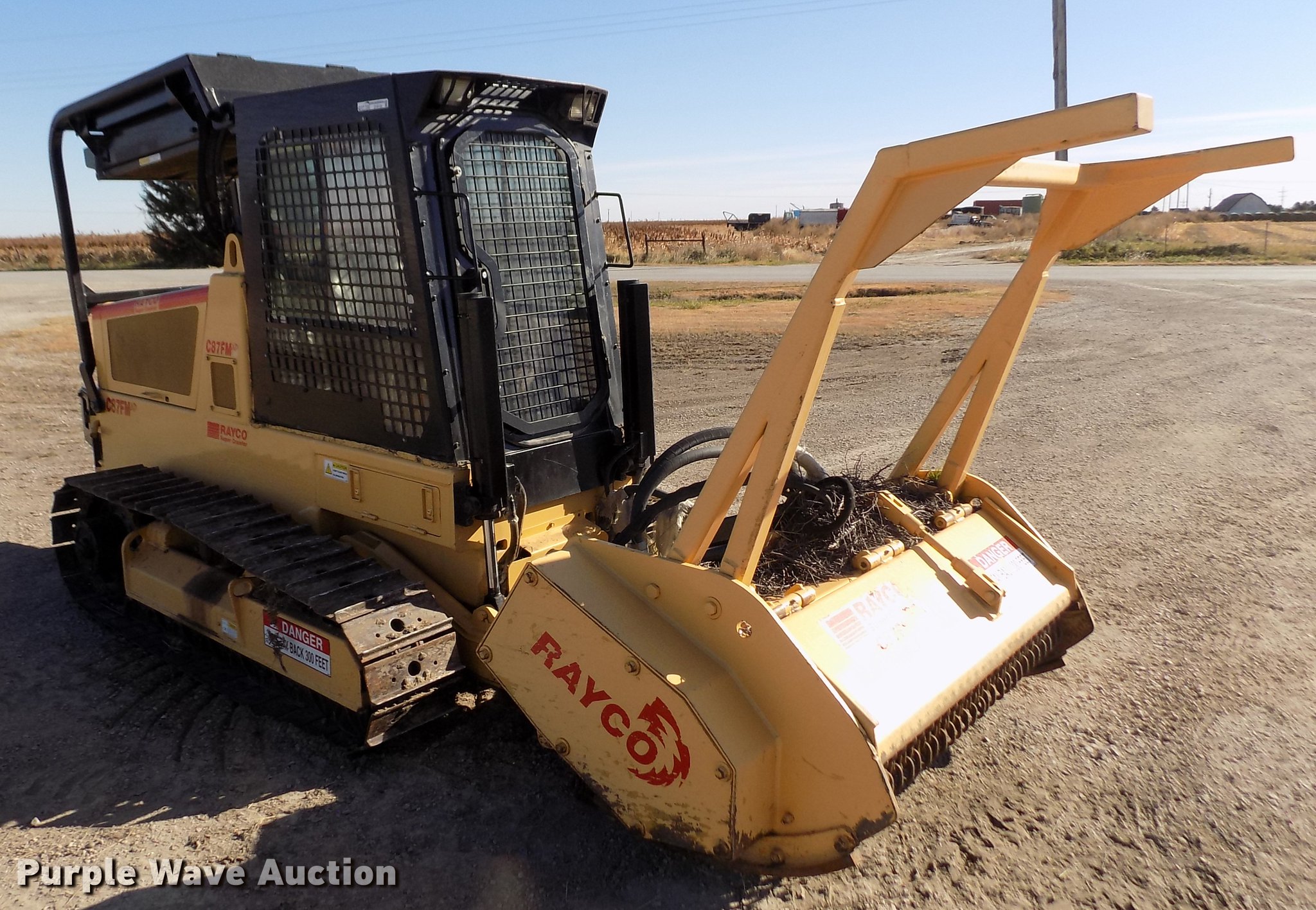 Purple Wave is selling a used Brush Mower in Kansas. This item is a 2007 Rayco C87FM XP Super Crawler brush cutter with the following: 784 hours on meter, 52" cut, Deutz 10159074 four cylinder turbo diesel engine, Hydrostatic transmission, Rear hydraulic winch, Window screen guards, Six bottom rollers, 14"W single grouser track pads, Serial C87FMXP00040107