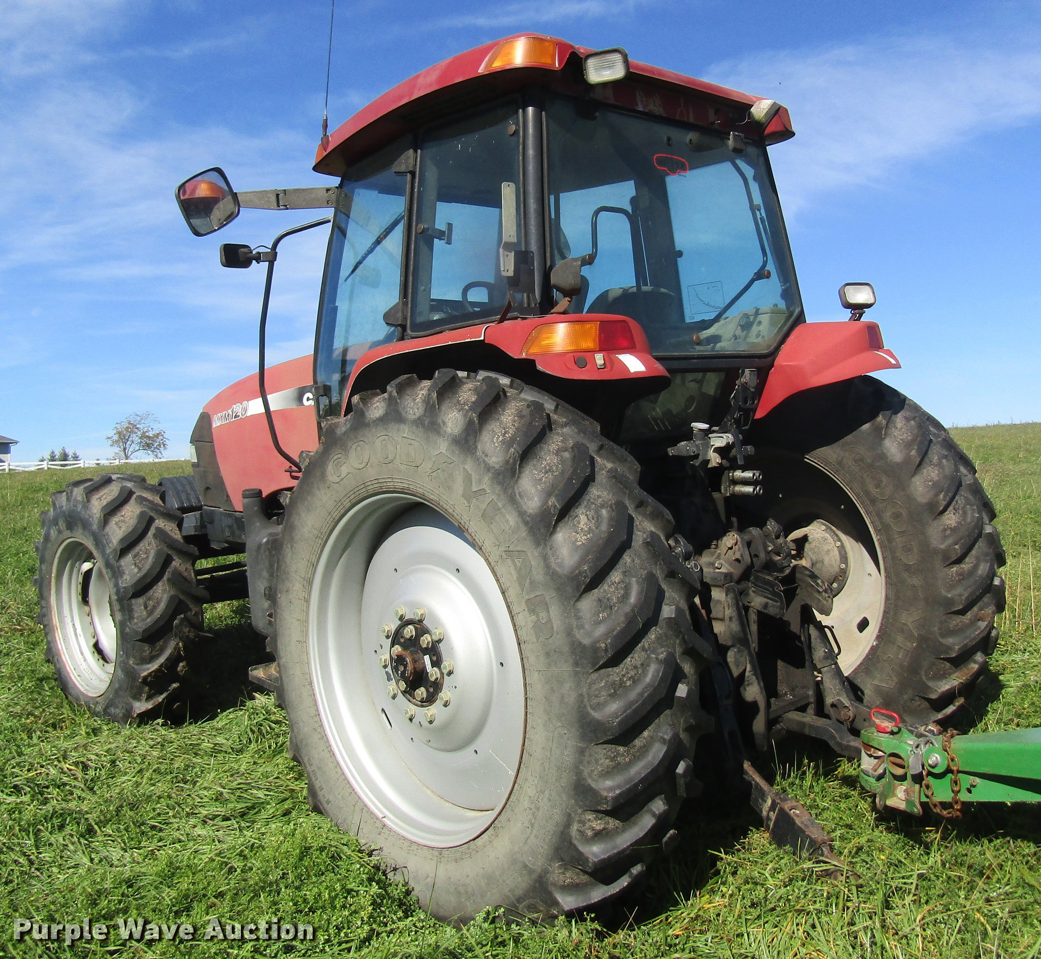 Purple Wave is selling a used Tractor in Missouri. This item is a Case IH MXM120 tractor with the following: 7,974 hours on meter, CNH 7.5L six cylinder turbo diesel engine, Powershift transmission, 18F-6R gears, AC and heat, AM/FM, Suspension seat, Shade, Case baler moisture tester monitor, Three point, Seven pin outlet, 1000 PTO, (2) rear hydraulic remote sets, (10) suitcase weights, 380/85R30 front tires, 480/80R42 rear tires