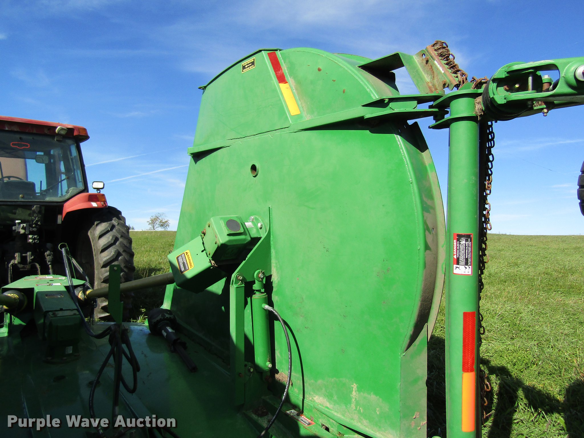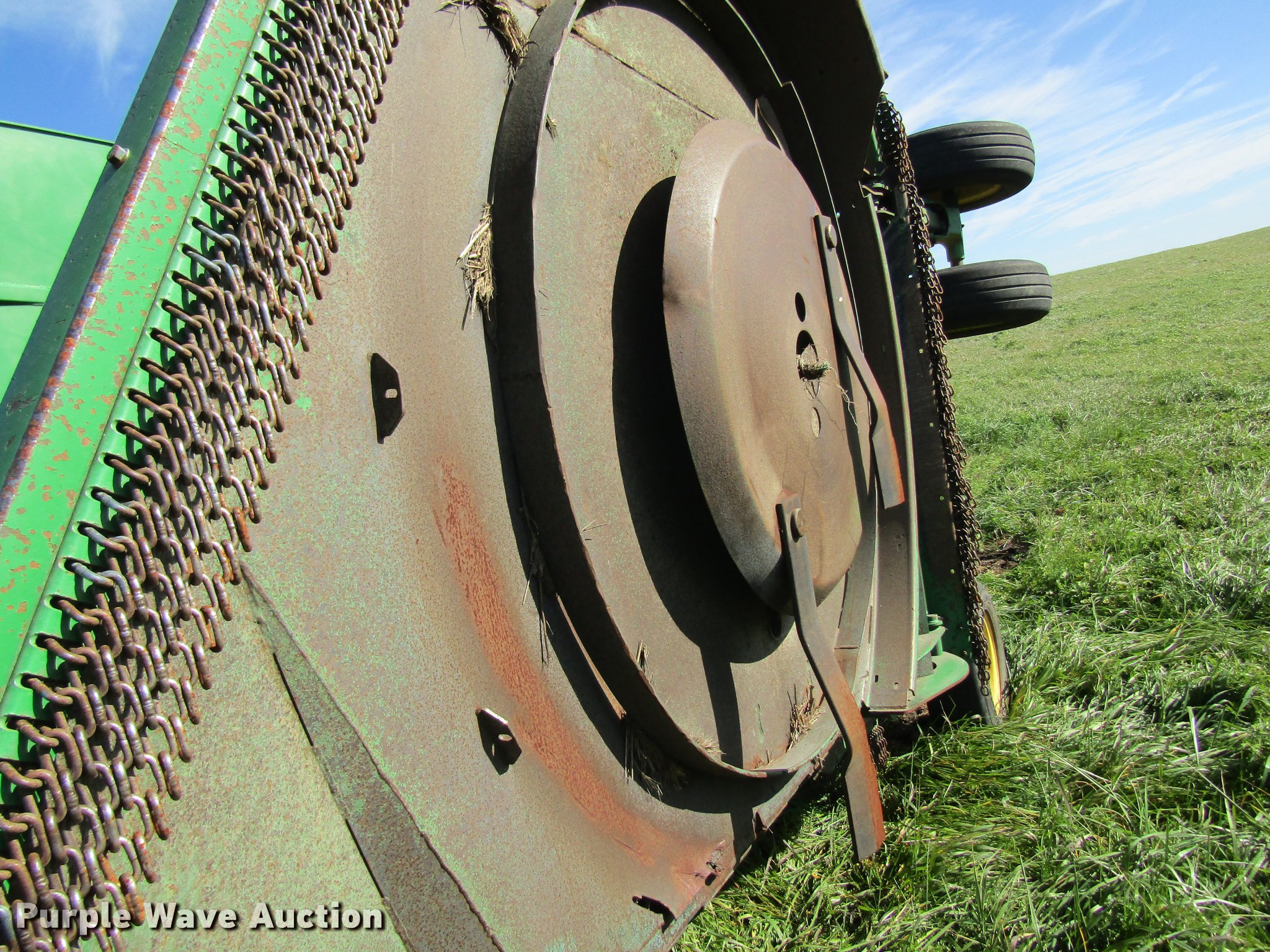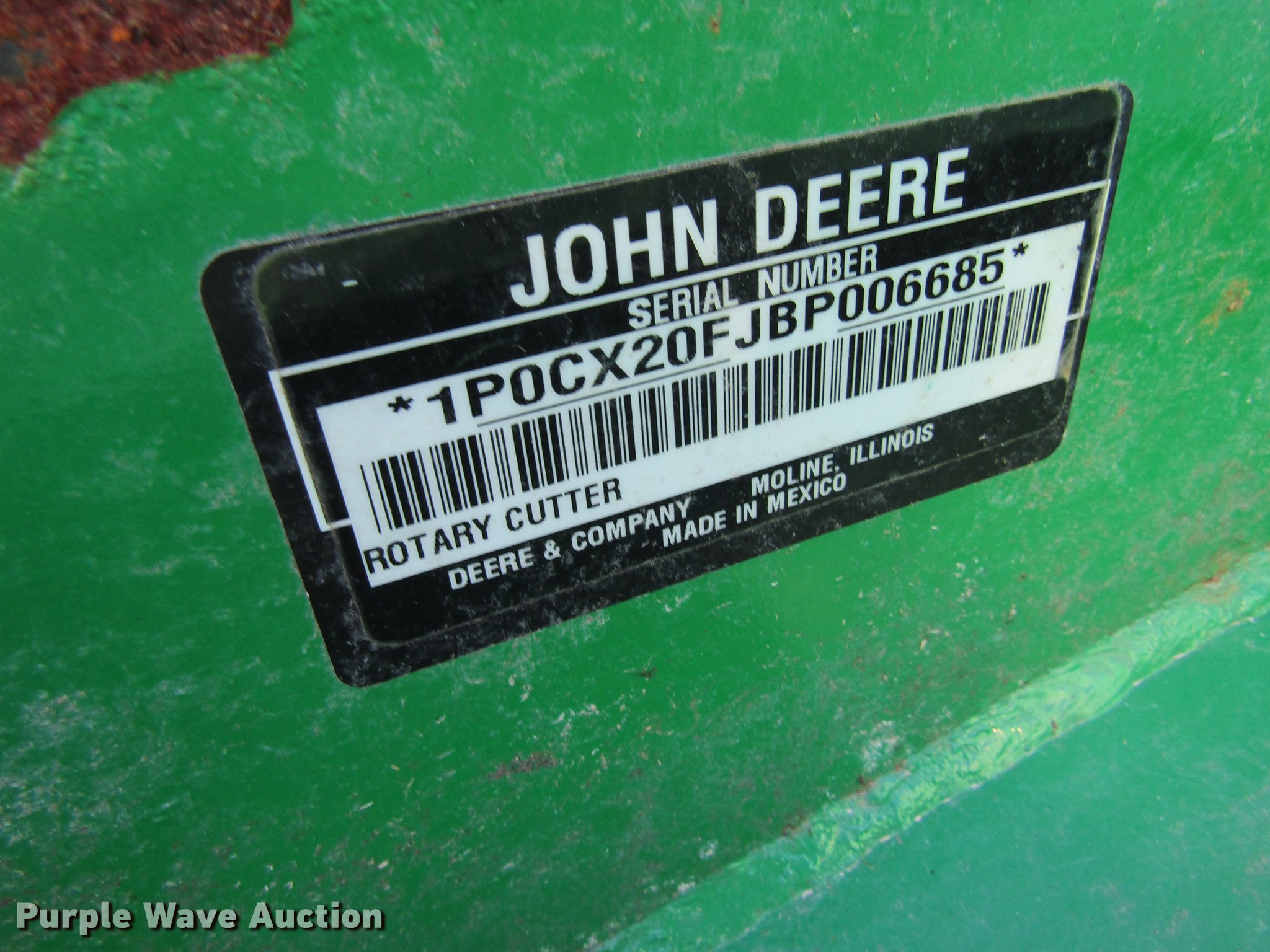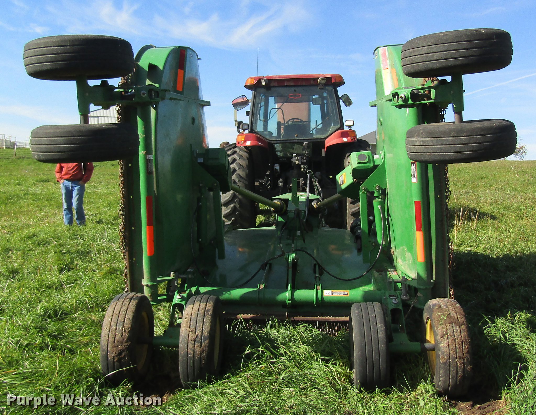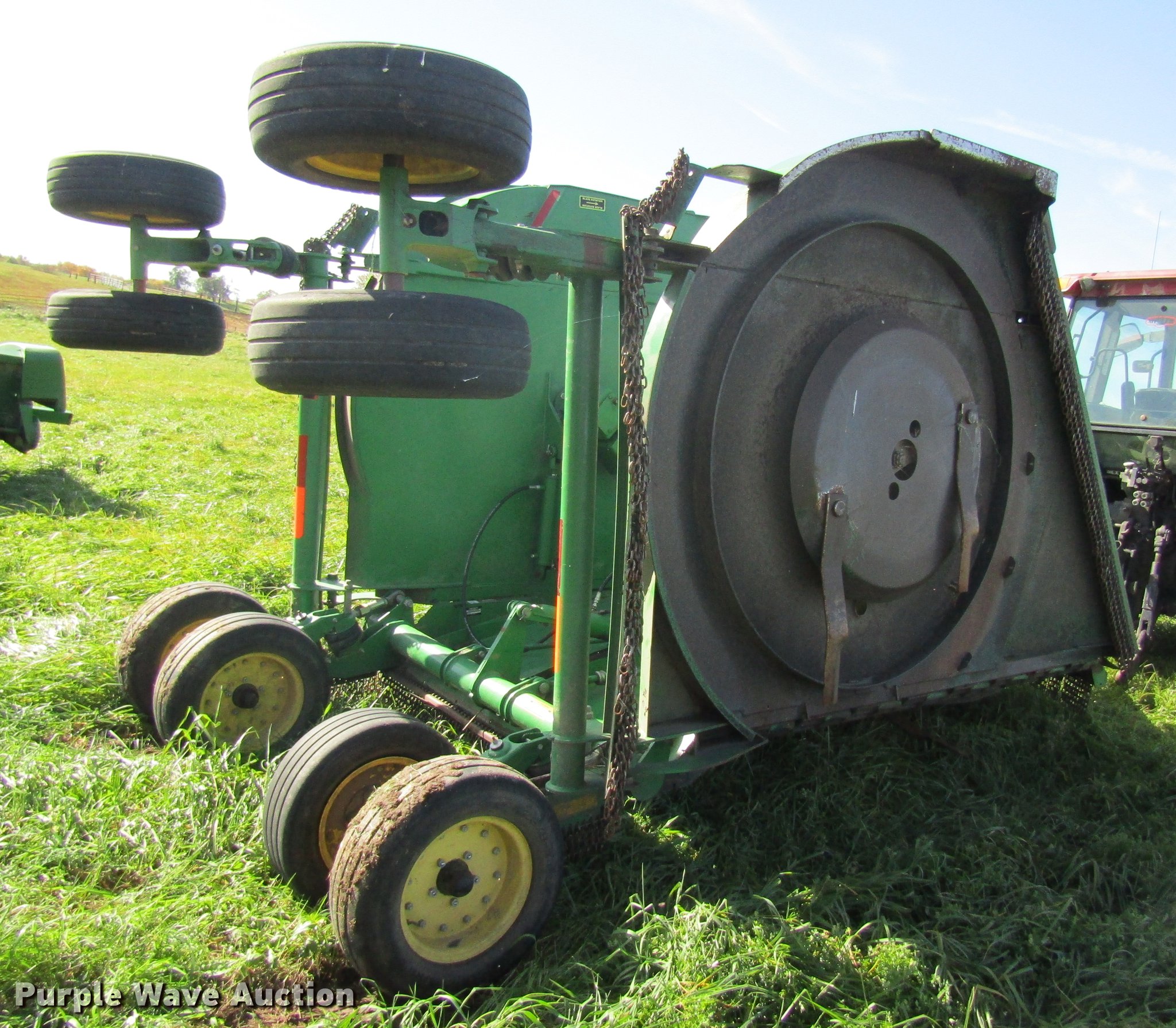 Purple Wave is selling a used Mower, Cutter, Shredder in Missouri. This item is a John Deere CX20 rotary mower with the following: 20'W, Hydraulic fold, 1000 PTO, Pin hitch, 26.9x14.5 tires, Serial 1P0CX20FJBP006685