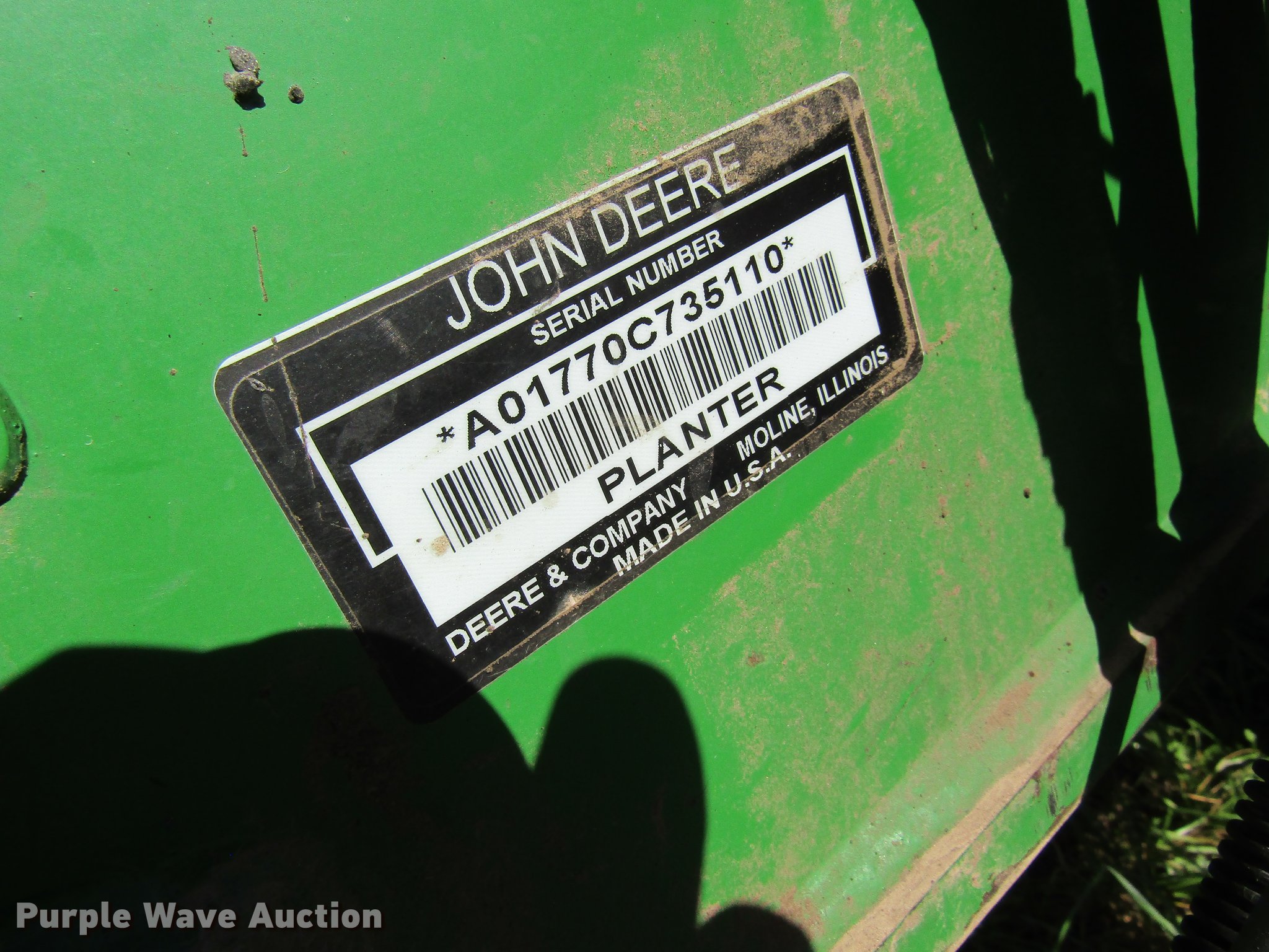 Purple Wave is selling a used Planter in Missouri. This item is a 2010 John Deere 1770NT MaxEmerge XP planter with the following: 24 row units, 30" row spacing, Hydraulic front fold, Double disk openers, Double gauge wheels, Double rubber closing system, Ground meter drive, Pneumatic down pressure, Two point hitch, 11R22.5 NHS tires, Serial A01770C735110