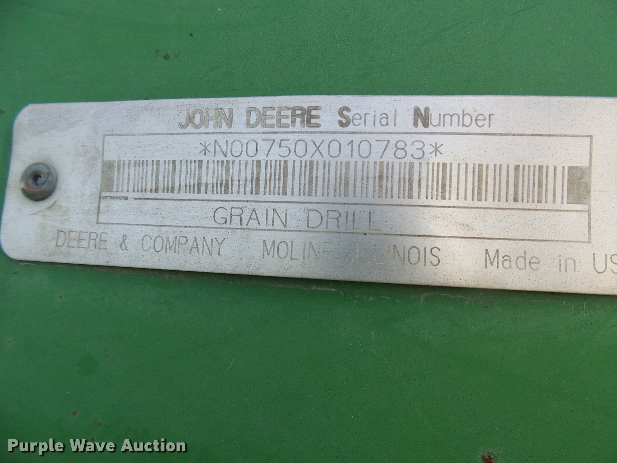 Purple Wave is selling a used Grain Drill or Seeder in Missouri. This item is a (2) John Deere 750 grain drills with the following: 30'W, 10" row spacing, Progressive marker arms, Hydraulic fold, Ground meter drive, Cast closing wheel, Tandem hitch, Serial N0750FH000323, 12.50SL-15 tires, Serial N00750X008894, N00750X010783,