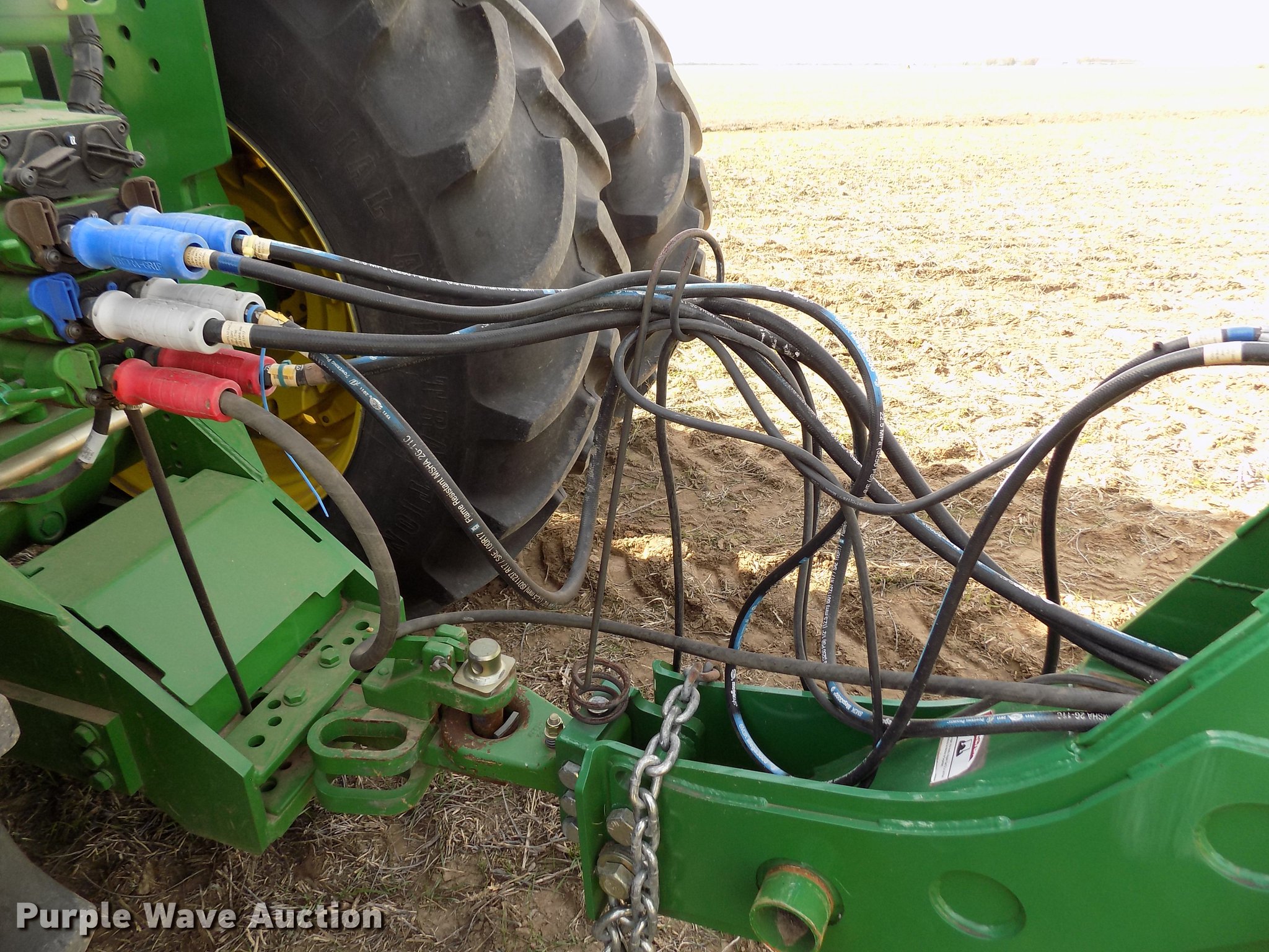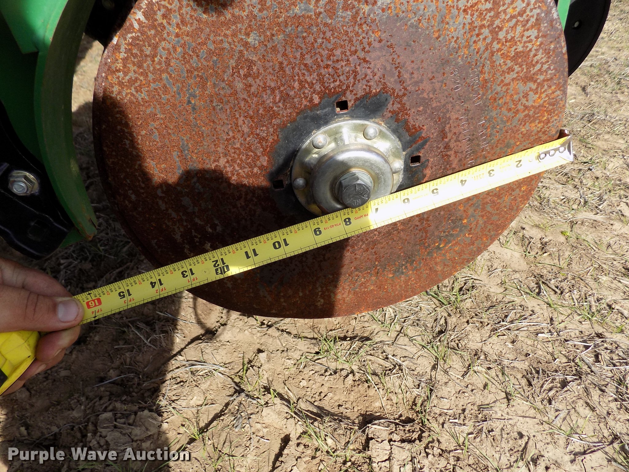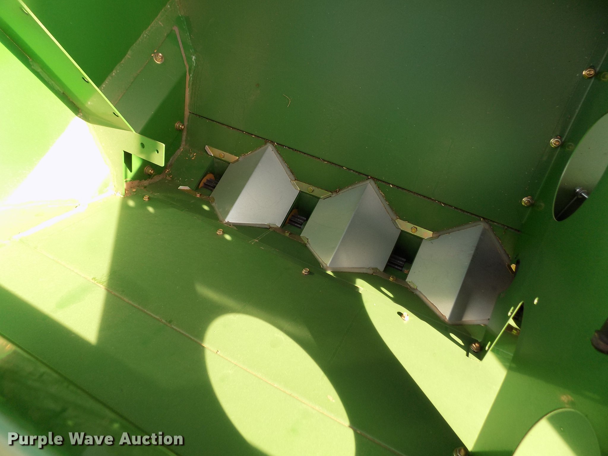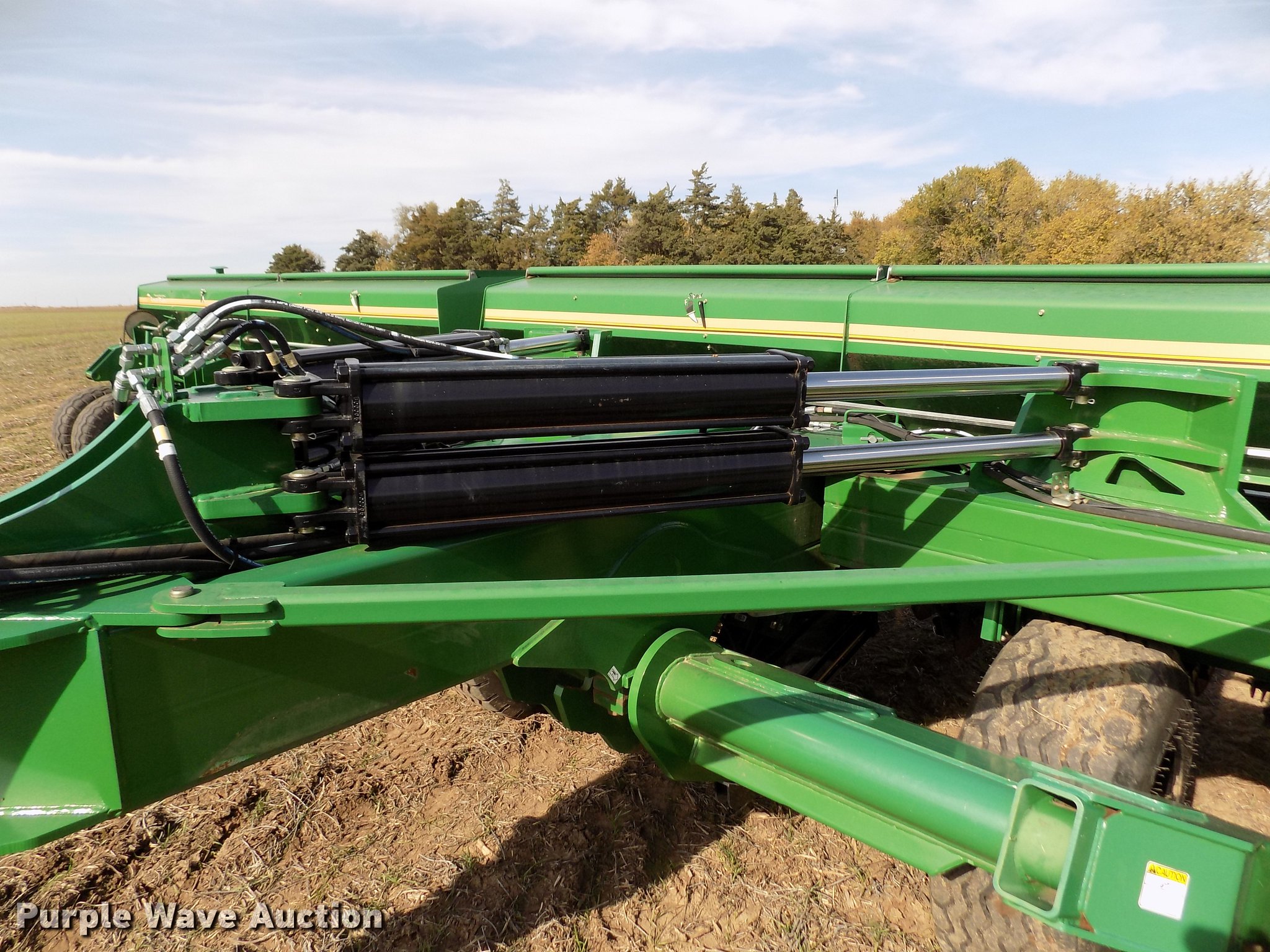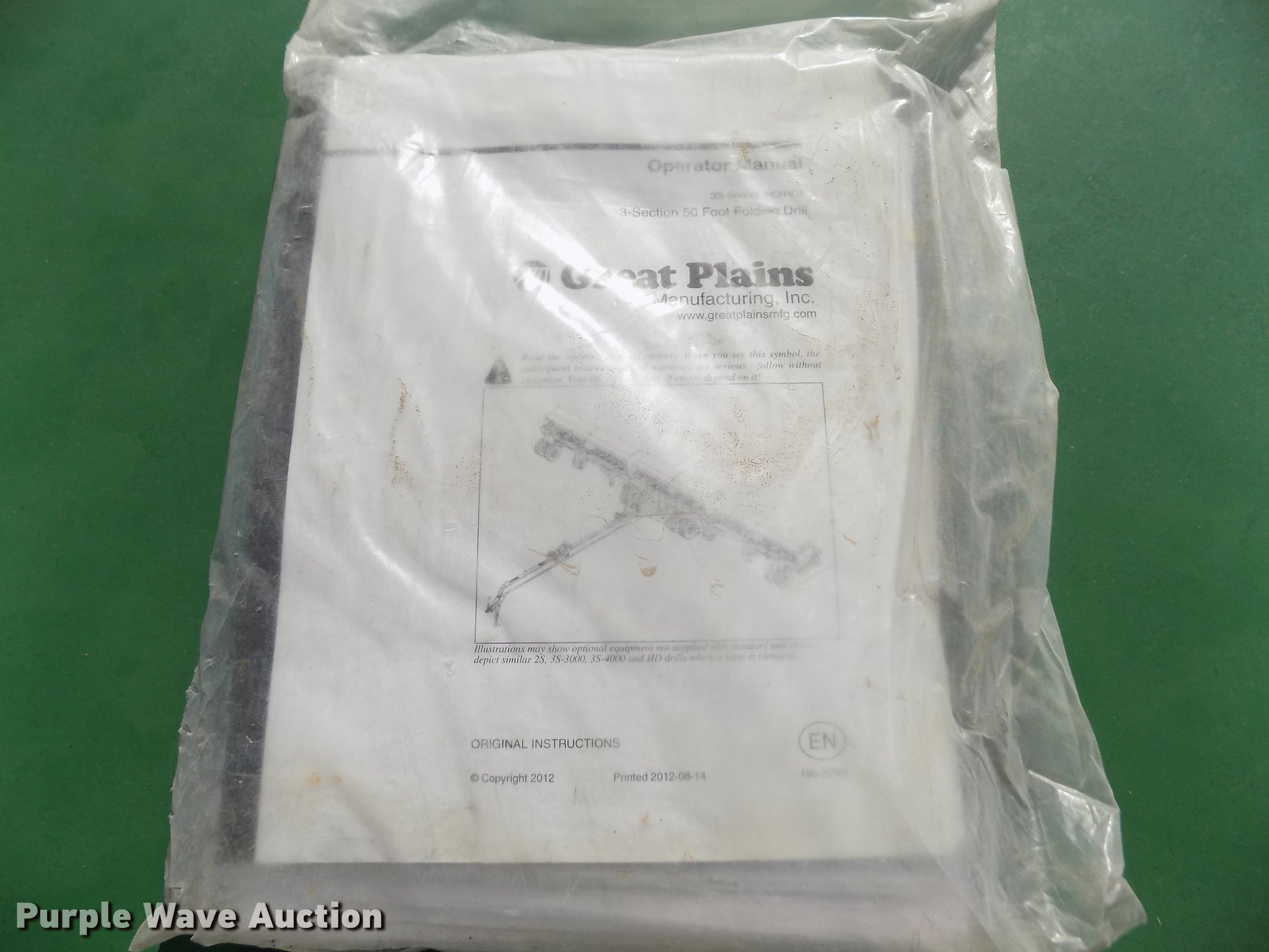 Purple Wave is selling a used Grain Drill or Seeder in Kansas. This item is a 2014 Great Plains 3S-5000HD-6010 grain drill with the following: 50'W, 60 row units, 10" row spacing, Hydraulic front fold, Bulk fill system, 148.7 bu. capacity, Ground meter drive, HD spring down pressure, Double disk openers, Single rubber closing system, Mini-Shaft four shaft monitor, Calibration device, Pin hitch, (4) 440/55R18 transport tires, (4) 340/60R16 drive/outside tires, Serial GPC1169L