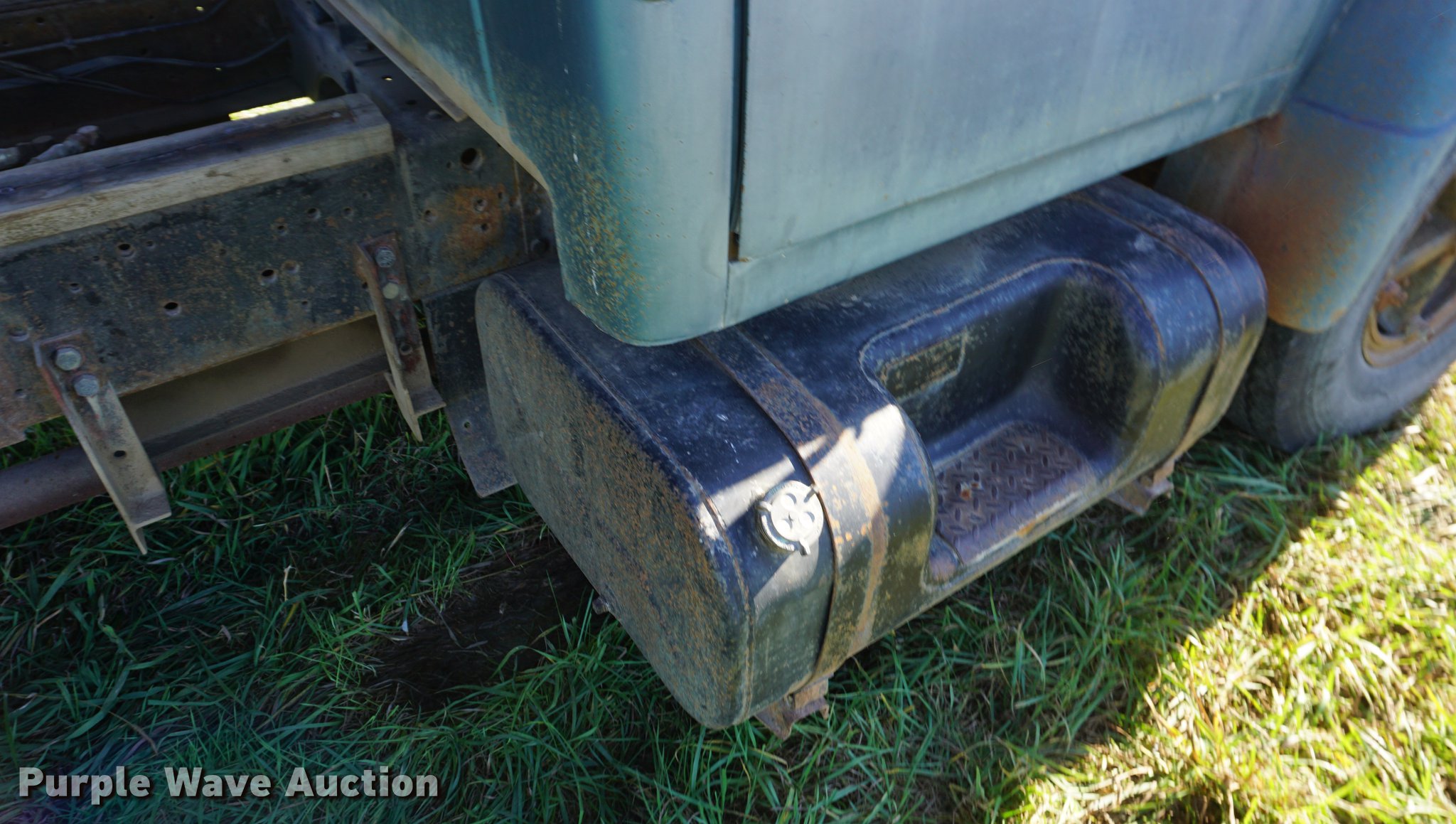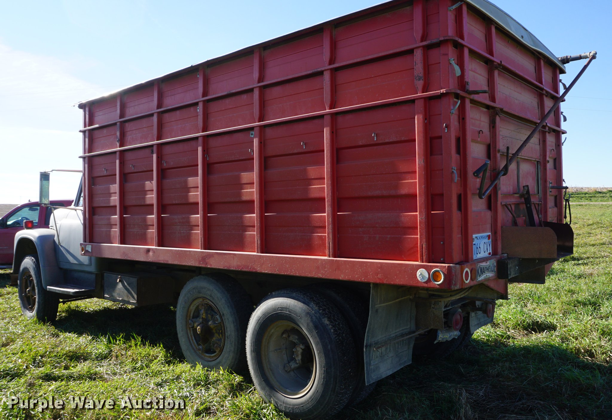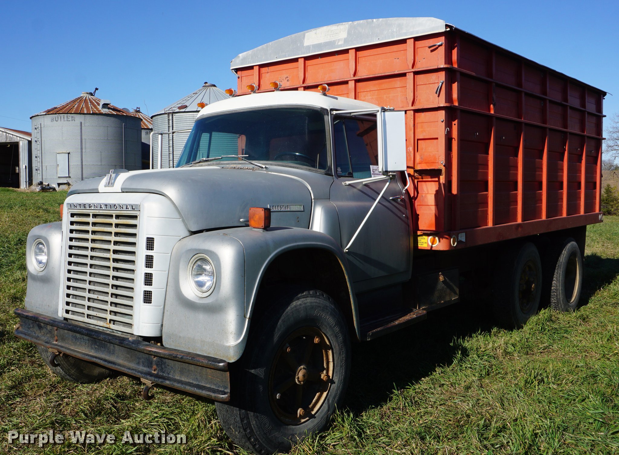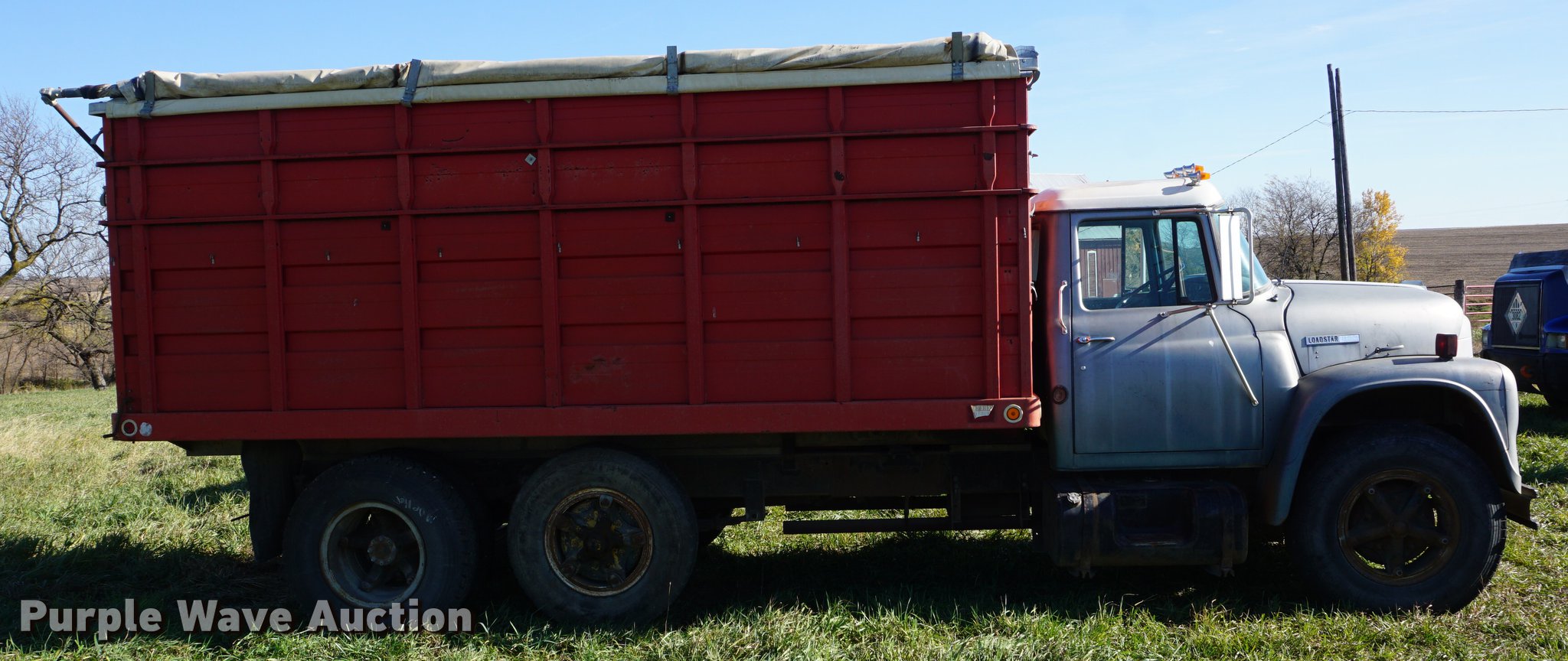 Purple Wave is selling a used Grain Truck in Kansas. This item is a 1976 International Loadstar 1800 grain truck with the following: 202,603 miles on odometer, International 404 V8 gas engine, Five speed manual transmission, Two speed rear end, Tandem axle, Pusher lift axle, Heat, AM, PTO, 16'L x 96"W grain bed, 64" side height, Roll tarp, Dual ram hoist, Single fuel tank, Spring suspension, Hydraulic brakes, 10.00R20 front tires, 9.00R20 rear tires, Master cylinder needs to be replaced