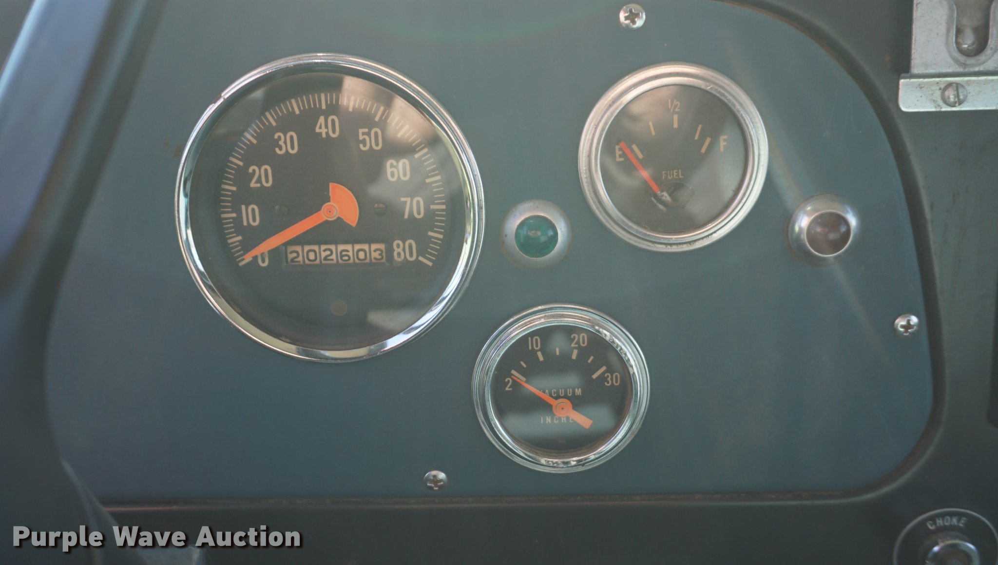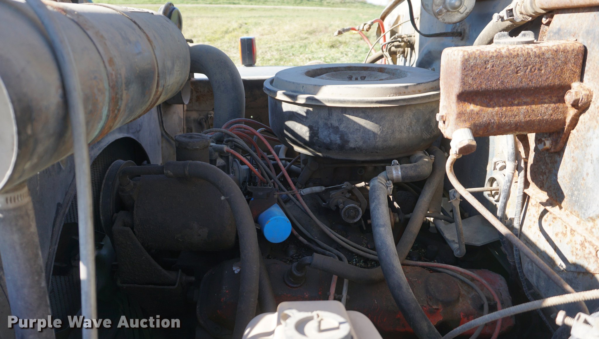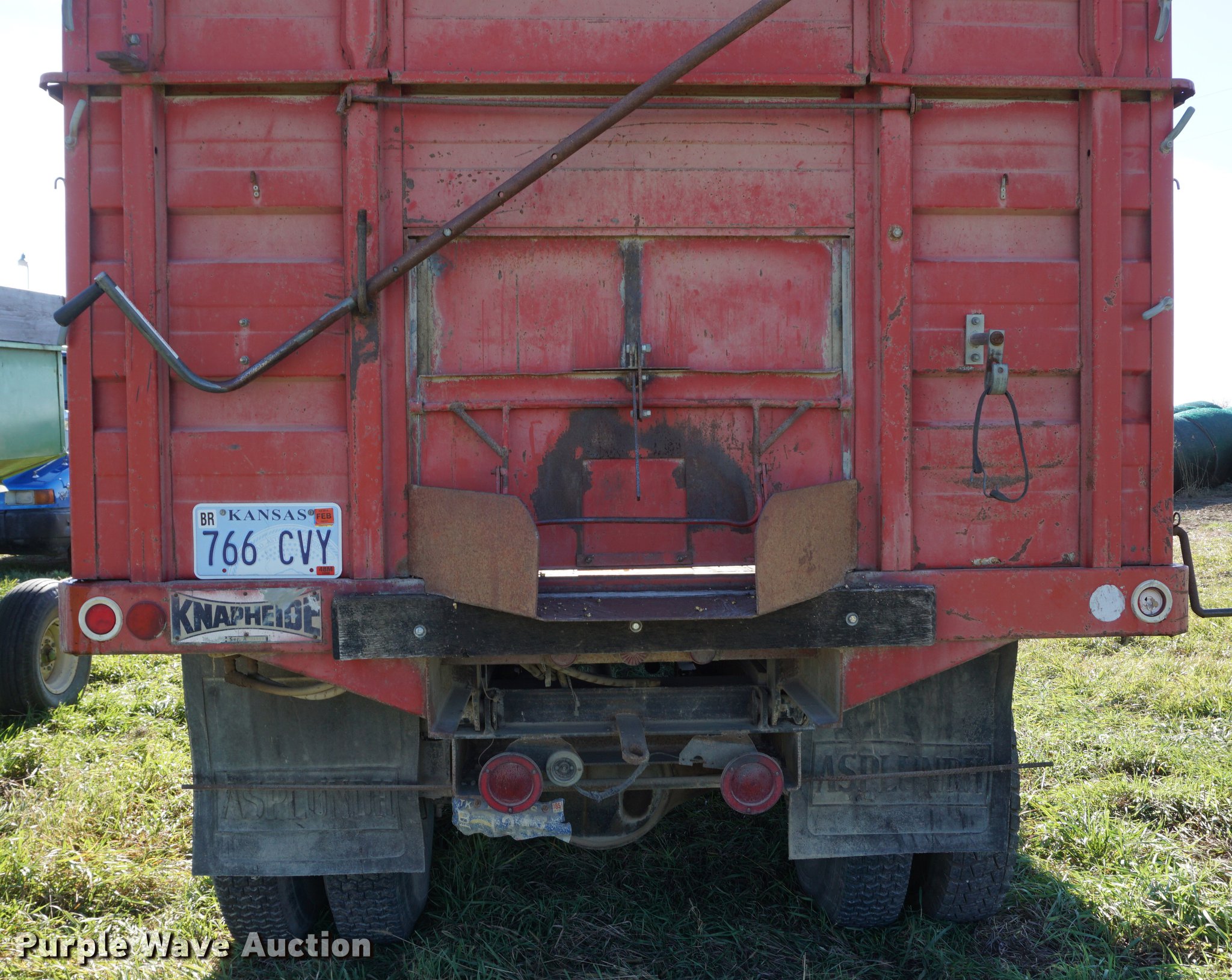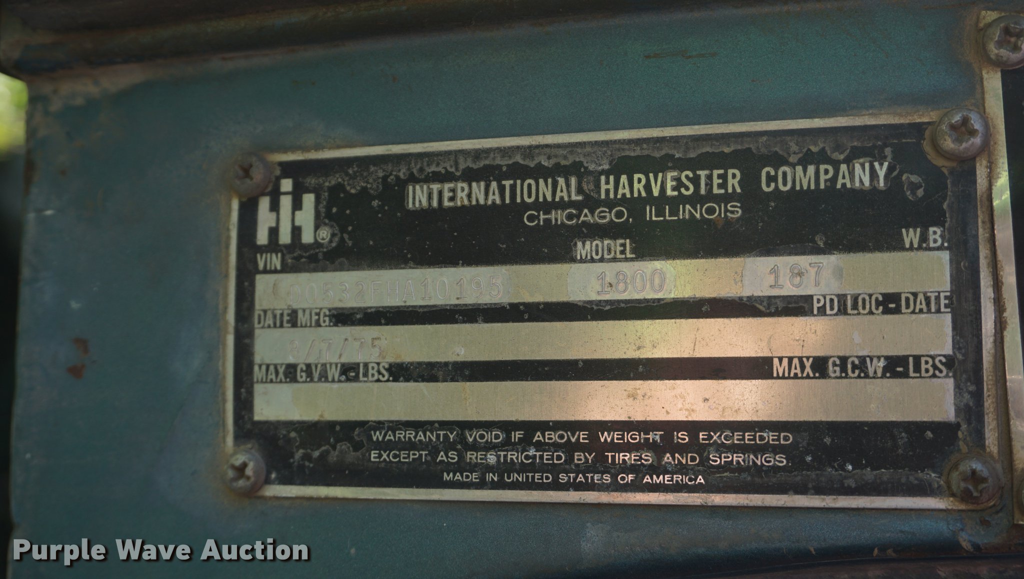 Purple Wave is selling a used Grain Truck in Kansas. This item is a 1976 International Loadstar 1800 grain truck with the following: 202,603 miles on odometer, International 404 V8 gas engine, Five speed manual transmission, Two speed rear end, Tandem axle, Pusher lift axle, Heat, AM, PTO, 16'L x 96"W grain bed, 64" side height, Roll tarp, Dual ram hoist, Single fuel tank, Spring suspension, Hydraulic brakes, 10.00R20 front tires, 9.00R20 rear tires, Master cylinder needs to be replaced