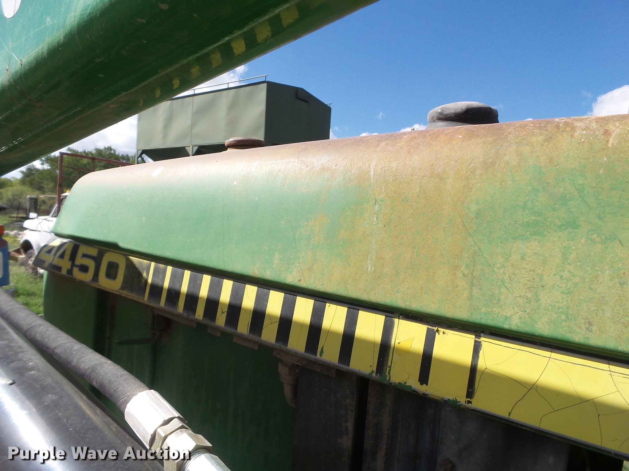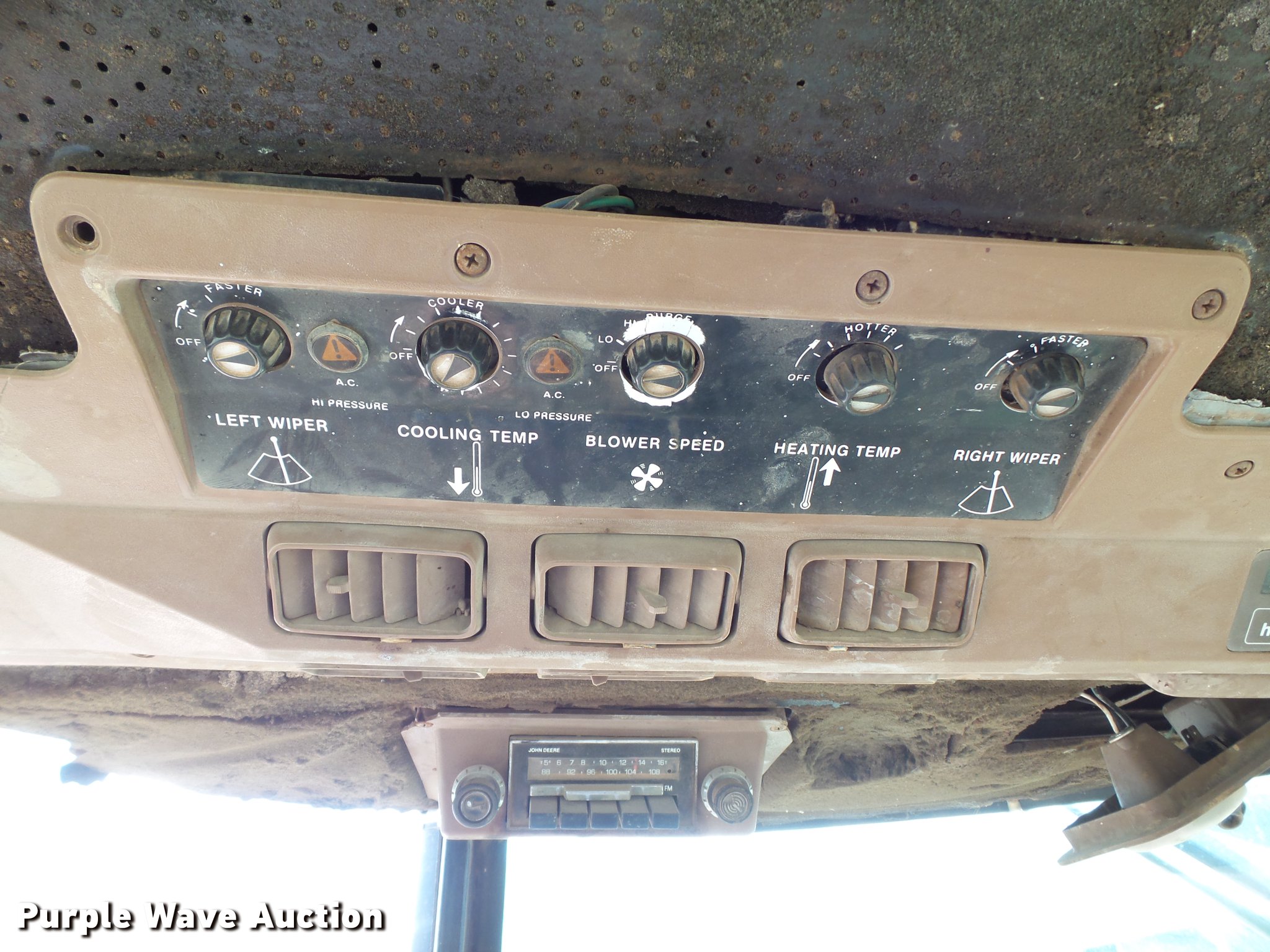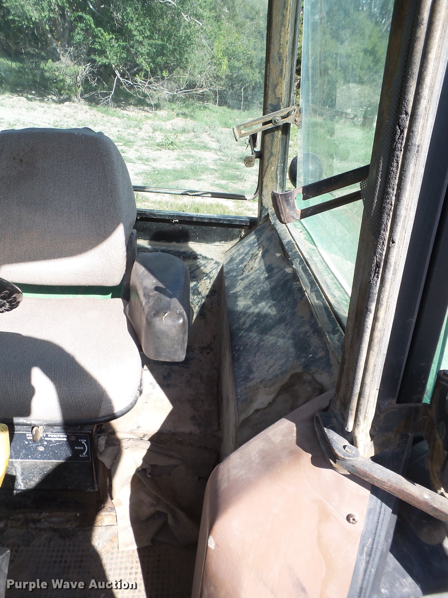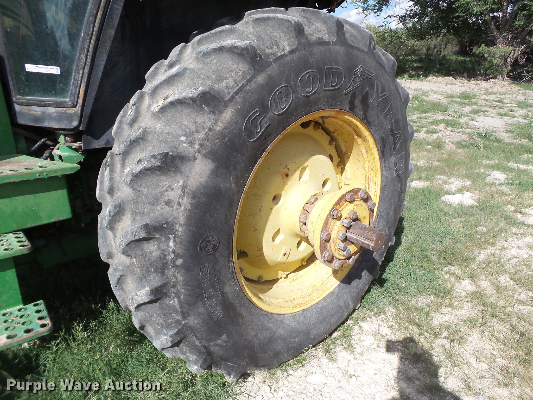 Purple Wave is selling a used Tractor in New Mexico. This item is a 1983 John Deere 4450 MFWD tractor with the following: 7,713 hours on meter, John Deere 7.6L six cylinder turbo diesel engine, 140 HP, Powershift transmission, 18F gears, AC and heat, Suspension seat, KD 7400QT loader, 72"W bucket, Two-lever controls, Three point, Top link, 540/1000 PTO, Rear hydraulic remote sets, 14.9R26 front tires, 20.8R38 dual rear tires, Serial RW4450P006337