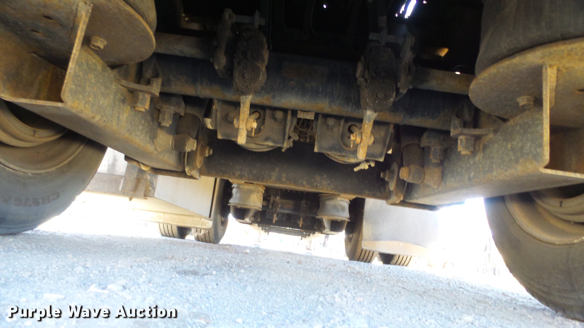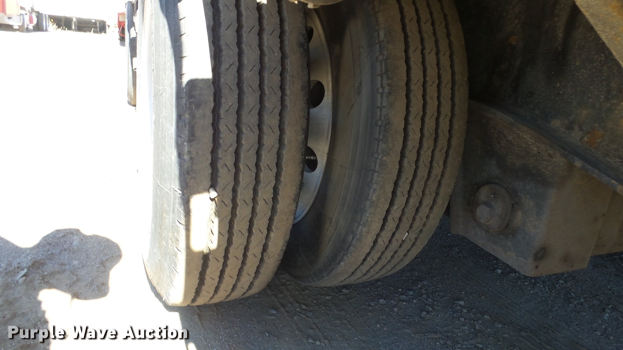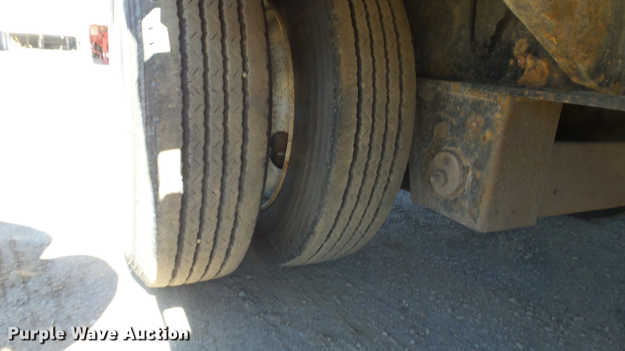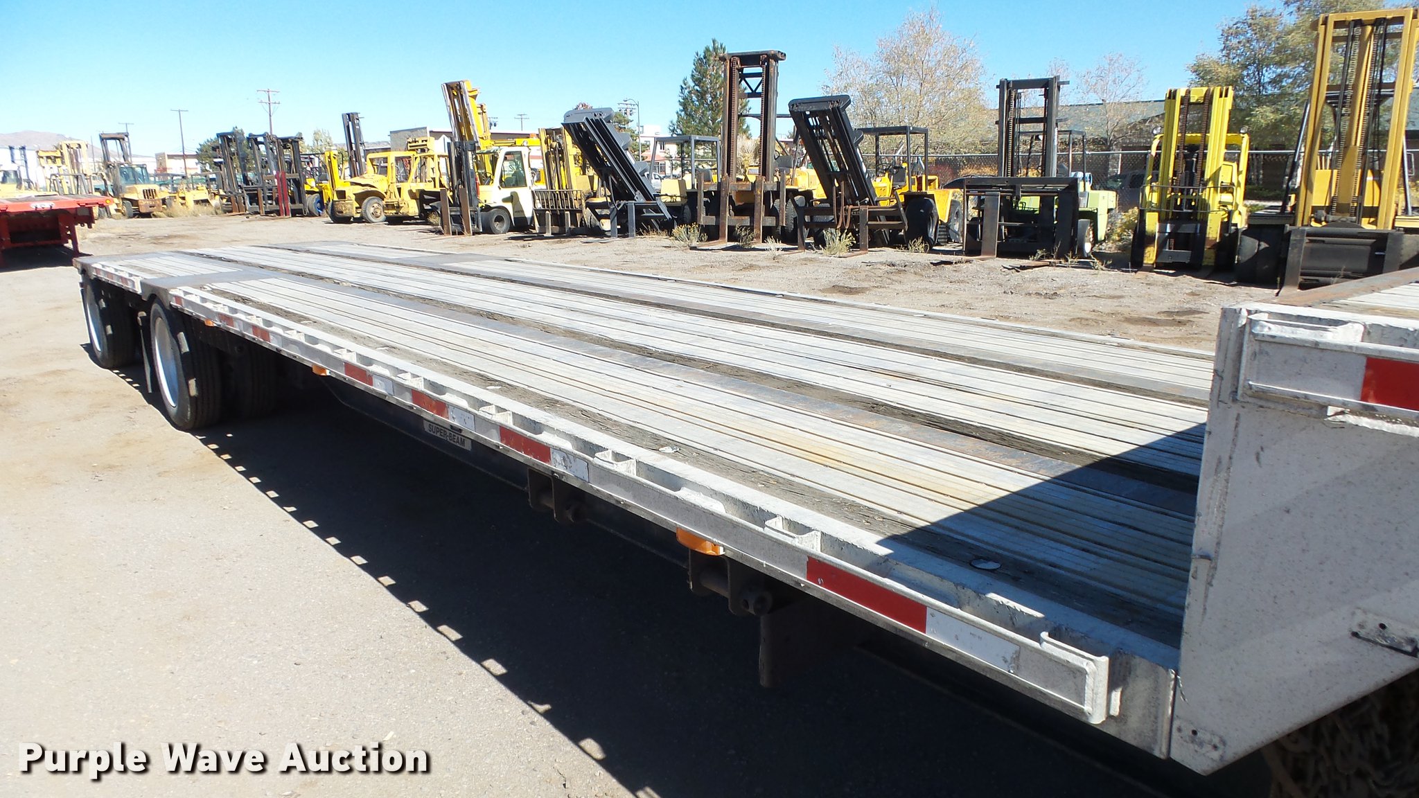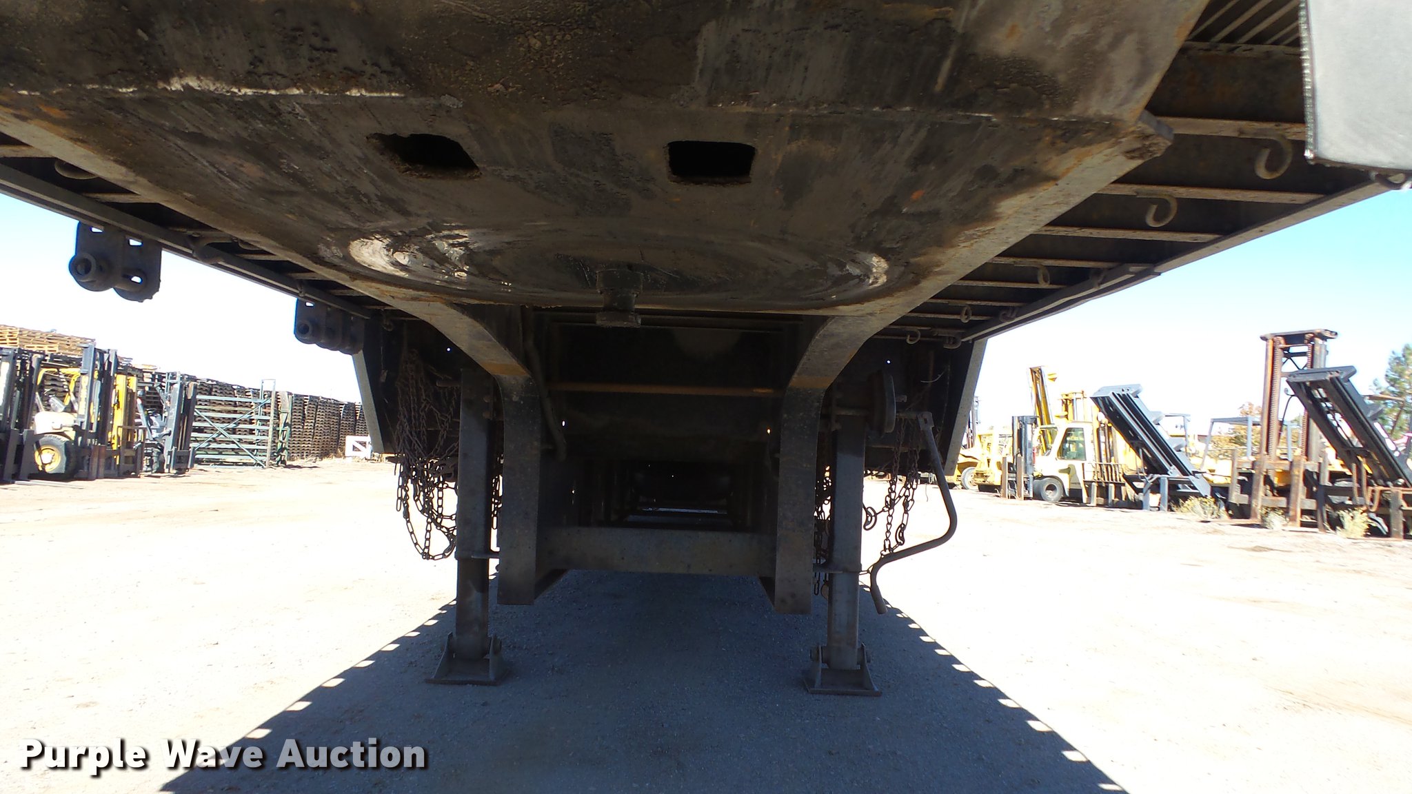 Purple Wave is selling a used Flat or Drop Deck Trailer in Nevada. This item is a 1999 Transcraft DTL2000 drop deck trailer with the following: 45'L x 8'W, 11'L top deck, 34'L main deck, Aluminum deck, Wood runners, Stake pockets, Tie down rails, Sliding ratchet straps, Recessed chain anchors, Under-mounted toolbox, Mud flaps, Fifth wheel plate, Dual leg landing gear, Air suspension, Air brakes, Spread axle, Oil bath hubs, Aluminum wheels, 255/70R22.5 tires