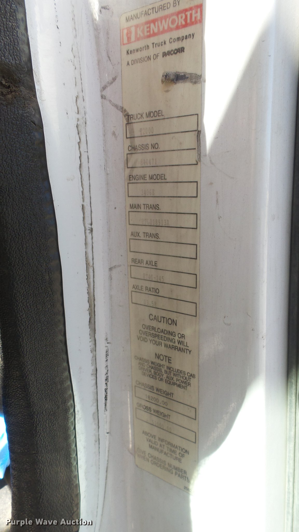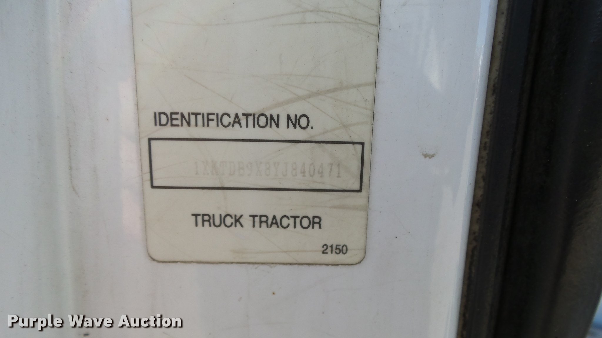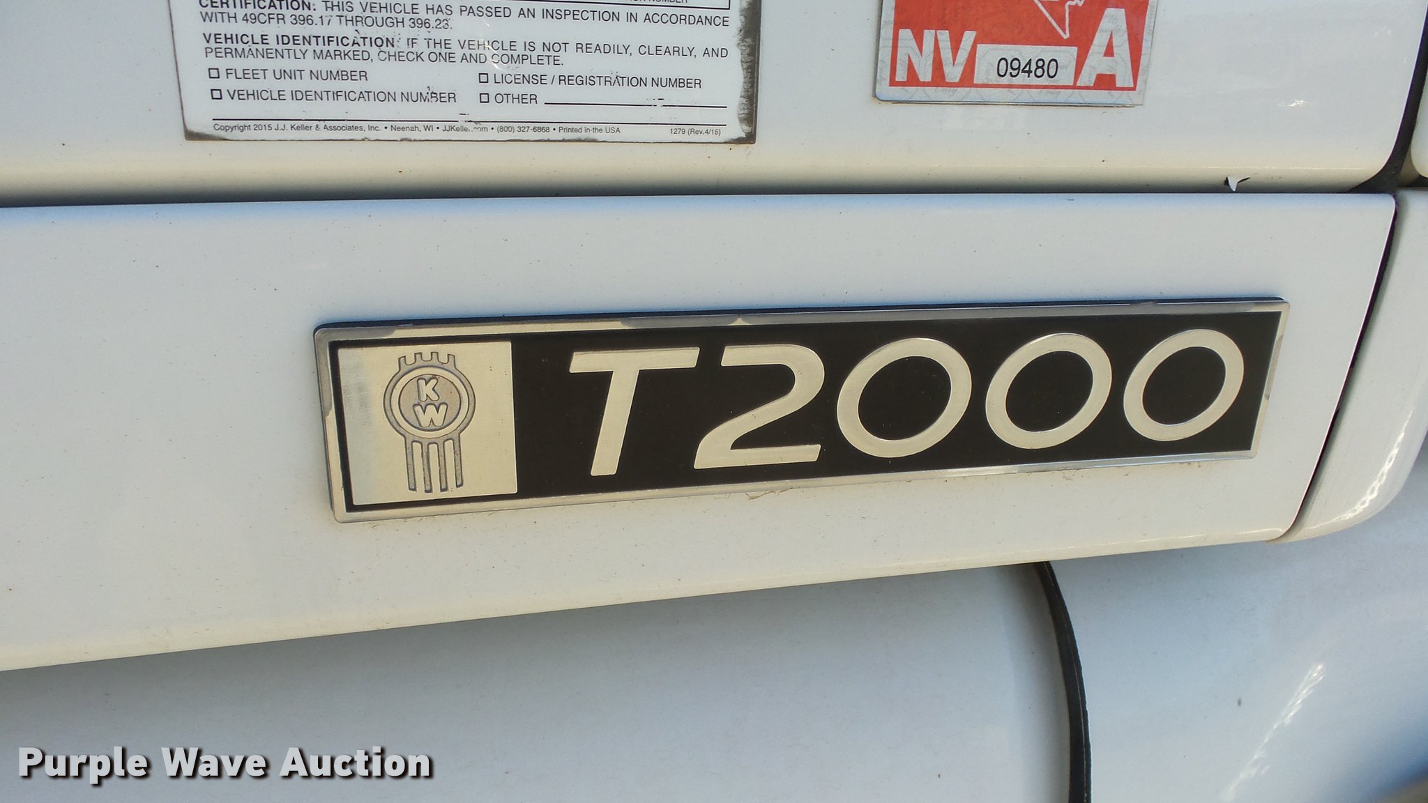 Purple Wave is selling a used Truck Tractor in Nevada. This item is a 2000 Kenworth T2000 semi truck with the following: 1,031,479 miles on odometer, Caterpillar C15 14.6L L6 turbo diesel engine, Eaton Fuller RTL018913A 13 speed manual transmission, Tandem axle, Inter-axle differential lock, AC and heat, Tilt, Cruise, AM/FM/CD, Power windows and locks, Power and heated mirrors, Air suspension seat, Air ride cab, CB radio, 60" sleeper, Single bed, Storage cabinets, Rear climate control, Block heater, Exterior visor, Dual exhaust stacks, Aluminum deck plate, Air operated sliding fifth wheel plate, Aluminum headache rack, Dual fuel tanks, Quarter fenders, 3:58 gear ratio, Air suspension, Air brakes, Engine brake, 240" wheelbase, 11R22.5 tires, GVWR 52,000 lbs, FAWR 12,000 lbs, IAWR 20,000 lbs, RAWR 20,000 lbs, Engine replaced with re-manufactured engine in September 2015, Cracked windshield