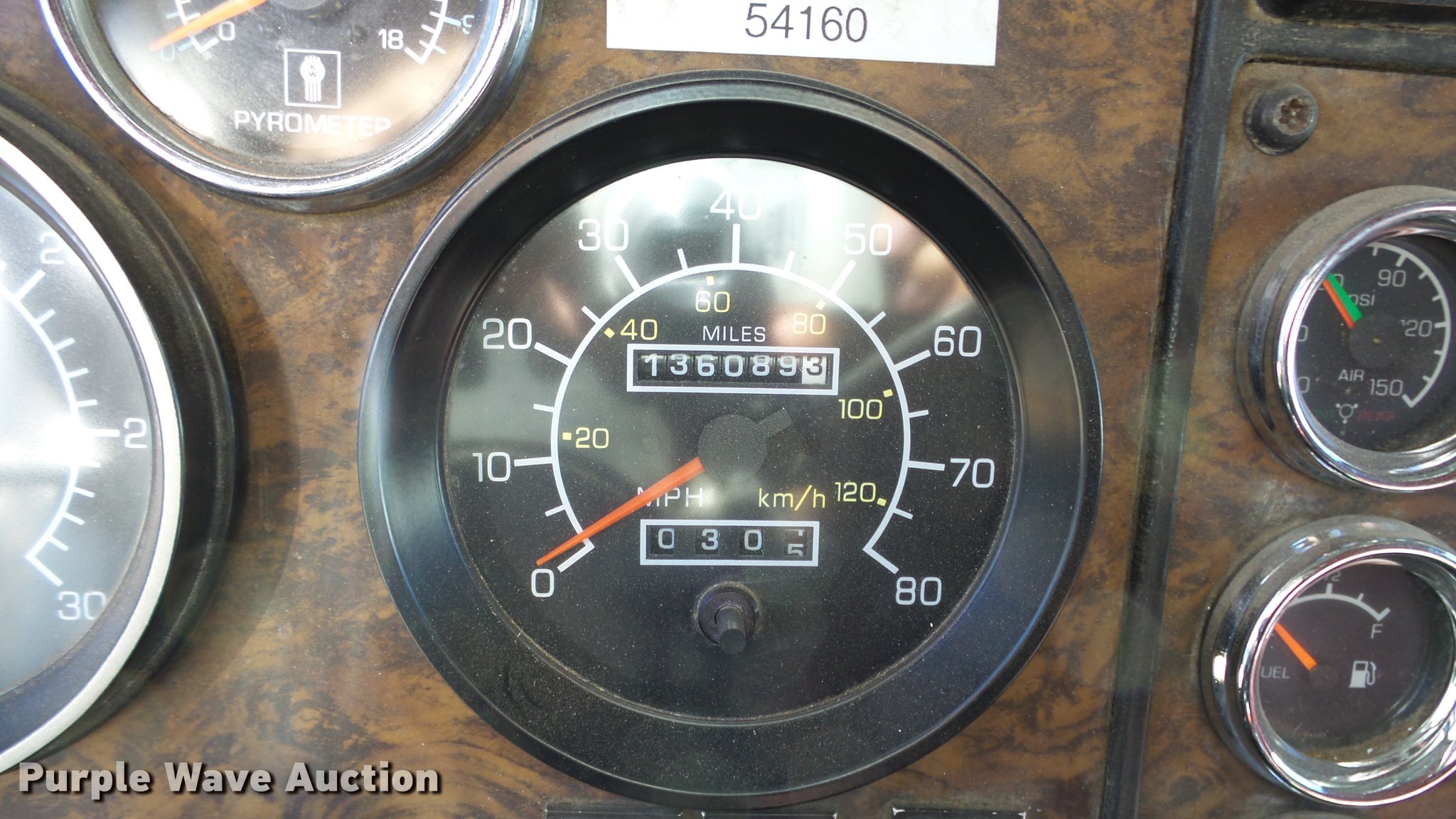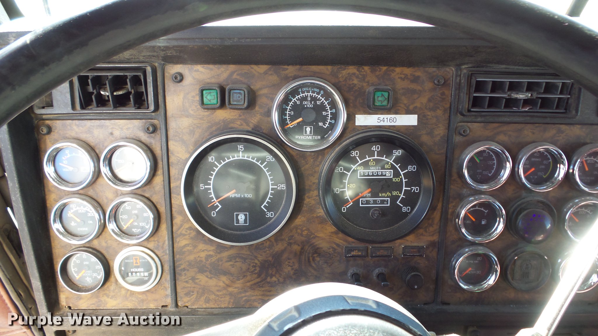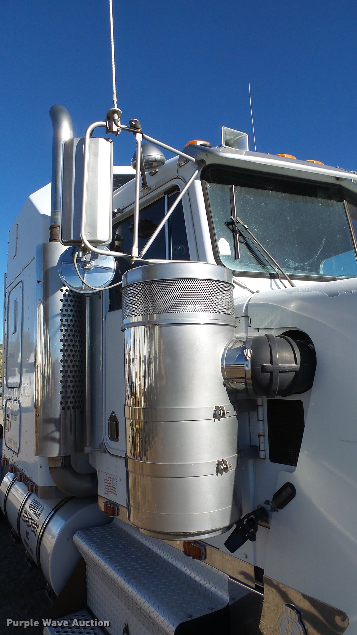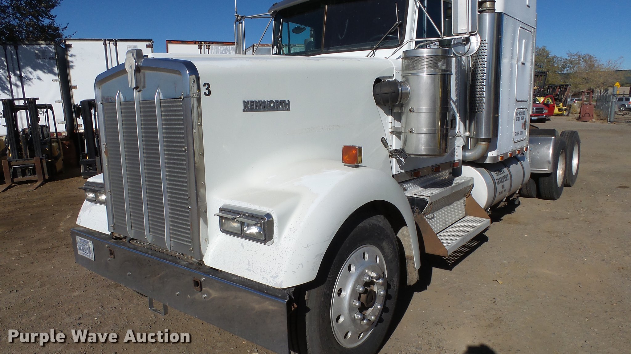Purple Wave is selling a used Truck Tractor in Nevada. This item is a 1993 Kenworth W900 semi truck with the following: 1,136,089 miles on odometer, 3,294 hours on meter, Hour meter has been replaced, Caterpillar 3406 14.6L L6 turbo diesel engine, Serial 3ZJ27615, Eaton Fuller 15 speed manual transmission, Tandem axle, AC and heat, Tilt, Telescoping steering wheel, AM/FM/CD, Power windows, Heated mirrors, Air suspension seat, 60" sleeper, Single bed, Storage cabinets, Rear climate control, Hanging closet, Exterior visor, Dual exhaust stacks, Aluminum deck plate, Air operated sliding fifth wheel plate, Aluminum headache rack, Dual fuel tanks, Stainless steel quarter fenders, Air suspension, Air brakes, Engine brake, 266" wheelbase, 11R24.5 tires, GVWR 52,000 lbs, FAWR 12,000 lbs, IAWR 20,000 lbs, RAWR 20,000 lbs, Chipped windshield, Skylight windows cracked