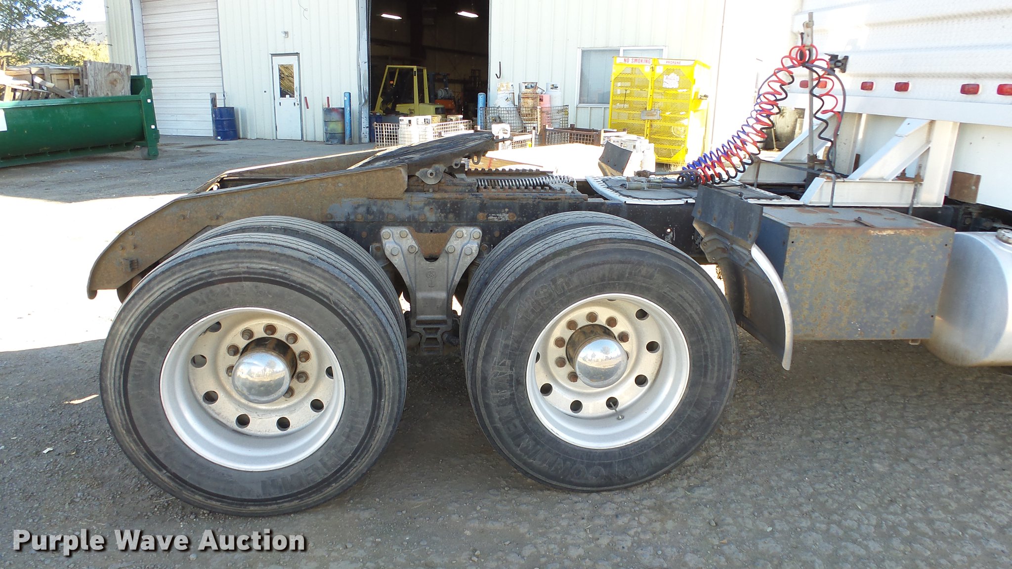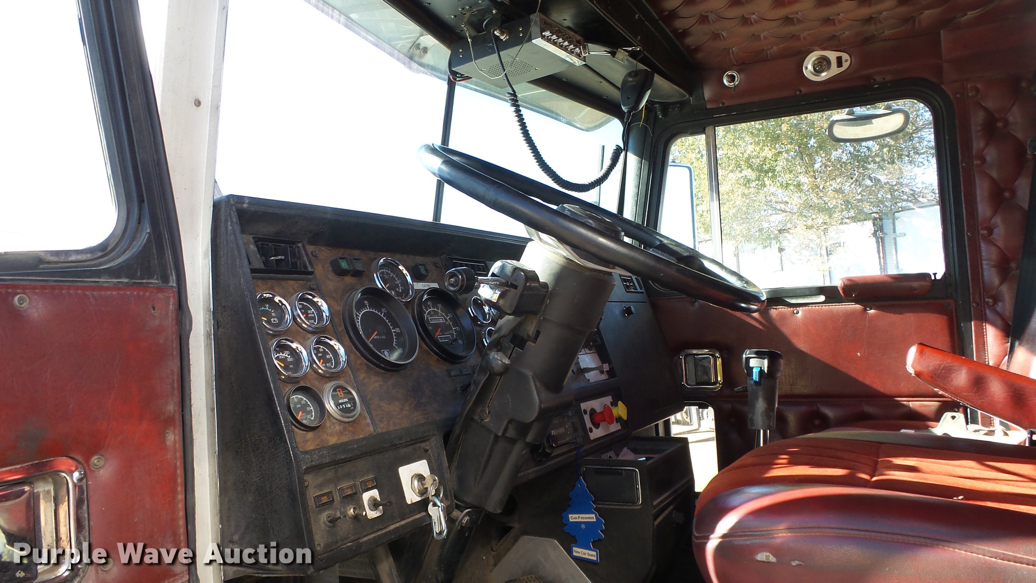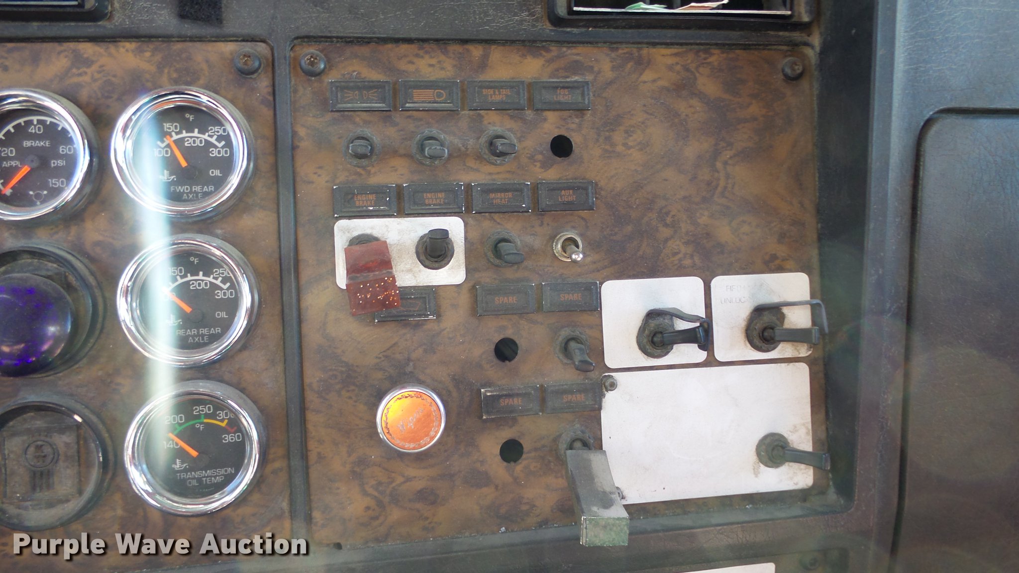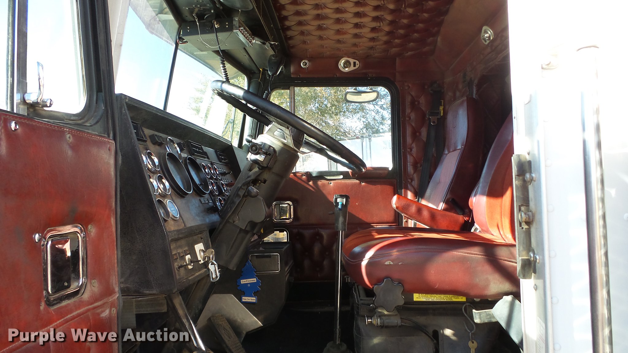 Purple Wave is selling a used Truck Tractor in Nevada. This item is a 1993 Kenworth W900 semi truck with the following: 1,136,089 miles on odometer, 3,294 hours on meter, Hour meter has been replaced, Caterpillar 3406 14.6L L6 turbo diesel engine, Serial 3ZJ27615, Eaton Fuller 15 speed manual transmission, Tandem axle, AC and heat, Tilt, Telescoping steering wheel, AM/FM/CD, Power windows, Heated mirrors, Air suspension seat, 60" sleeper, Single bed, Storage cabinets, Rear climate control, Hanging closet, Exterior visor, Dual exhaust stacks, Aluminum deck plate, Air operated sliding fifth wheel plate, Aluminum headache rack, Dual fuel tanks, Stainless steel quarter fenders, Air suspension, Air brakes, Engine brake, 266" wheelbase, 11R24.5 tires, GVWR 52,000 lbs, FAWR 12,000 lbs, IAWR 20,000 lbs, RAWR 20,000 lbs, Chipped windshield, Skylight windows cracked