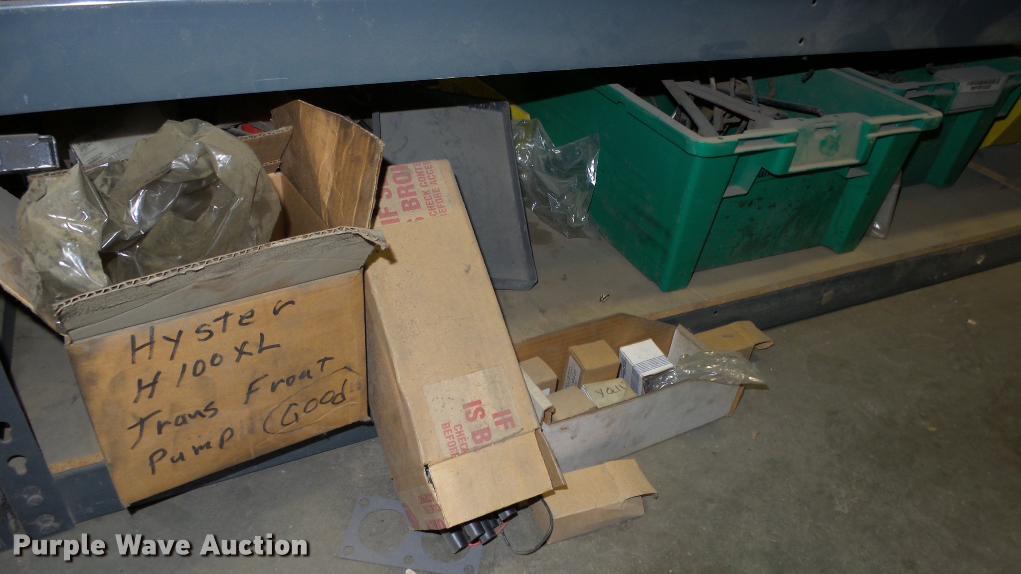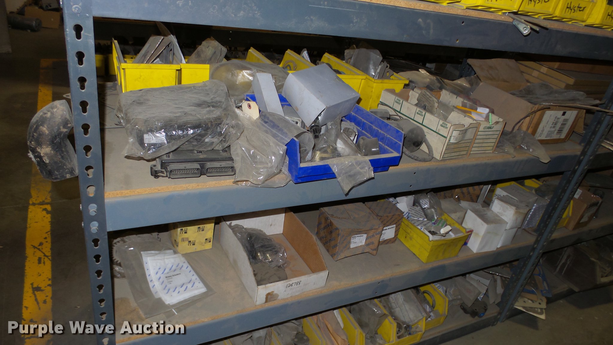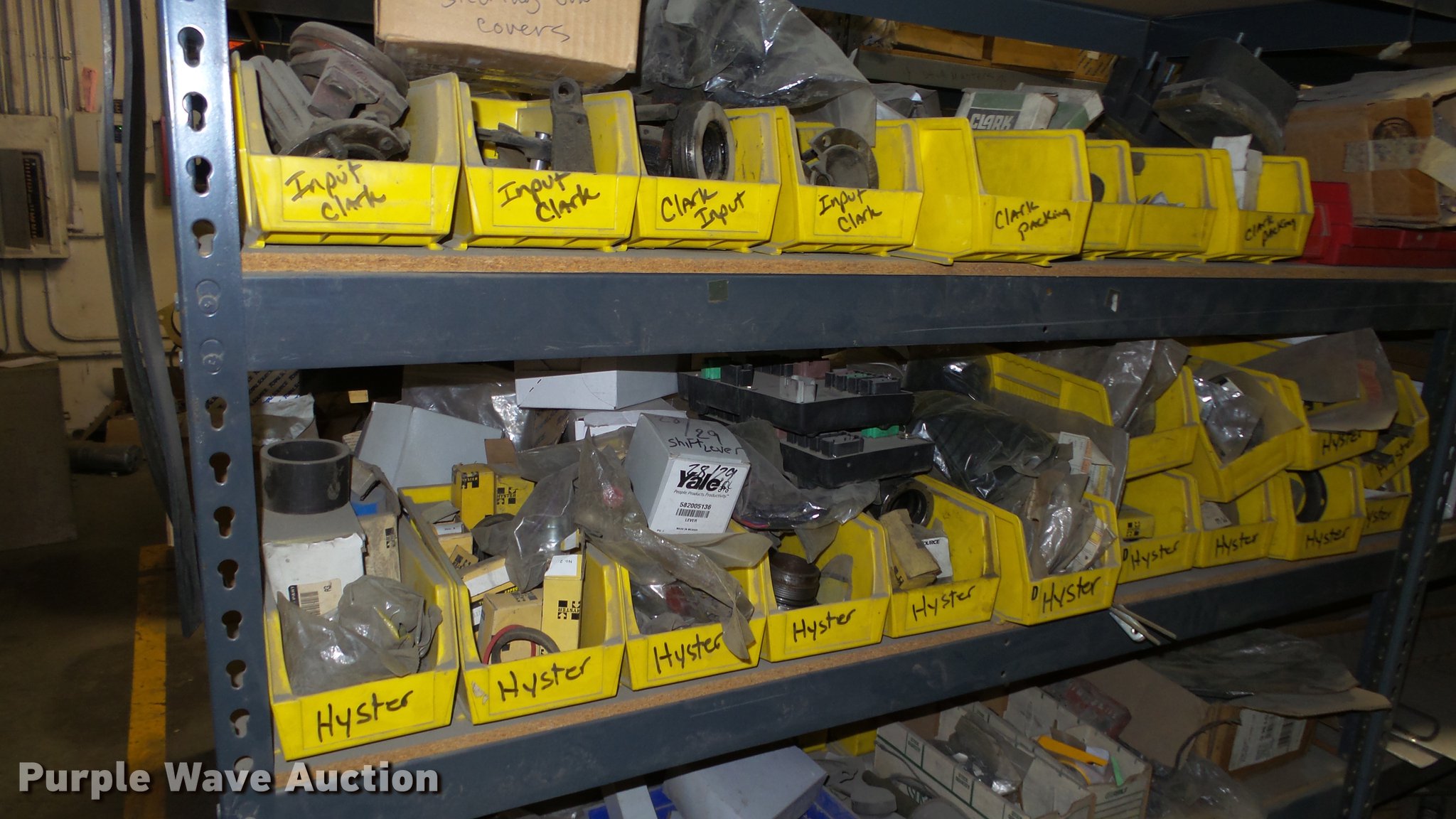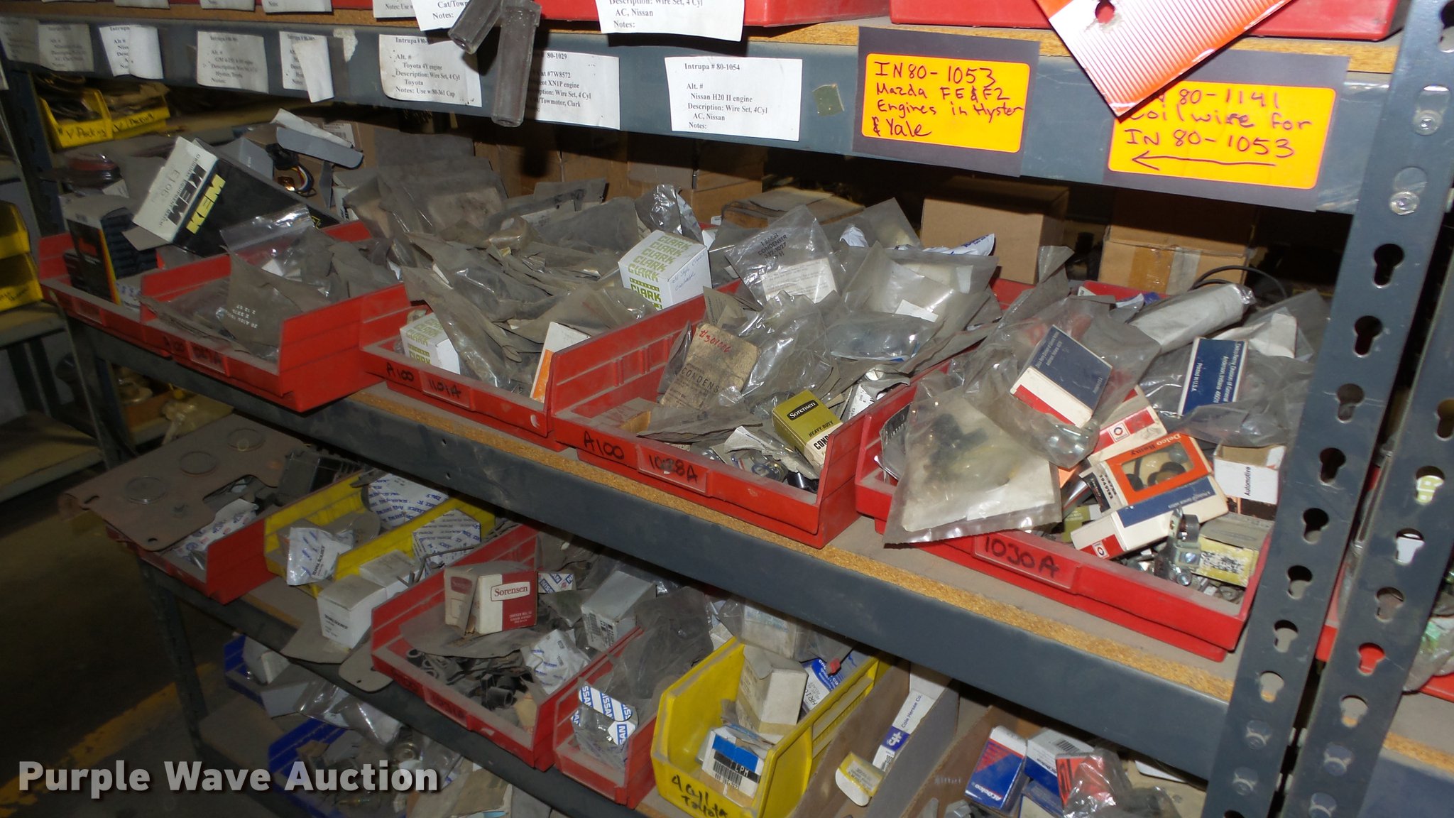 Purple Wave is selling a used Forklift Attach. in Nevada. This item is a Forklift parts with the following: Seals, Bearings, Races, Cylinder seals, cups, wipers, and kits, Belts, Flywheels, Assorted engine parts, Lever cables, Brake cables, Throttle cables, Assorted carburetors and regulators, Brake parts, Steering rods, Starters, Alternators/generators, Parking brake bodies, Exhaust pipe, Bushings, Pullies, Radiator caps, Fuel caps, Oil caps, Thermostats, Reservoirs, Shims/king pins, Axle nuts, Gaskets/gasket kits, Wheel studs/lug nuts, Rubber mounts, Hose, Steering wheels/column parts, Drive joints/shalves, Chain links, Air filters, Fuel filters, Oil filters, Distributor caps, Battery cables/connectors, Fuel line parts, Ignition switches, Wiring sets, Door latches, Shelving included, Approx. 900 sq. ft. parts area, Some parts unused