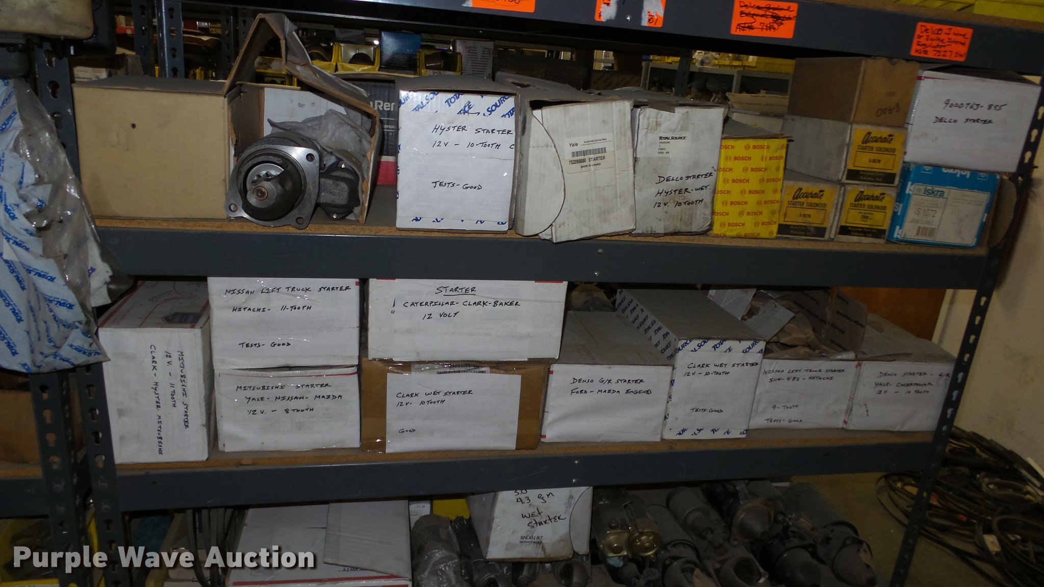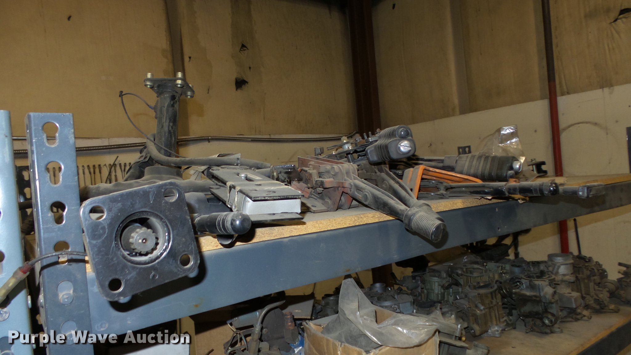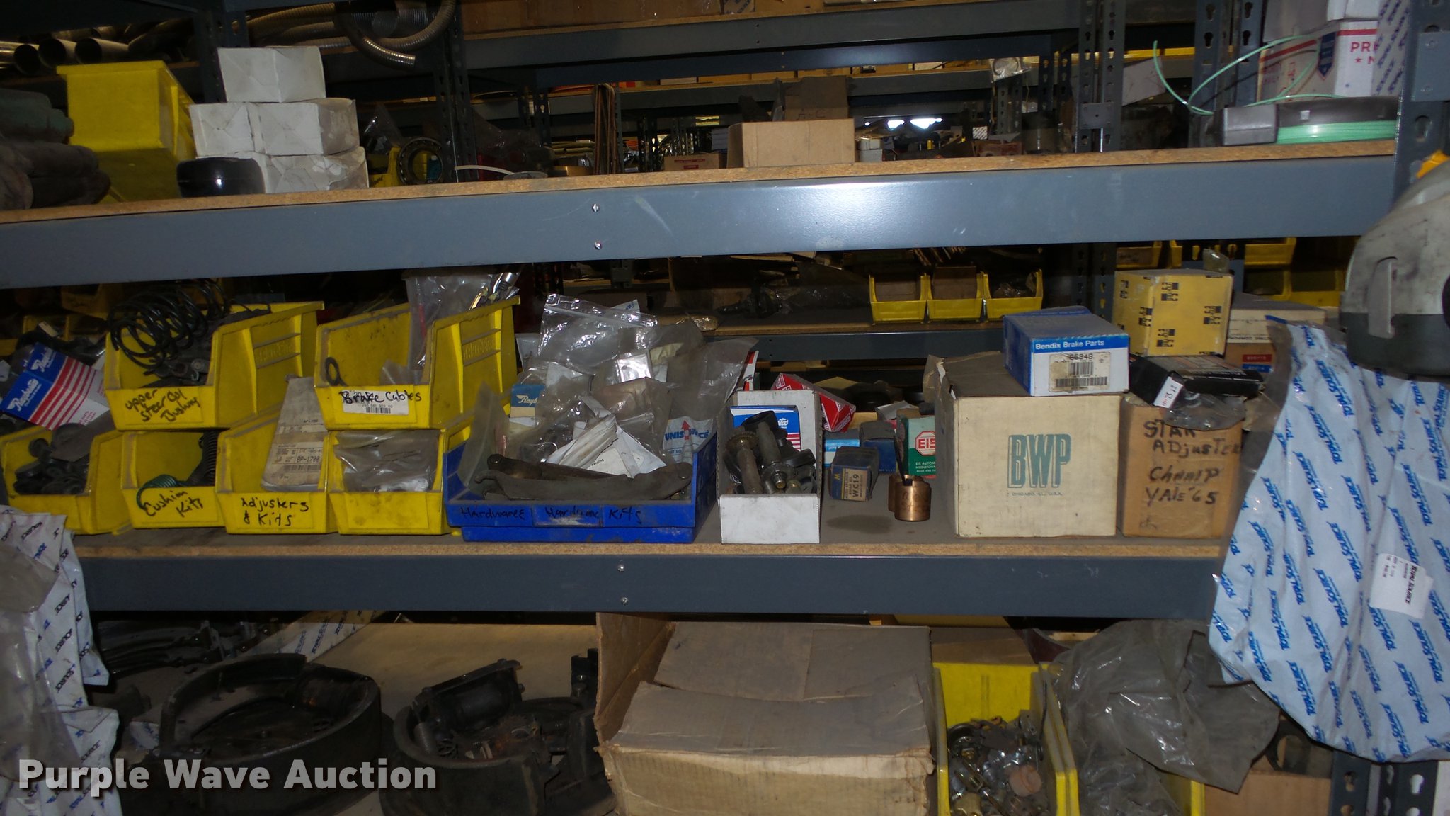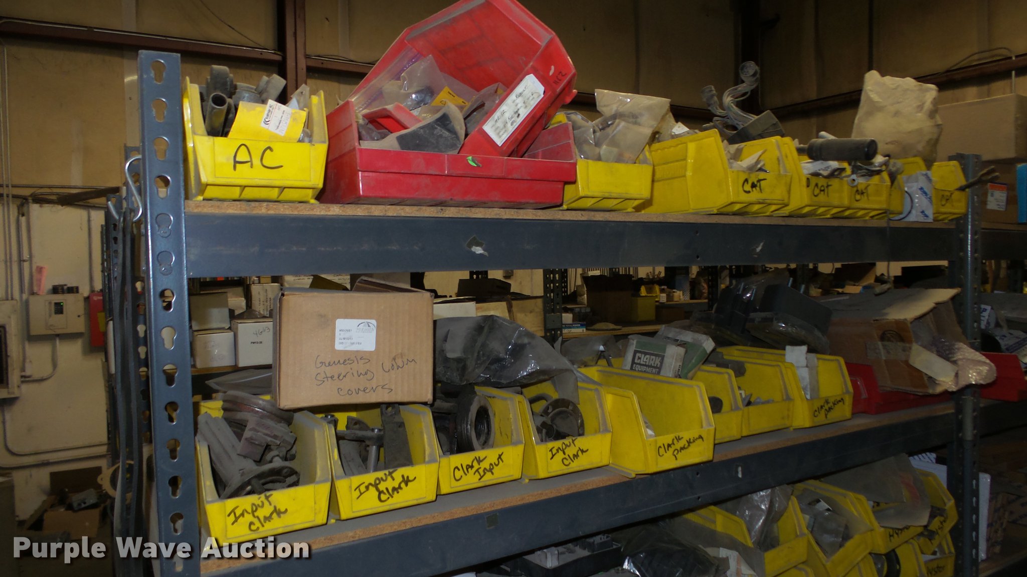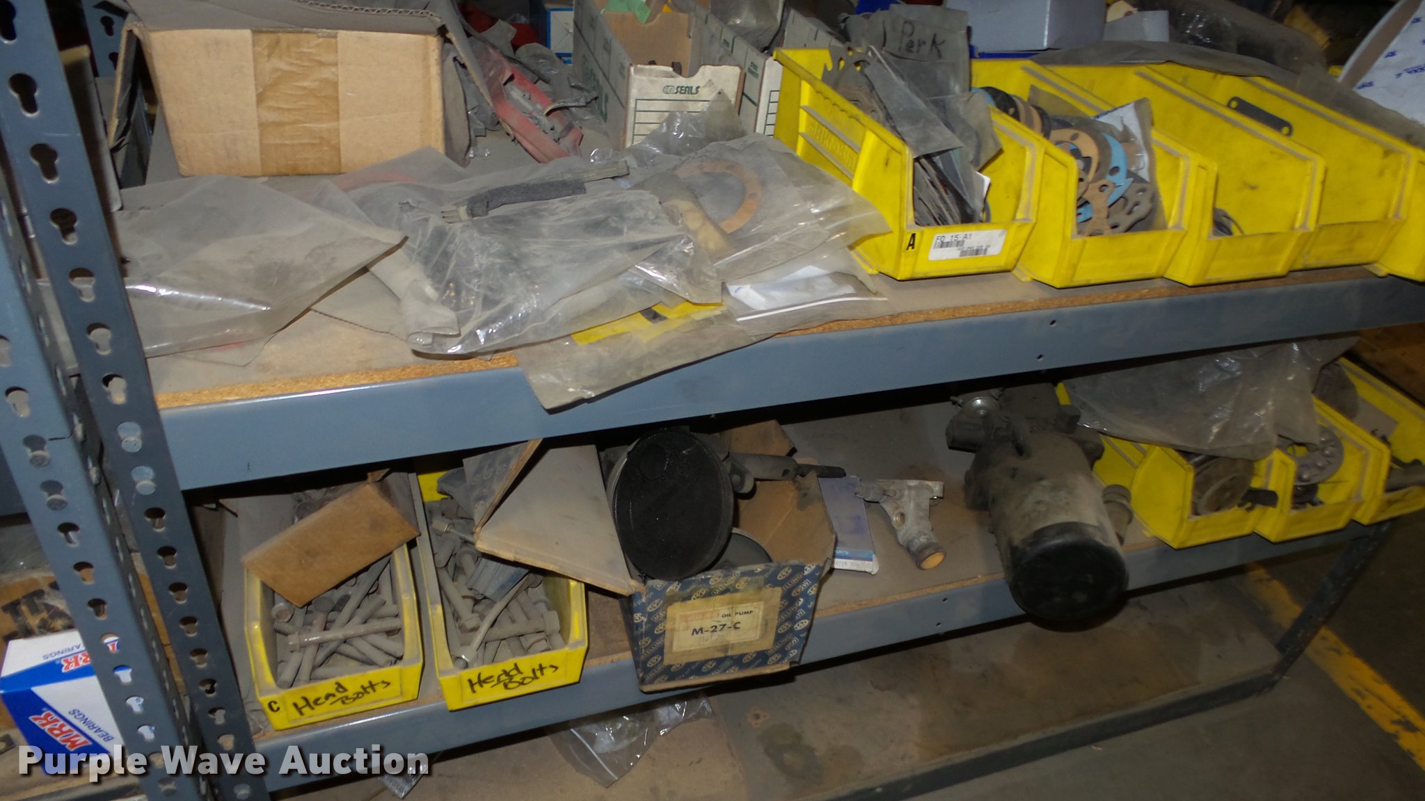Purple Wave is selling a used Forklift Attach. in Nevada. This item is a Forklift parts with the following: Seals, Bearings, Races, Cylinder seals, cups, wipers, and kits, Belts, Flywheels, Assorted engine parts, Lever cables, Brake cables, Throttle cables, Assorted carburetors and regulators, Brake parts, Steering rods, Starters, Alternators/generators, Parking brake bodies, Exhaust pipe, Bushings, Pullies, Radiator caps, Fuel caps, Oil caps, Thermostats, Reservoirs, Shims/king pins, Axle nuts, Gaskets/gasket kits, Wheel studs/lug nuts, Rubber mounts, Hose, Steering wheels/column parts, Drive joints/shalves, Chain links, Air filters, Fuel filters, Oil filters, Distributor caps, Battery cables/connectors, Fuel line parts, Ignition switches, Wiring sets, Door latches, Shelving included, Approx. 900 sq. ft. parts area, Some parts unused