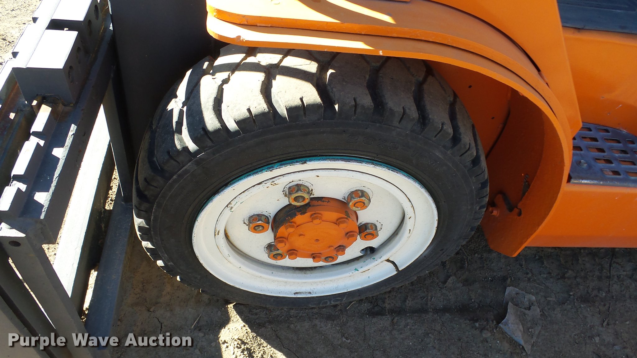 Purple Wave is selling a used Cushion Tire or Pneumatic Forklift in Nevada. This item is a 2003 Toyota 7FGU30 forklift with the following: 10,523 hours on meter, Toyota 4YECS 2.237L four cylinder propane engine, Powershift transmission, 1F-1R gears, OROPS, Tilt, 5,800 lbs max lift capacity, 131.5" max lift height, Two stage mast, Side shift, Mast tilt, 28x9-15 NHS front tires, 6.50-10 NHS rear tires, Approx. 10,030 lbs. base operating weight, Propane bottle not included, Serial 63254