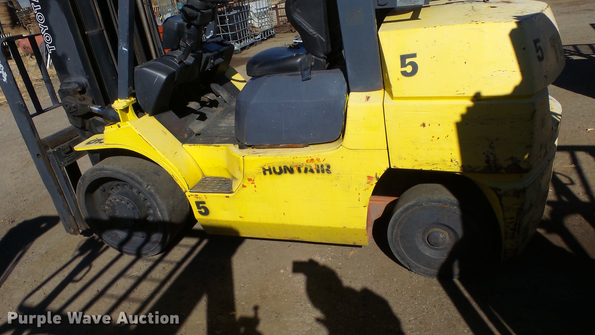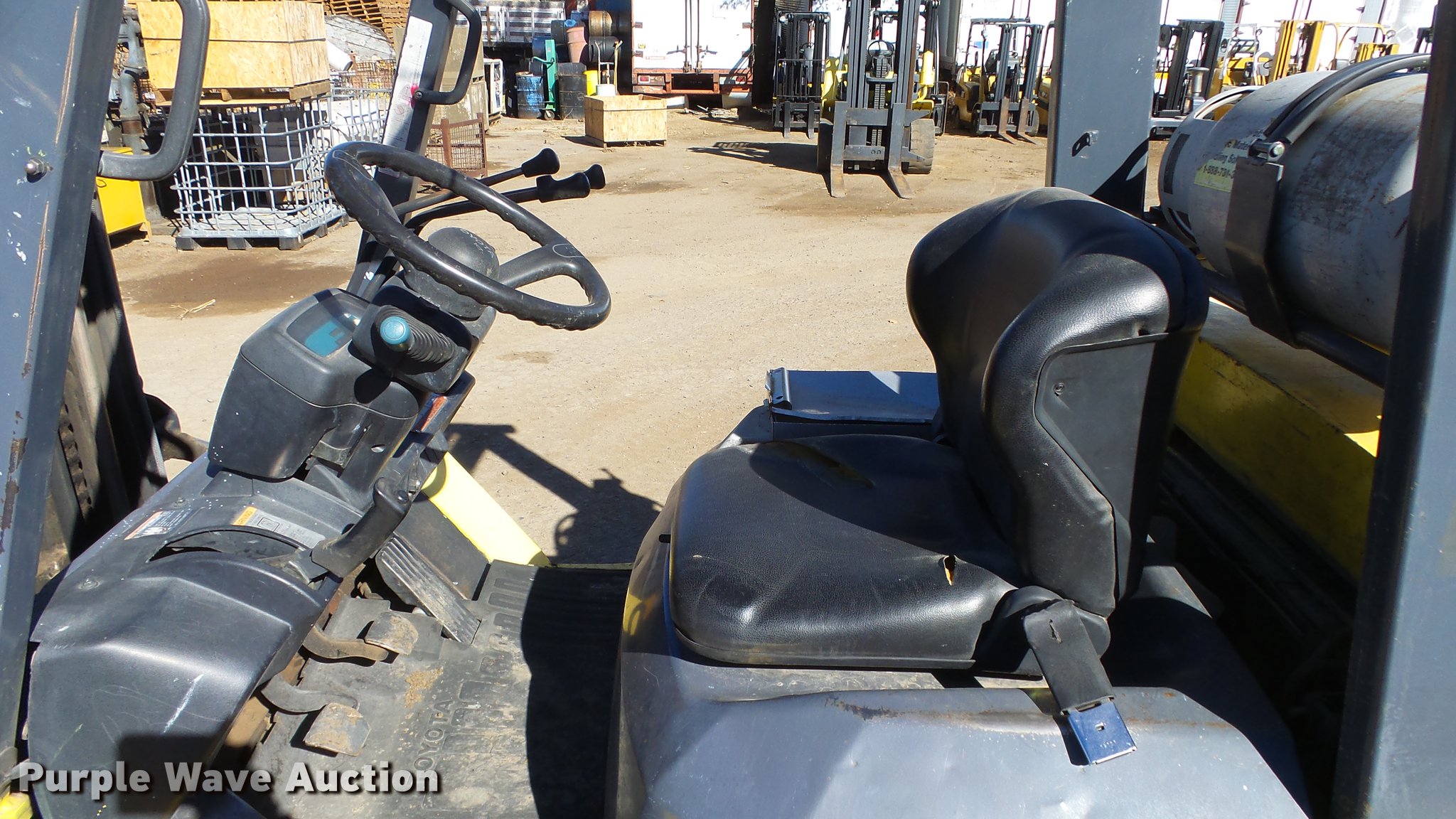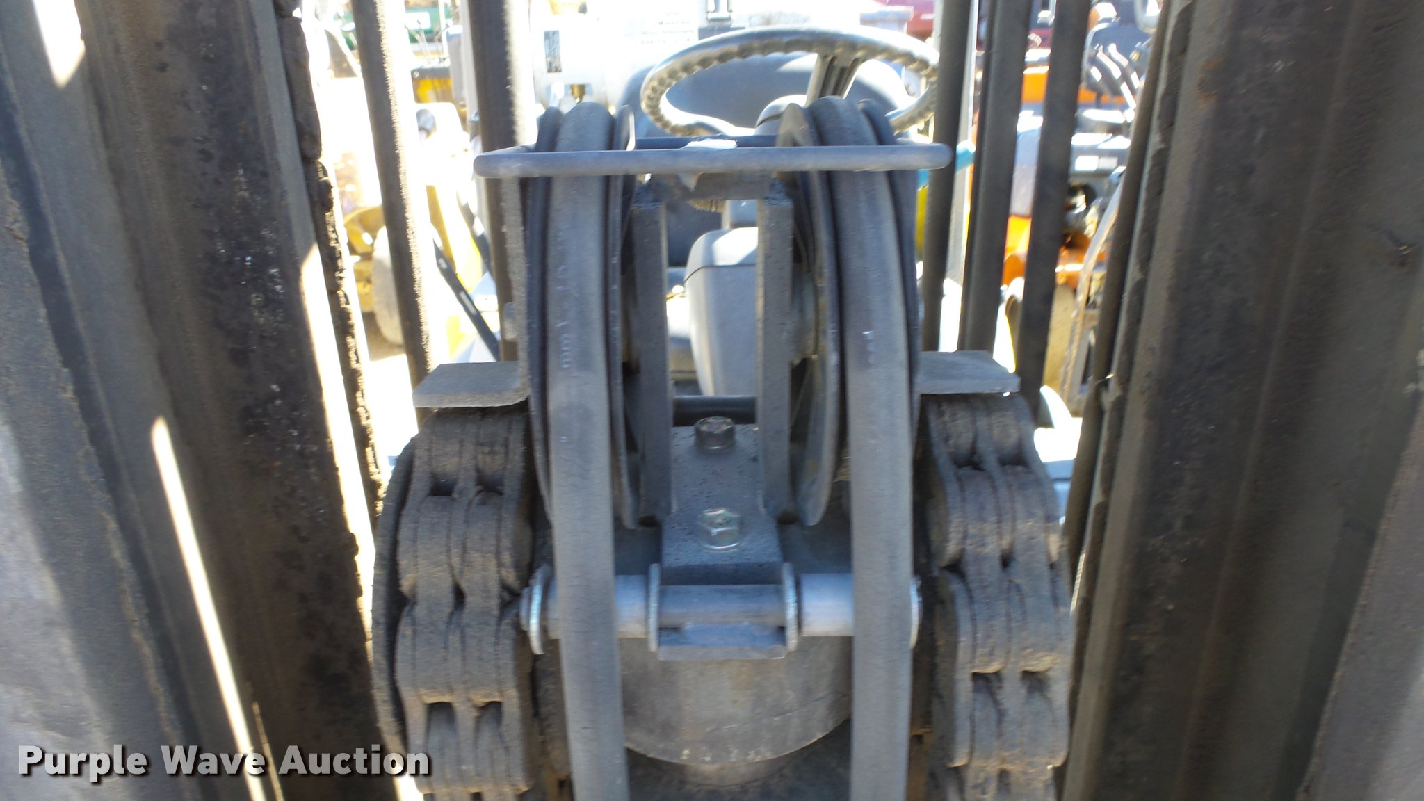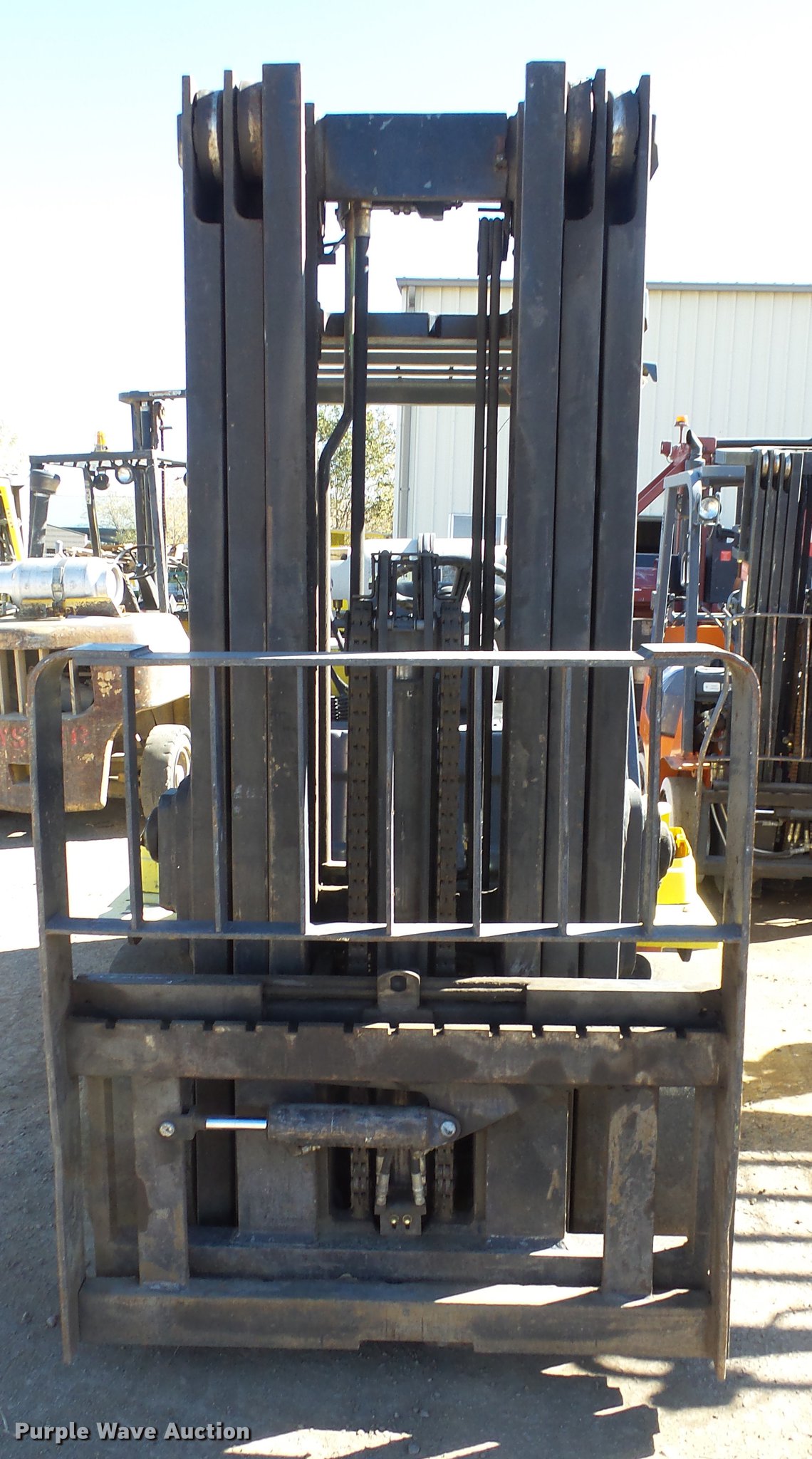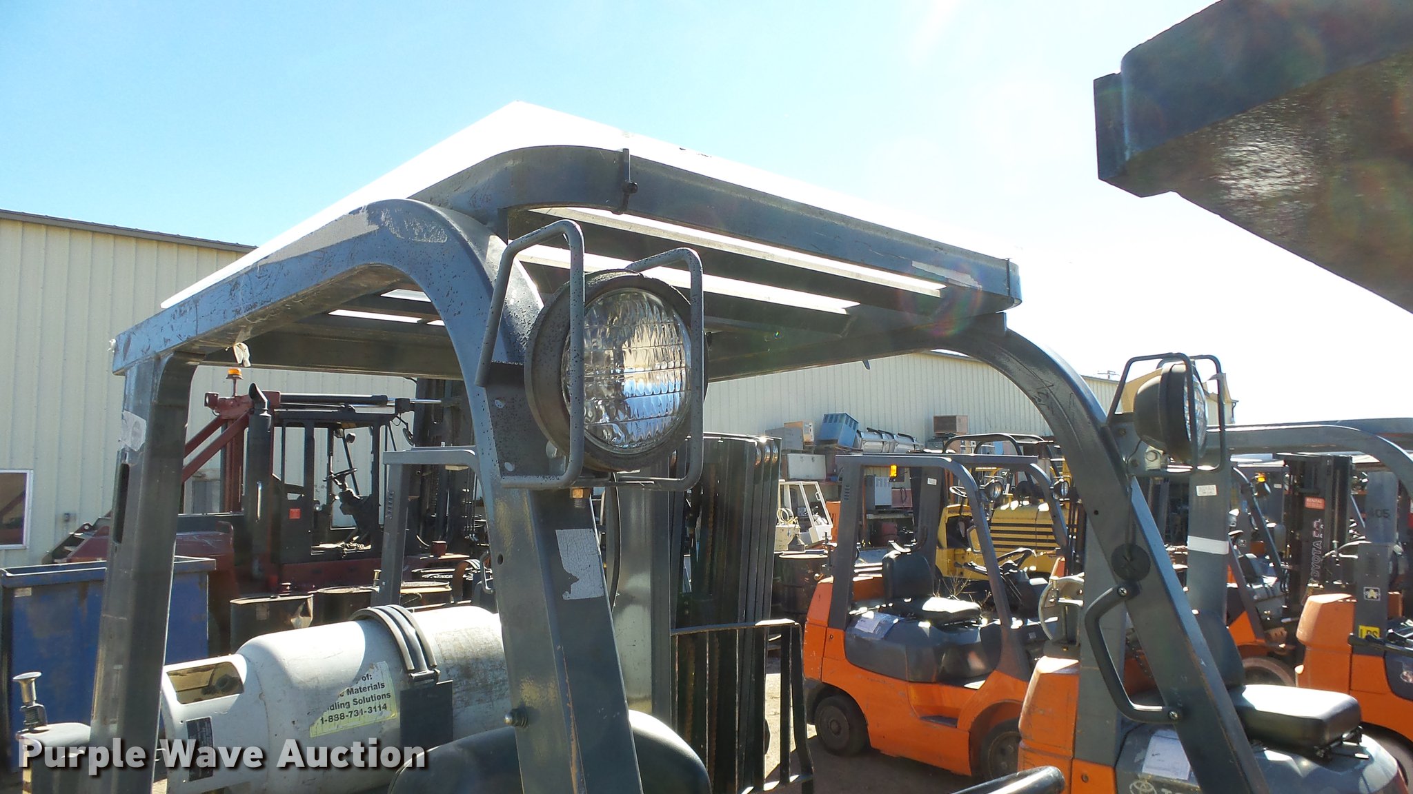 Purple Wave is selling a used Cushion Tire or Pneumatic Forklift in Nevada. This item is a Toyota 7FGCU55 forklift with the following: 18,994 hours on meter, GM Vortec six cylinder propane engine, Powershift transmission, 1F-1R gears, OROPS, Tilt, Work lights, 10,850 lbs max lift capacity, 199.5" max lift height, Three stage mast, Side shift, Mast tilt, 28x10x11 solid front tires, 22x7x16 solid rear tires, Approx. 18,780 lbs. base operating weight, Propane tank not included, Serial 60060