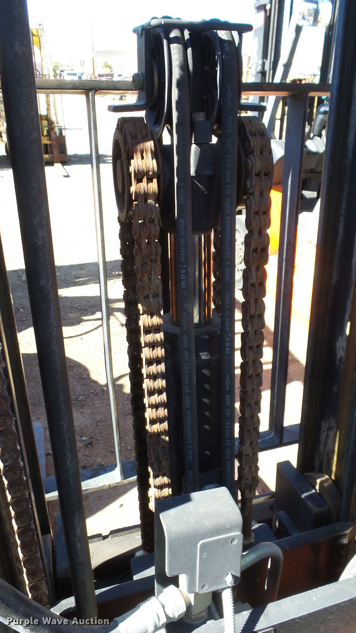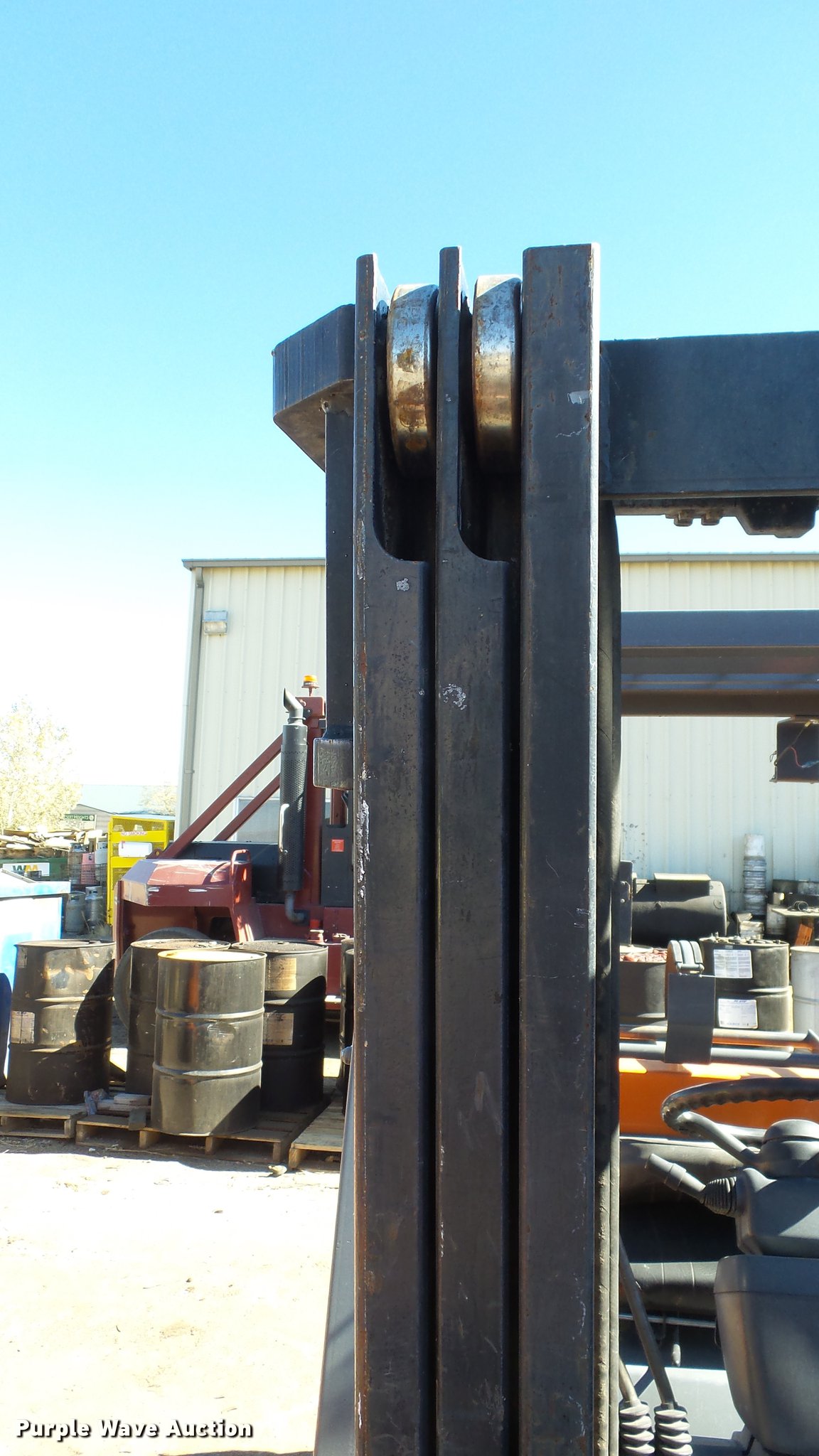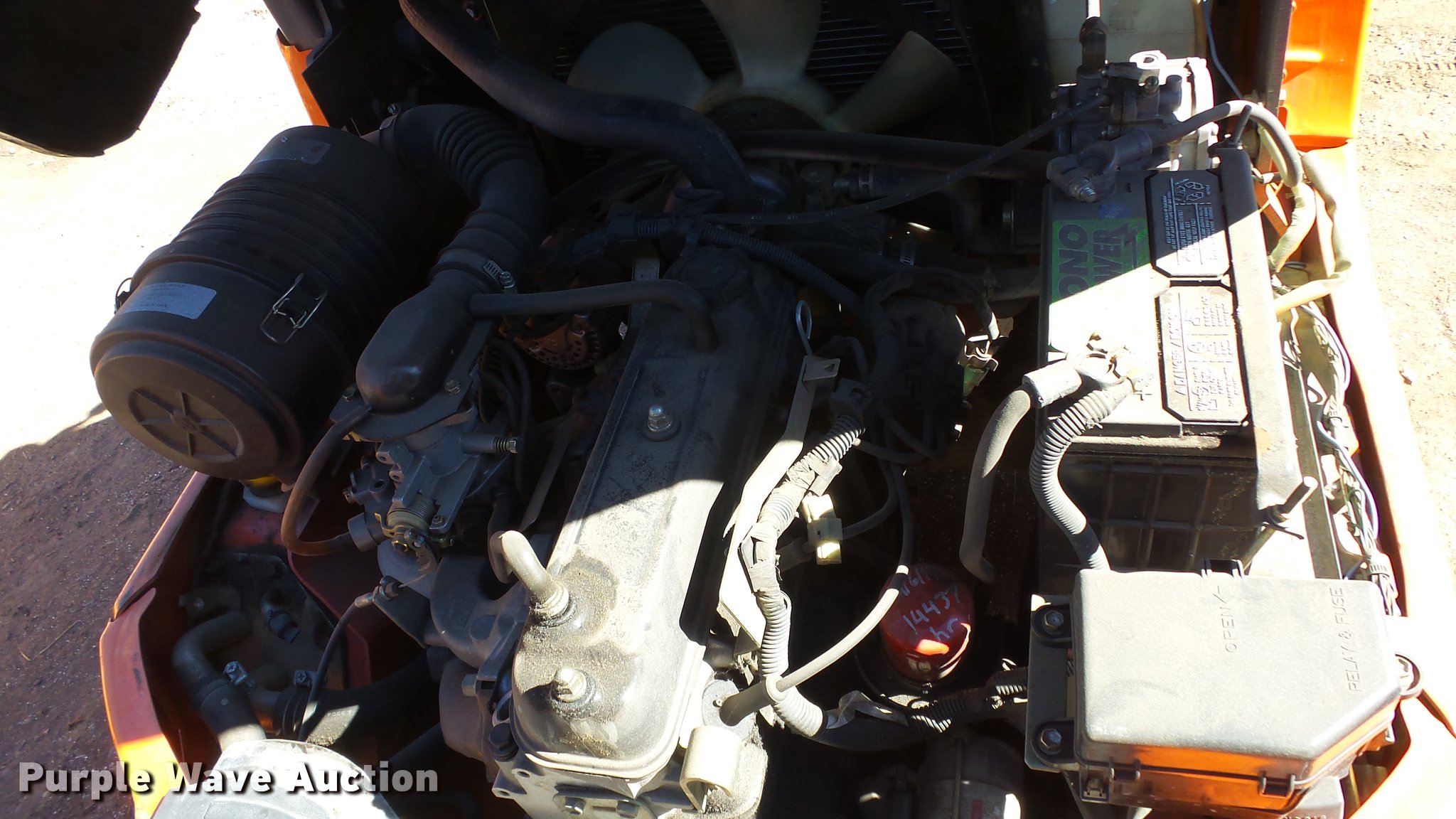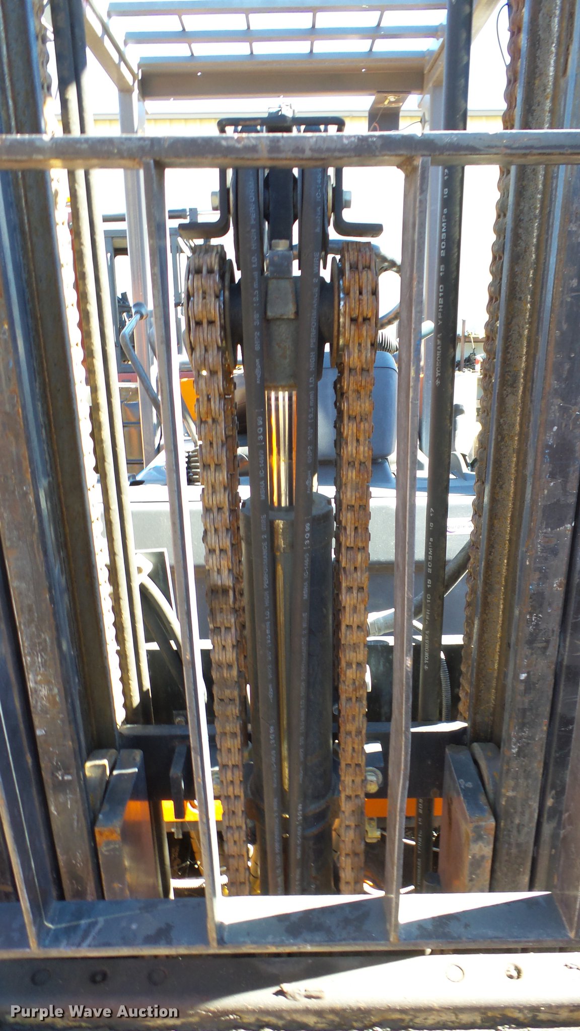 Purple Wave is selling a used Cushion Tire or Pneumatic Forklift in Nevada. This item is a Toyota 7FGCU25 forklift with the following: 14,532 hours on meter, Four cylinder propane engine, Powershift transmission, 1F-1R gears, OROPS, Tilt, Work lights, 4,900 lbs max lift capacity, 189" max lift height, Three stage mast, Side shift, Mast tilt, 42" fork length, Hole in one fork, 21x7x15 solid front tires, 16x5x10 1/2 solid rear tires, Approx. 8,690 lbs. base operating weight, Propane tank not included, Serial 60534