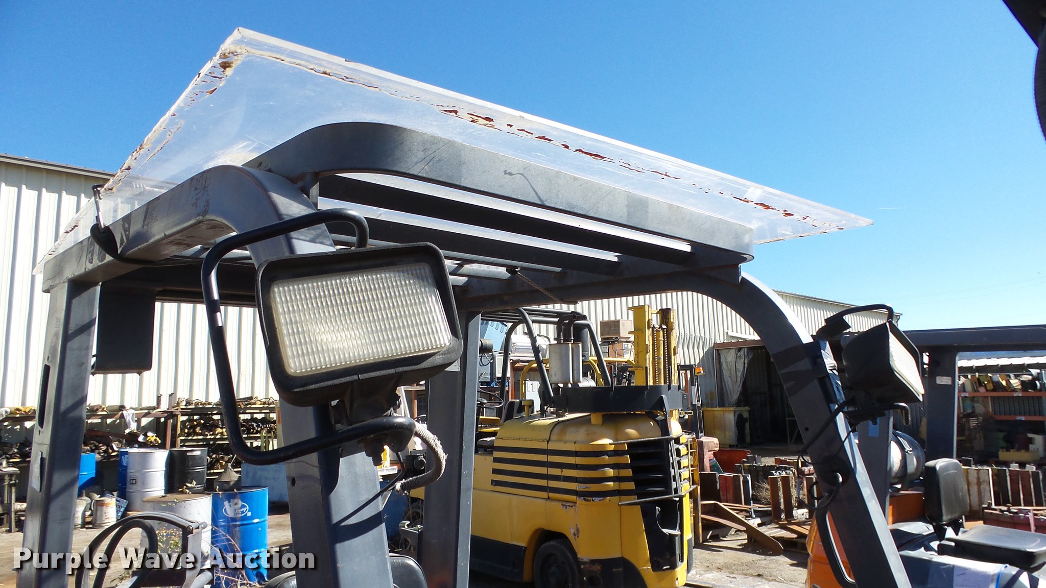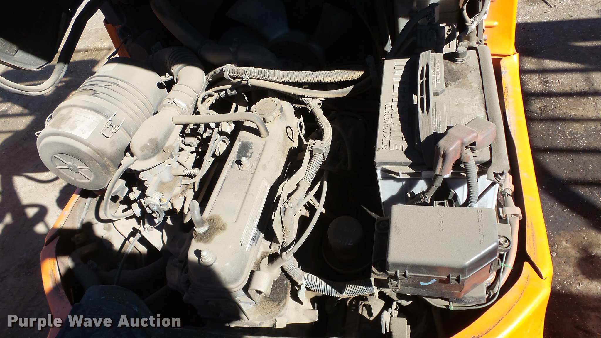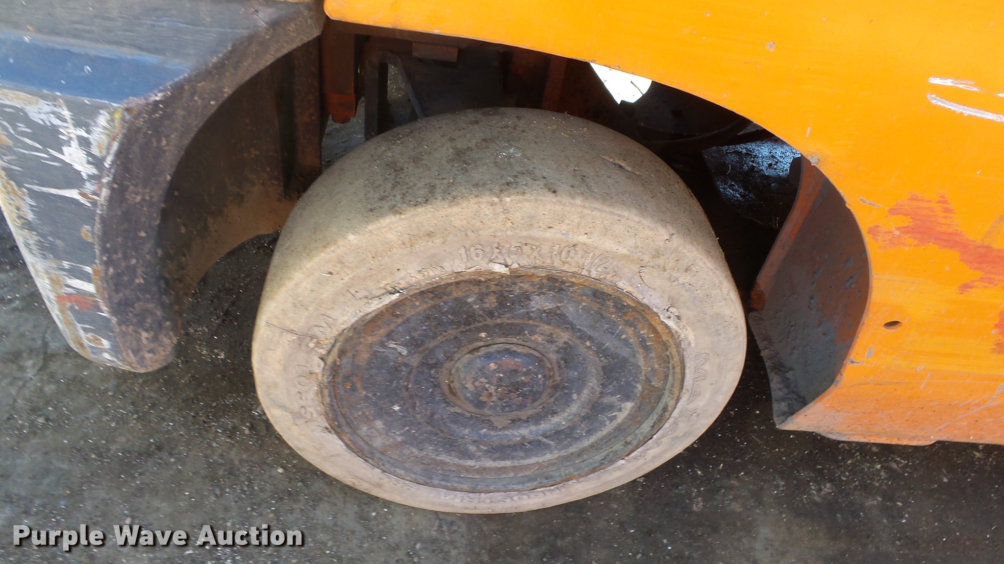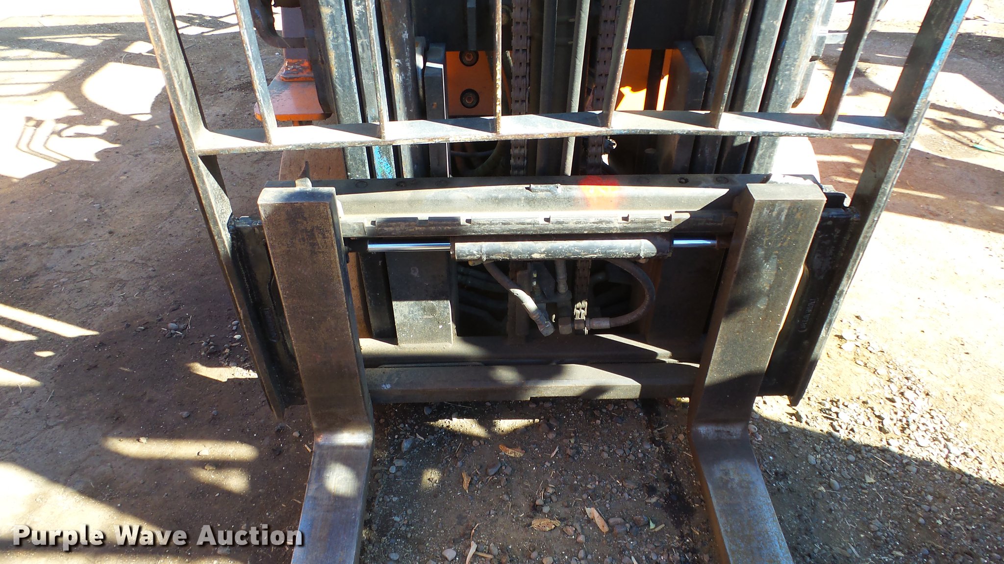Purple Wave is selling a used Cushion Tire or Pneumatic Forklift in Nevada. This item is a Toyota 7FGCU25 forklift with the following: 11,235 hours on meter, Toyota 2.237L four cylinder propane engine, Powershift transmission, 1F-1R gears, OROPS, Tilt, Work lights, 4,800 lbs max lift capacity, 189" max lift height, Three stage mast, Side shift, Mast tilt, 42" fork length, 21x7x15 solid non-marking front tires, 16x5x10 1/2 solid non-marking rear tires, Approx. 8,620 lbs. base operating weight, Propane bottle not included, Serial 81044