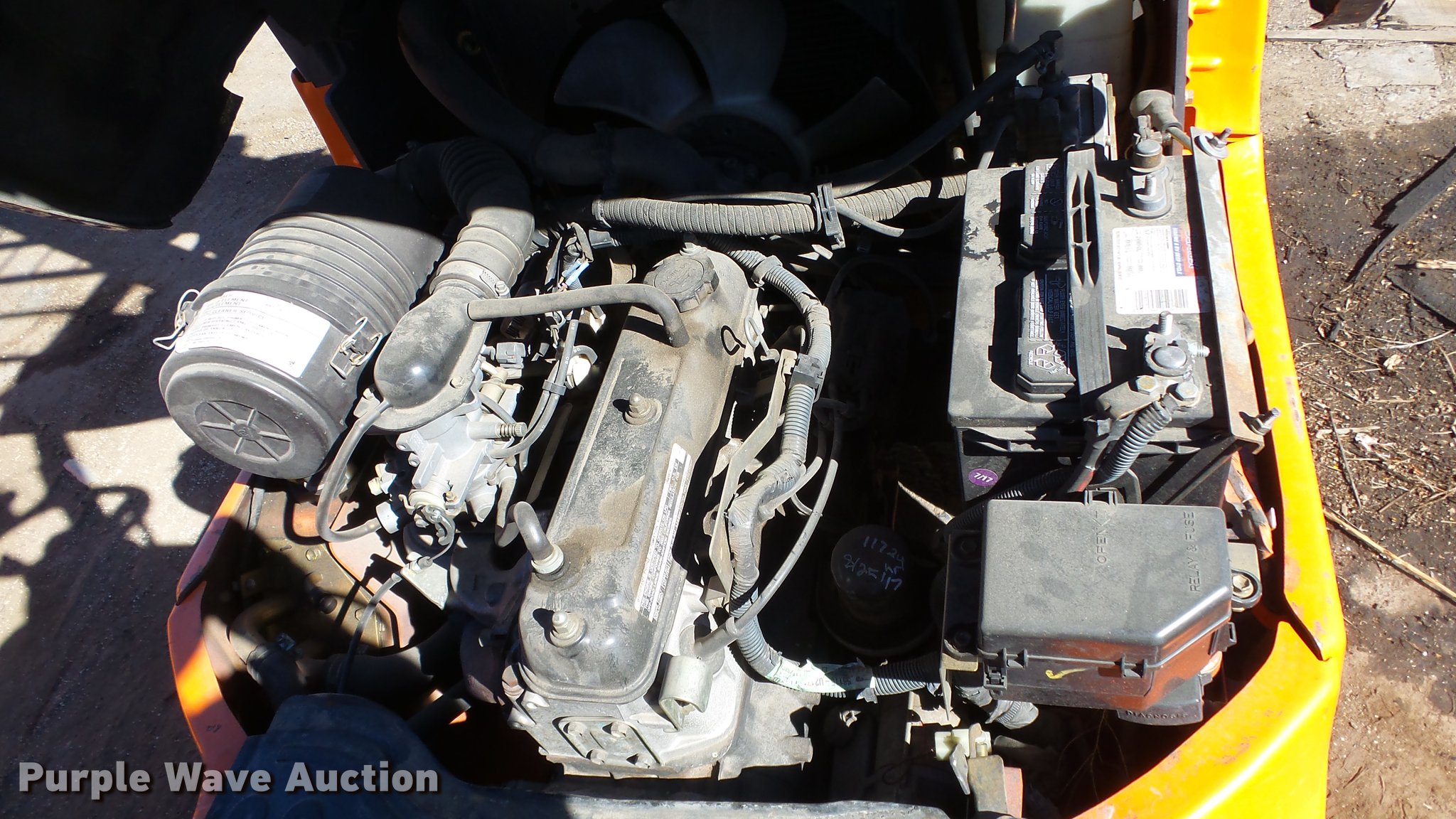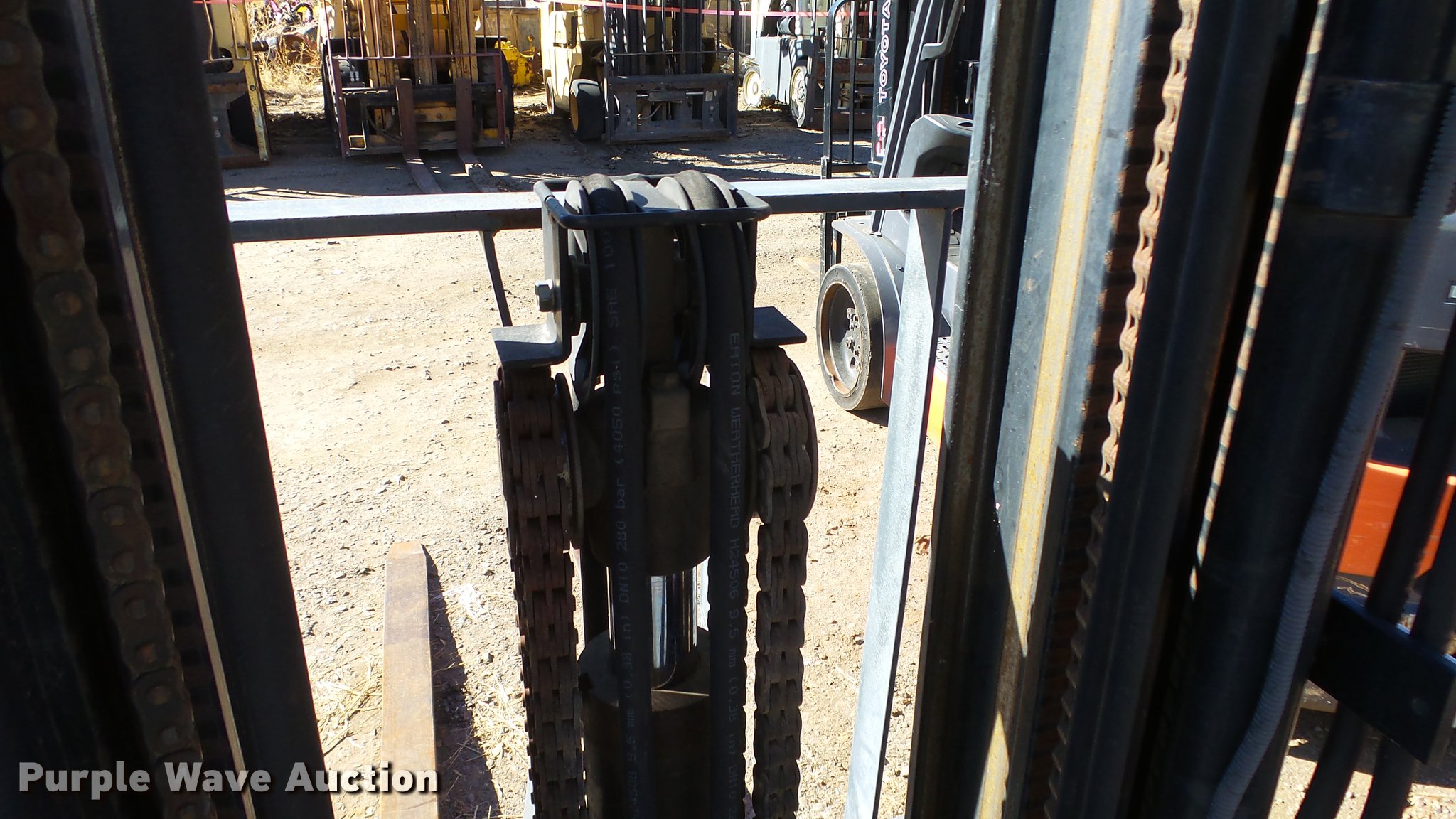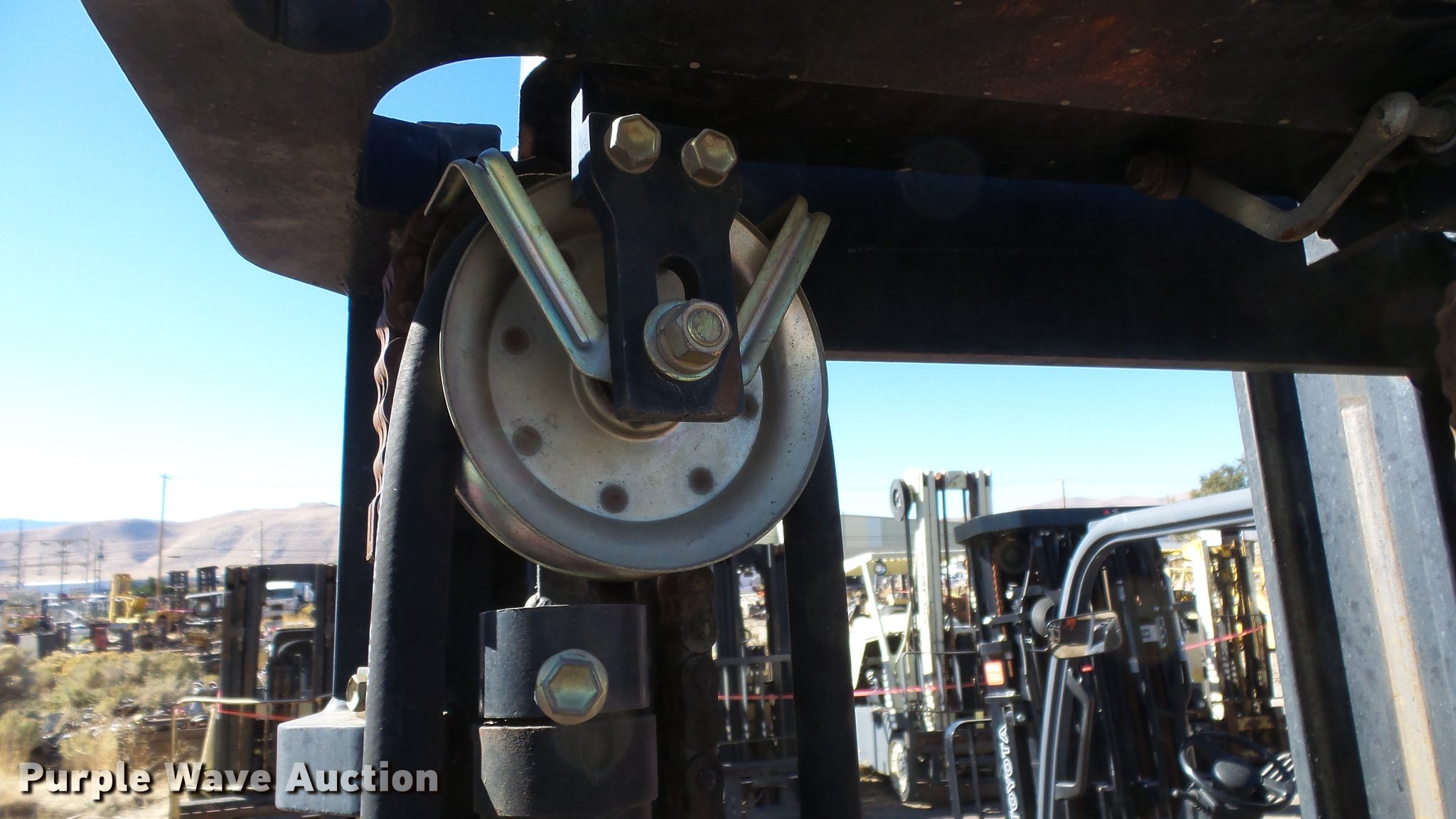 Purple Wave is selling a used Cushion Tire or Pneumatic Forklift in Nevada. This item is a Toyota 7FGCU25 forklift with the following: 11,766 hours on meter, Toyota 2.237L four cylinder propane engine, Powershift transmission, 1F-1R gears, OROPS, Tilt, Work lights, 4,800 lbs max lift capacity, 189" max lift height, Three stage mast, Side shift, Mast tilt, 72" fork length, 21x7x15 solid front tires, 16x5x10 1/2 solid rear tires, Approx. 8,560 lbs. base operating weight, Propane bottle not included, Serial 81720