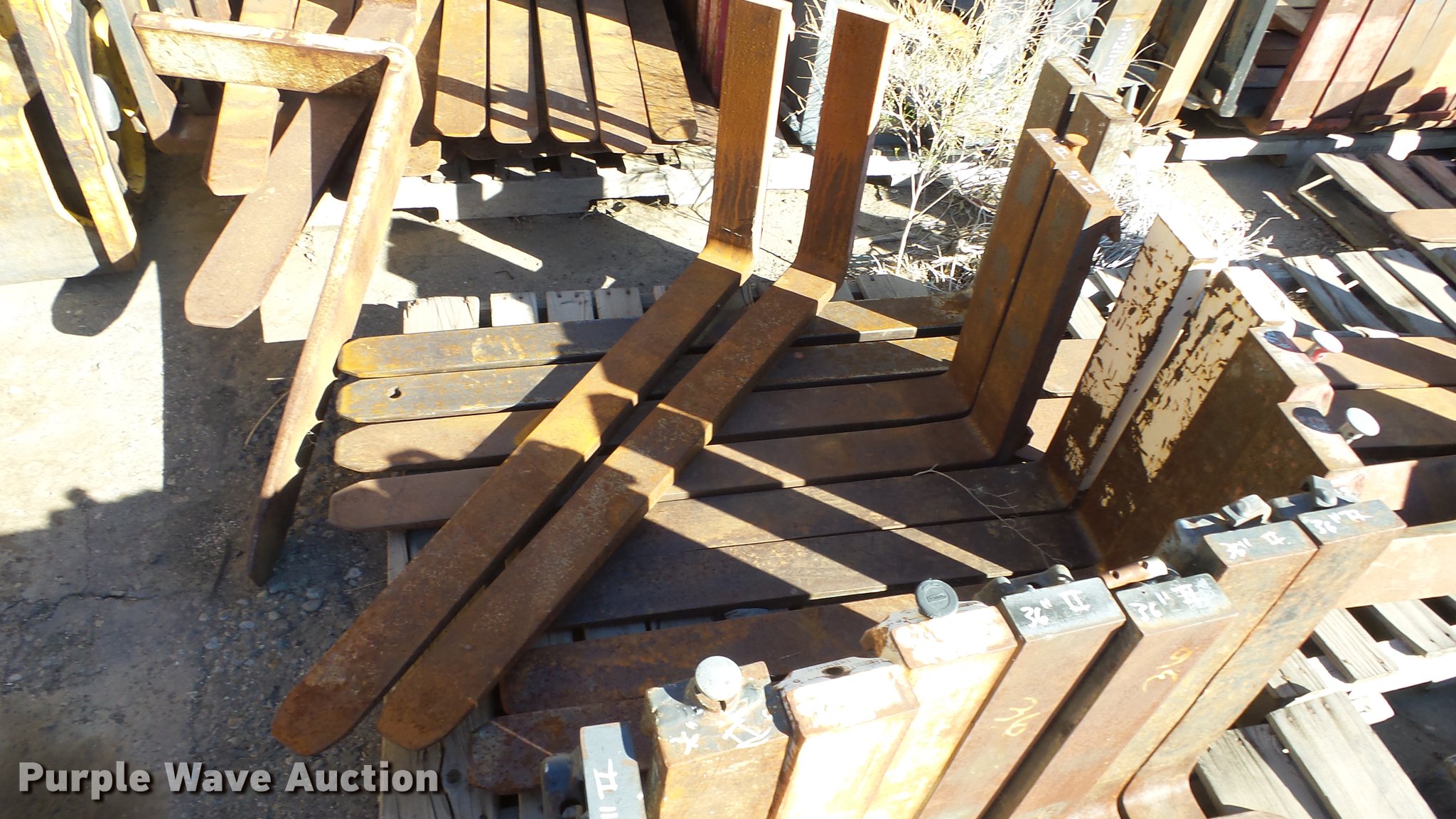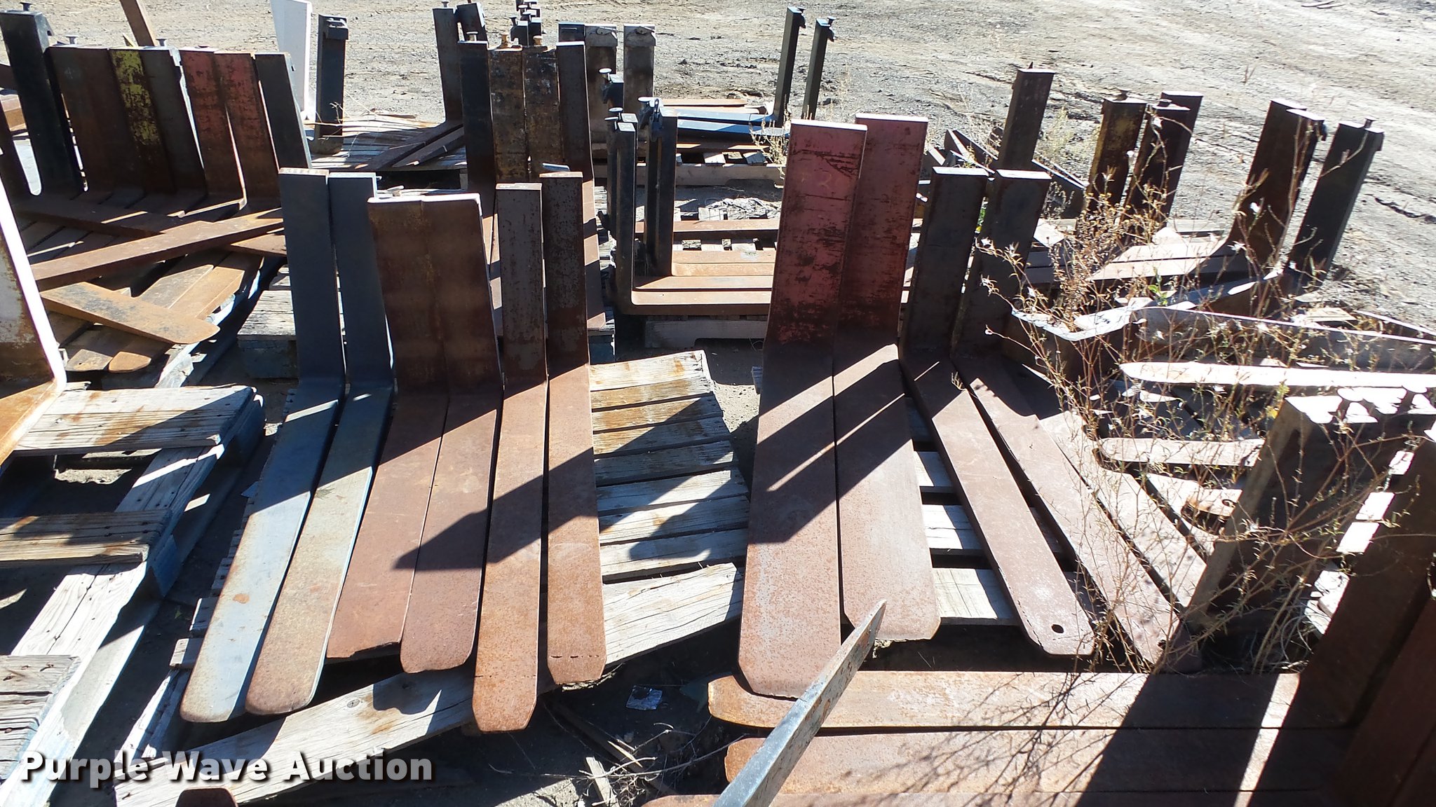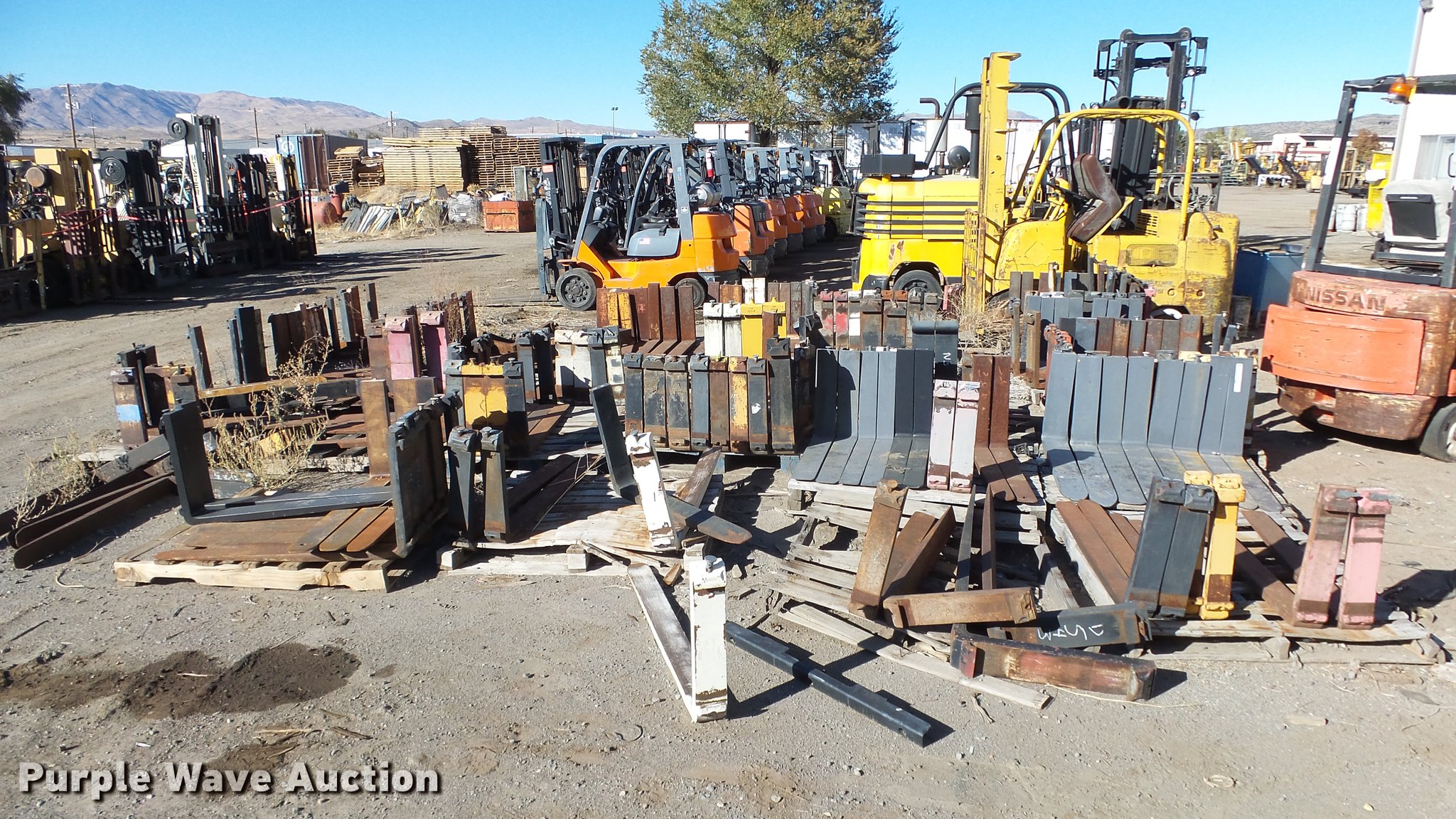 Approximately 175 sets of forks. Most class II, Some class III, 34"L, 36"L, 37"L, 38"L, 40"L, 41"L, 42"L, 44"L, 47"L, 48"L, Most hang-on mount, Some have holes in forks, Some may be unused. Nevada Forklift Sales - Open inspection Nov. 16 and Dec. 5. 13951 Mt Bismark St. Reno, NV 89506