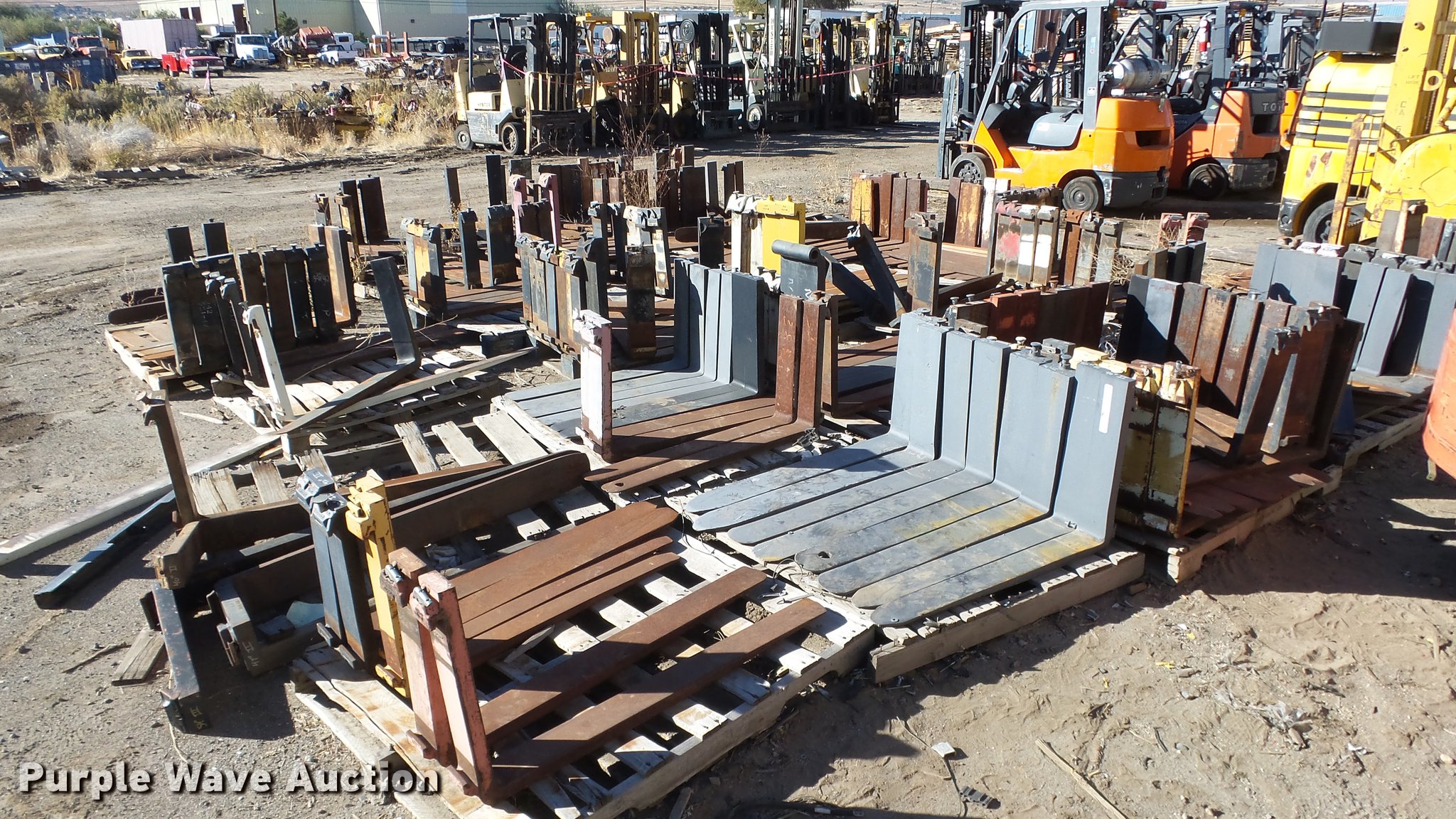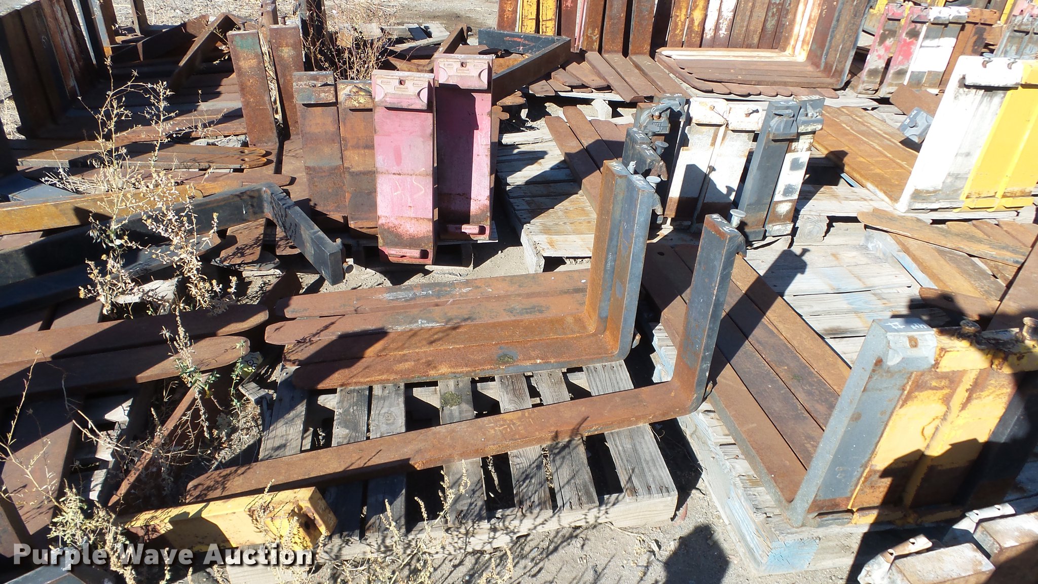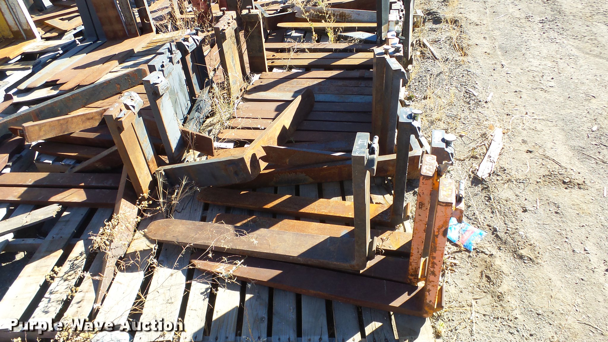 Approximately 175 sets of forks. Most class II, Some class III, 34"L, 36"L, 37"L, 38"L, 40"L, 41"L, 42"L, 44"L, 47"L, 48"L, Most hang-on mount, Some have holes in forks, Some may be unused. Nevada Forklift Sales - Open inspection Nov. 16 and Dec. 5. 13951 Mt Bismark St. Reno, NV 89506