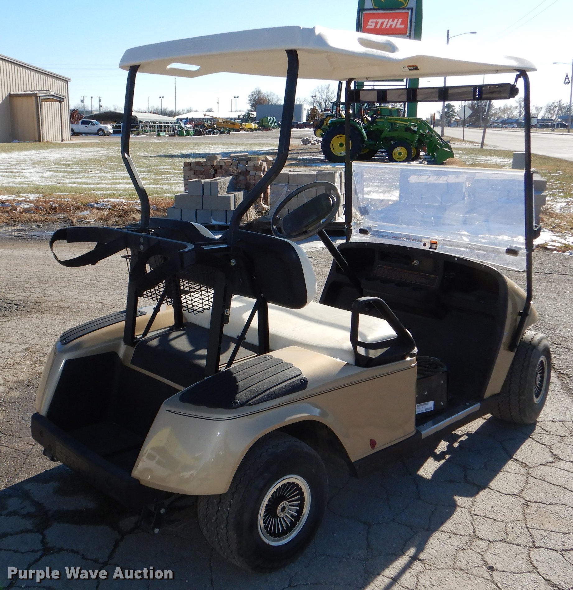 Purple Wave is selling a used Golf Cart in Kansas. This item is a 1996 Ez-go TXT golf cart with the following: 36V DC electric motor, (6) 2018 Trojan 6V batteries, Canopy, Fold down windshield, Rear view mirror, Double bag carrier, Charger, Carlisle 18.5x8.5-8 tires, Serial 963330
