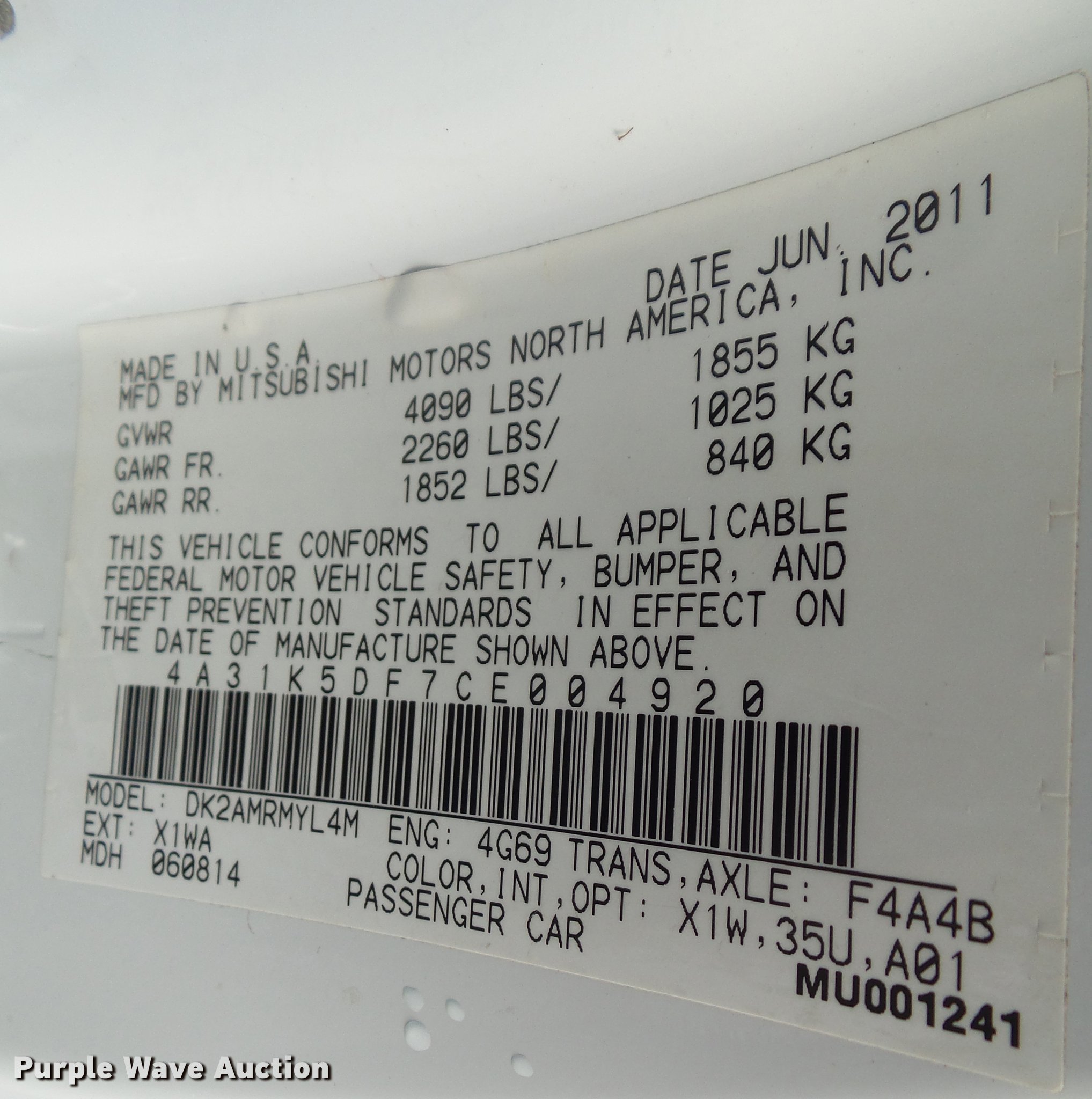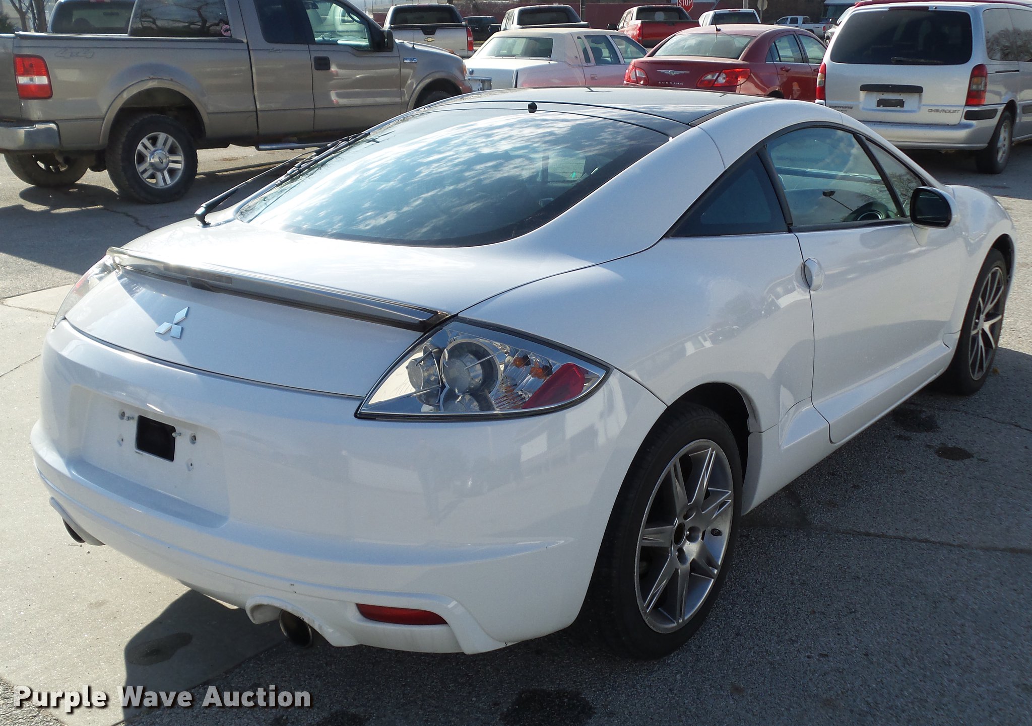 Purple Wave is selling a used Passenger Vehicle in Iowa. This item is a 2012 Mitsubishi Eclipse GS Sport with the following: 106,976 miles on odometer, 2.4L L4 SOHC 16V gas engine, Automatic transmission, AC and heat, Tilt, Cruise, AM/FM/CD, Power windows, locks, and mirrors, Cloth interior, 255/45ZR18 tires