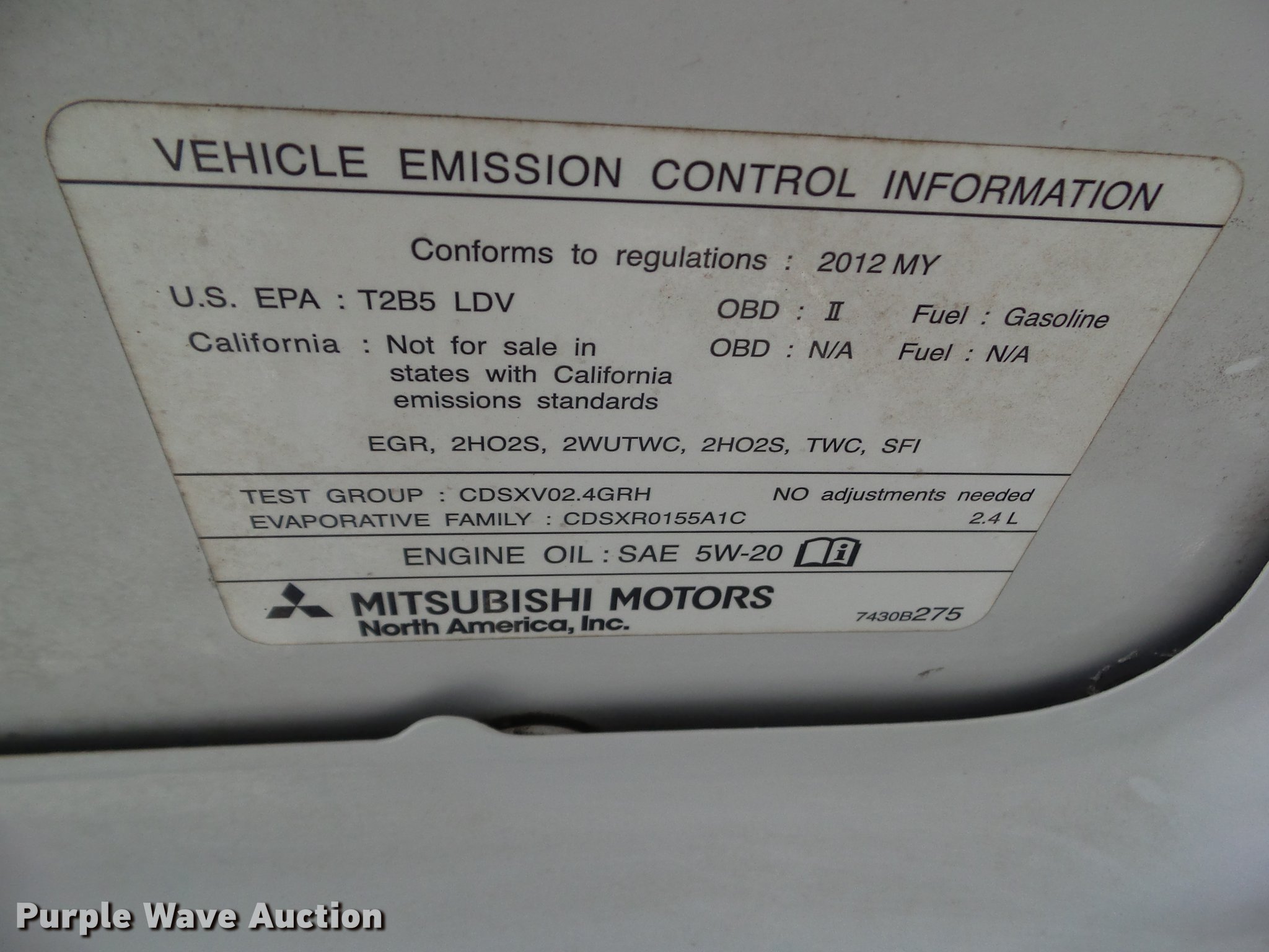 Take a look at this used 2012 Mitsubishi Eclipse GS Sport being sold on December 12th, 2018 in the SOLD! December 12 Vehicles and Equipment Auction made by Mitsubishi. Take a look at all of the item information below or take a look at similar auctions for Passenger Vehicles.