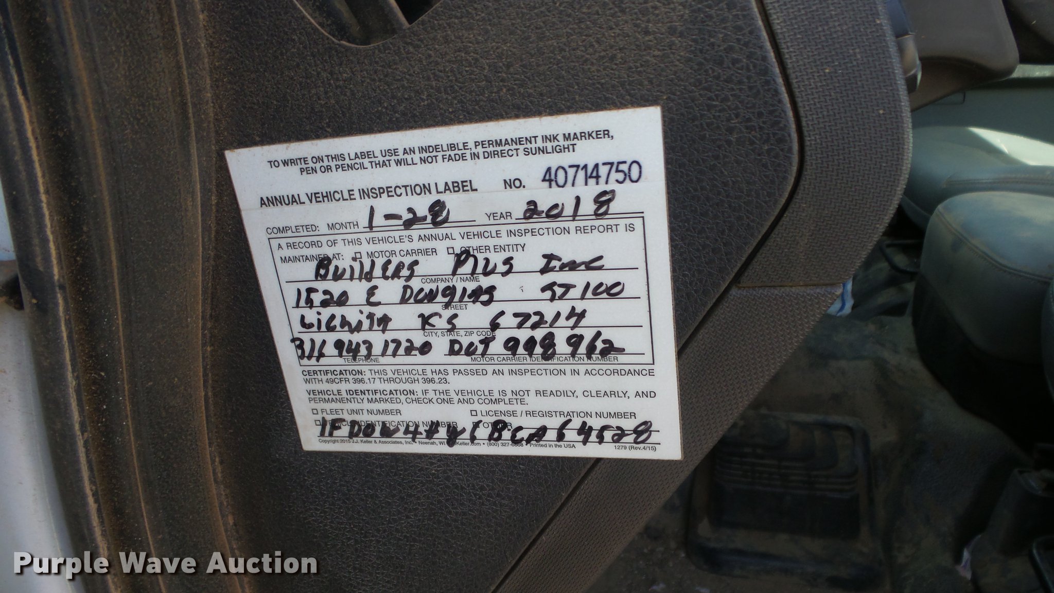 Purple Wave is selling a used Service Truck in Kansas. This item is a 2011 Ford F450 Super Duty Crew Cab utility truck with the following: 101,291 miles on odometer, 6.8L V10 SOHC 30V gas engine, Automatic transmission, Four wheel drive, AC and heat, Tilt, Cruise, AM/FM, Power windows, locks, and mirrors, Vinyl interior, Running boards, 9'L x 8'W utility bed, Utility rack, Receiver hitch, Trailer wiring, 225/70R19.5 tires
