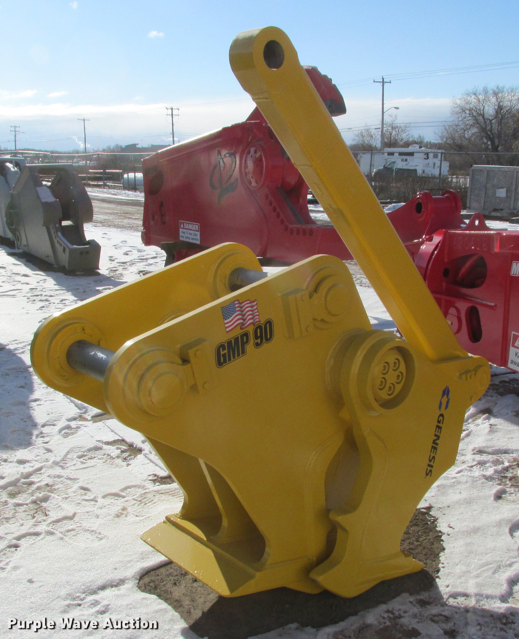 Purple Wave is selling a used Shear or Processor in Wisconsin. This item is a Genesis GMP90 mechanical pulverizer with the following: 40" jaw opening, 35" jaw depth, 7,172 lbs. base operating weight, 80,000 to 110,000 lbs excavator weight