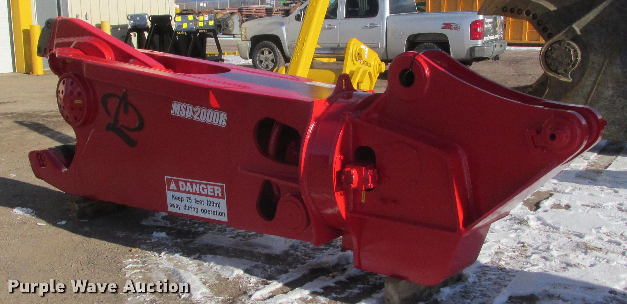 Purple Wave is selling a used Shear or Processor in Wisconsin. This item is a LaBounty MSD 2000R shear with the following: Full rotation, 31" on-center spacing, 3.5" pin diameter, 28" jaw opening, 29" jaw depth, 10,200 lbs. base operating weight, 50,000 lbs to 90,000 lbs excavator weight
