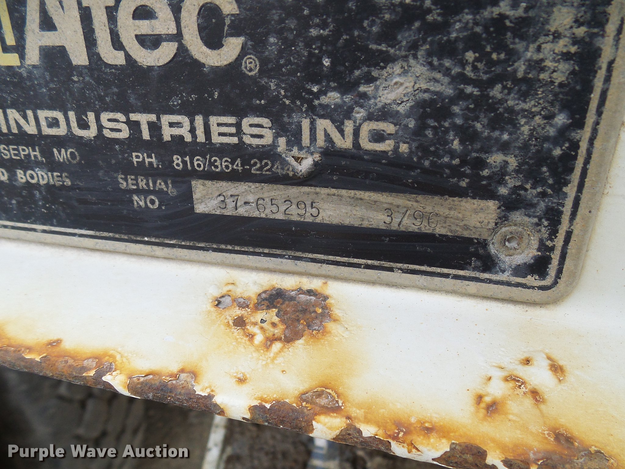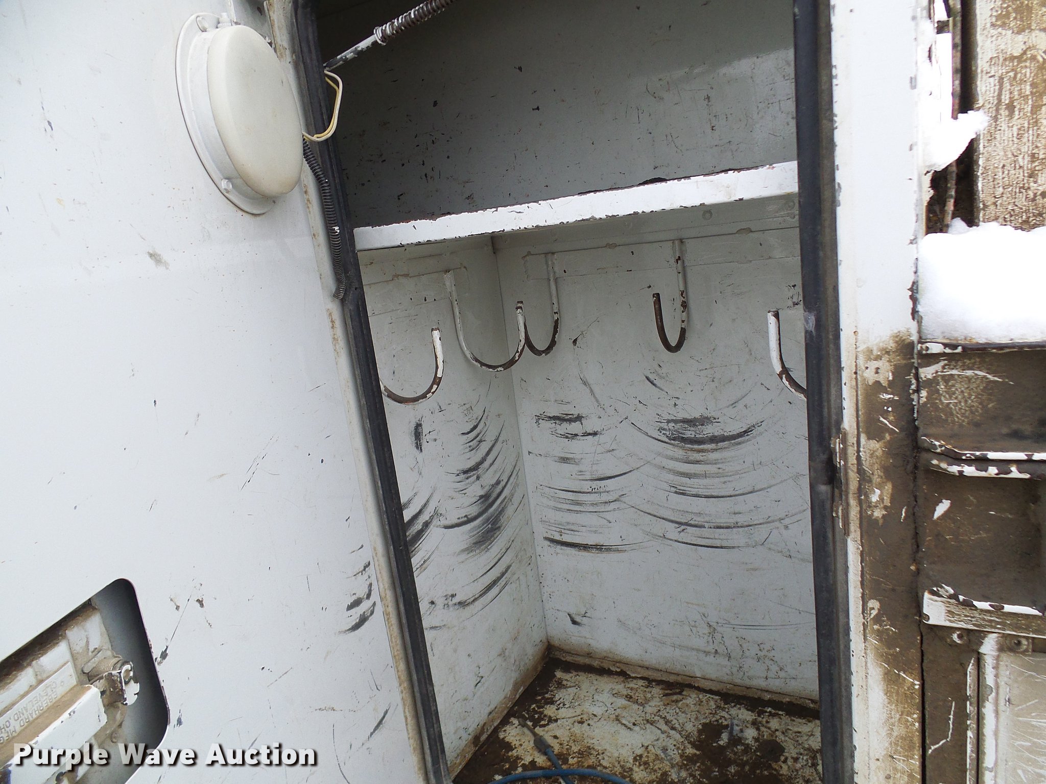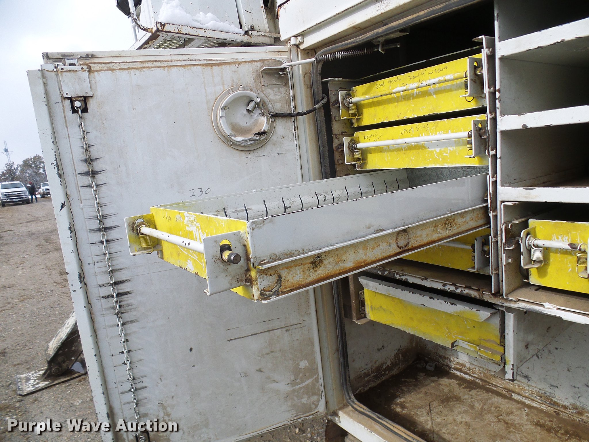 Purple Wave is selling a used Bucket Truck in Missouri. This item is a 1996 International 4700 bucket truck with the following: 143,198 miles on odometer, 6,248 hours on meter, International DT466 7.6L L6 turbo diesel engine, Spicer five speed manual transmission, Single axle, Heat, AM/FM, Heated mirrors, Suspension seat, PTO, Tow hooks, Altec utility bed, 15'L, Shelving, Slide-out drawers, Serial 37-65295, Altec D947 boom, 12,000 lbs maximum lift capacity, 47' maximum lift height, Ground boom controls, Boom rotation, Pole guide, Telescopic boom, Rope material handler, (4) outriggers, Serial 0196BH0665, Single fuel tank, Pintle hitch, Trailer wiring, Spring suspension, Air brakes, 315/80R22.5 front tires, 11R22.5 rear tires