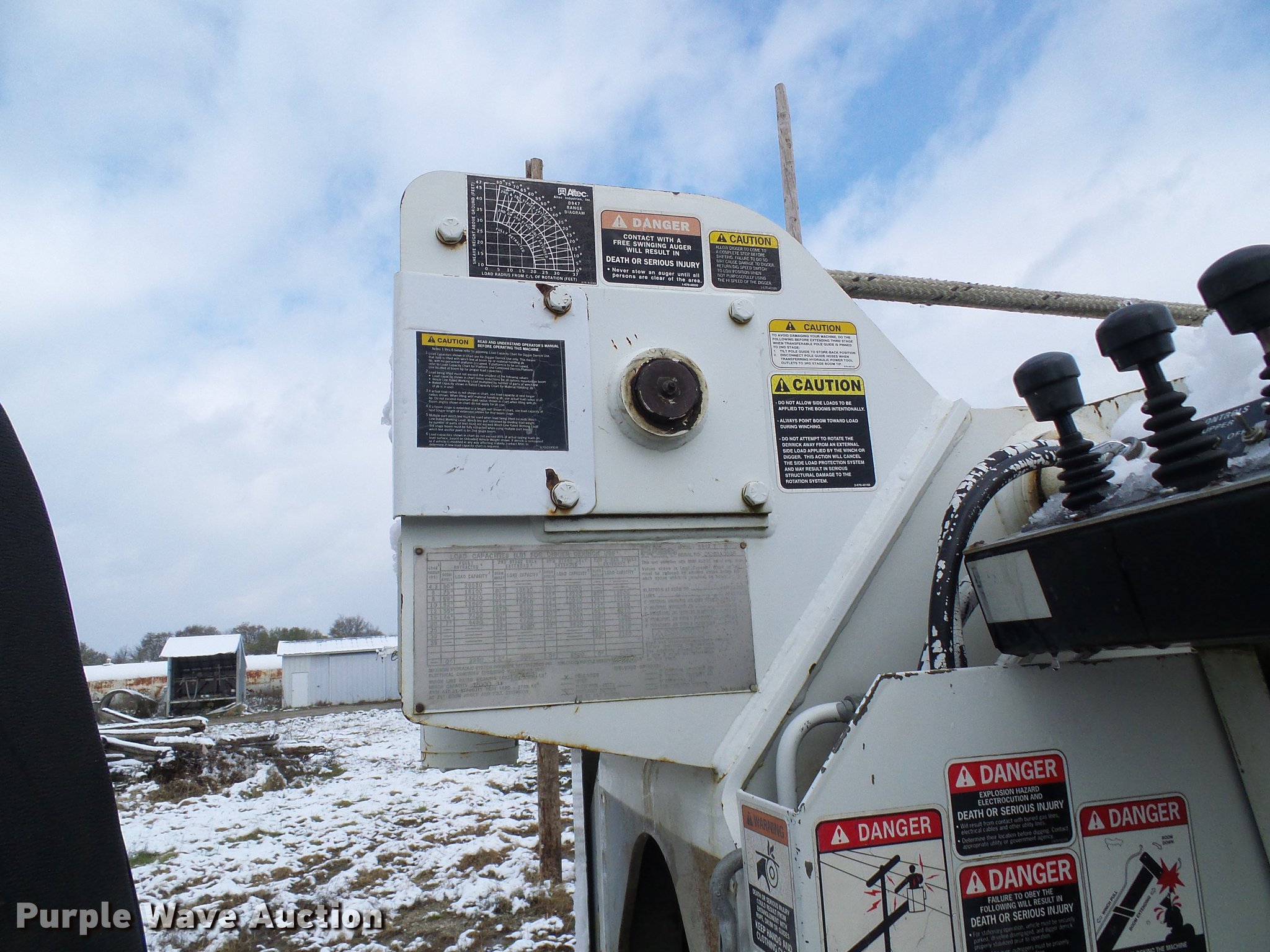 1996 International 4700 bucket truck. 143,198 miles on odometer, 6,248 hours on meter, International DT466 7.6L L6 turbo diesel engine, Spicer five speed manual transmission, Single axle, Heat, AM/FM, Heated mirrors, Suspension seat, PTO, Tow hooks, Altec utility bed 15'L, Shelving, Slide-out drawers, Serial 37-65295, Altec D947 boom 12,000 lbs maximum lift capacity, 47' maximum lift height, Ground boom controls, Boom rotation, Pole guide, Telescopic boom, Rope material handler, (4) outriggers, Serial 0196BH0665, Single fuel tank, Pintle hitch, Trailer wiring, Spring suspension, Air brakes, 315/80R22.5 front tires, 11R22.5 rear tires. Missouri title. 1HTSCAAN9TH323973. Kiowa Line Builders. 801 MO-5. Tipton, MO 65081