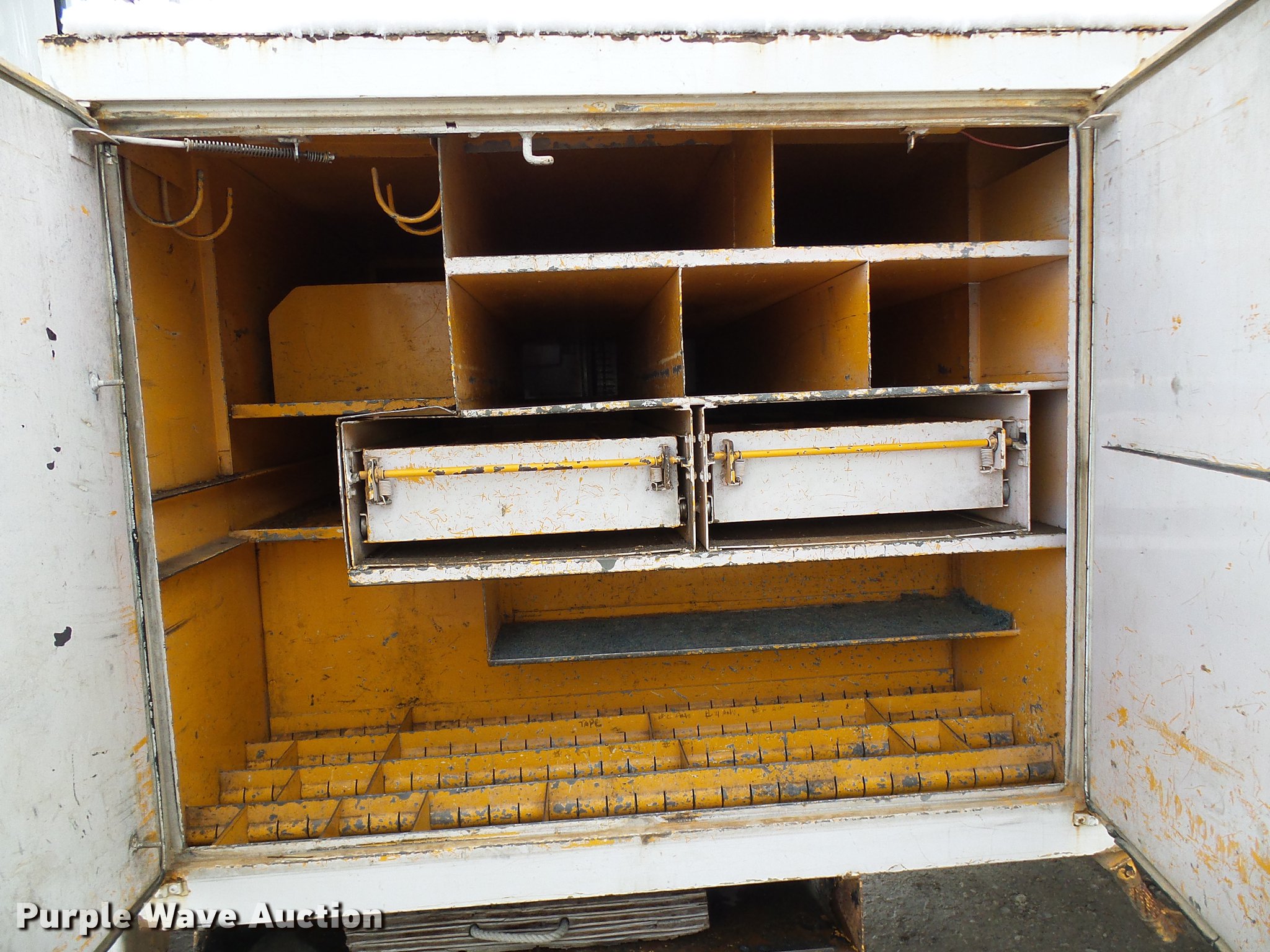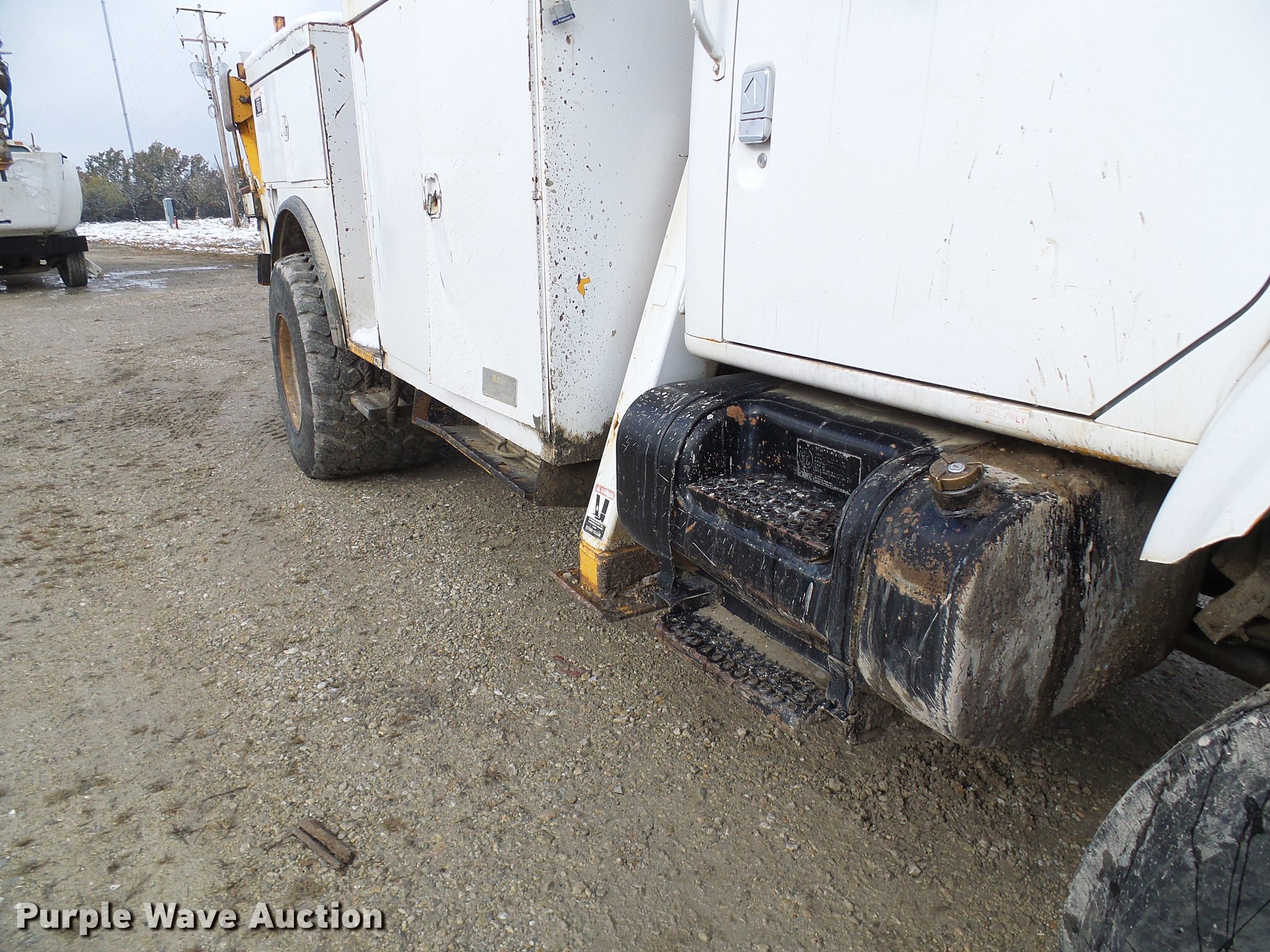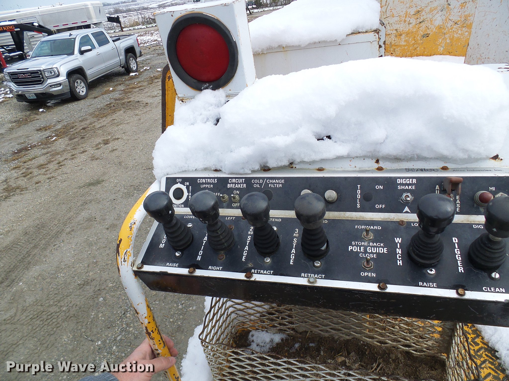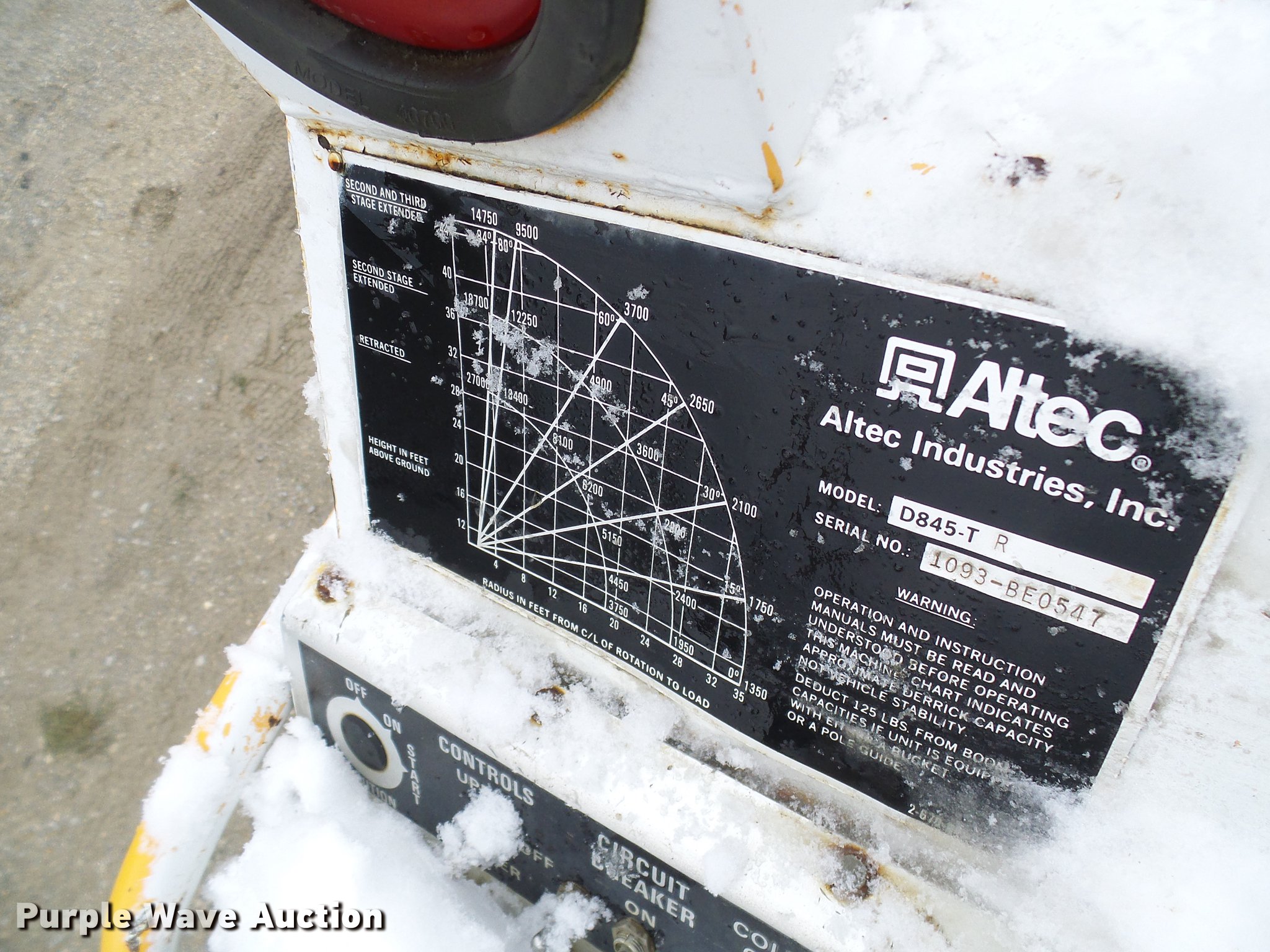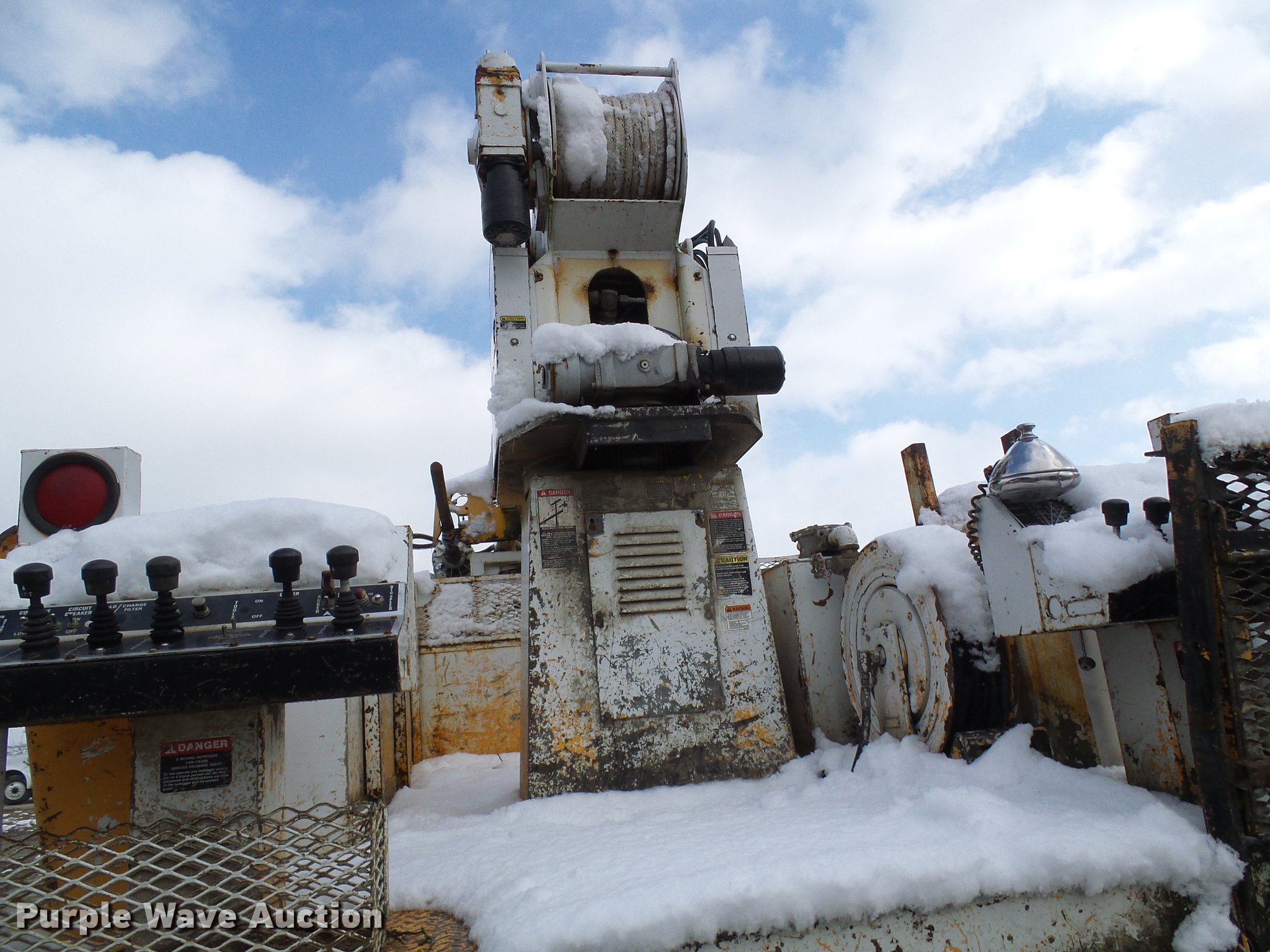 Purple Wave is selling a used Digger Derrick Truck in Missouri. This item is a 1995 International 4800 digger derrick truck with the following: 127,037 miles on odometer, 16,098 hours on meter, International DT466 7.6L L6 turbo diesel engine, Automatic transmission, Four wheel drive, Single axle, Heat, AM/FM, Suspension seat, PTO, Front mounted winch, Altec utility bed, 12'L, Shelving, Slide-out drawers, Shelving, Serial 8764094, Altec D845 boom, 45' maximum lift height, Ground boom controls, Pole guide, Telescopic boom, Rope material handler, (4) outriggers, Serial 1093BE0547, Single fuel tank, Spring suspension, Air brakes, 445/65R22.5 front tires, 600/50R22.5 rear tires