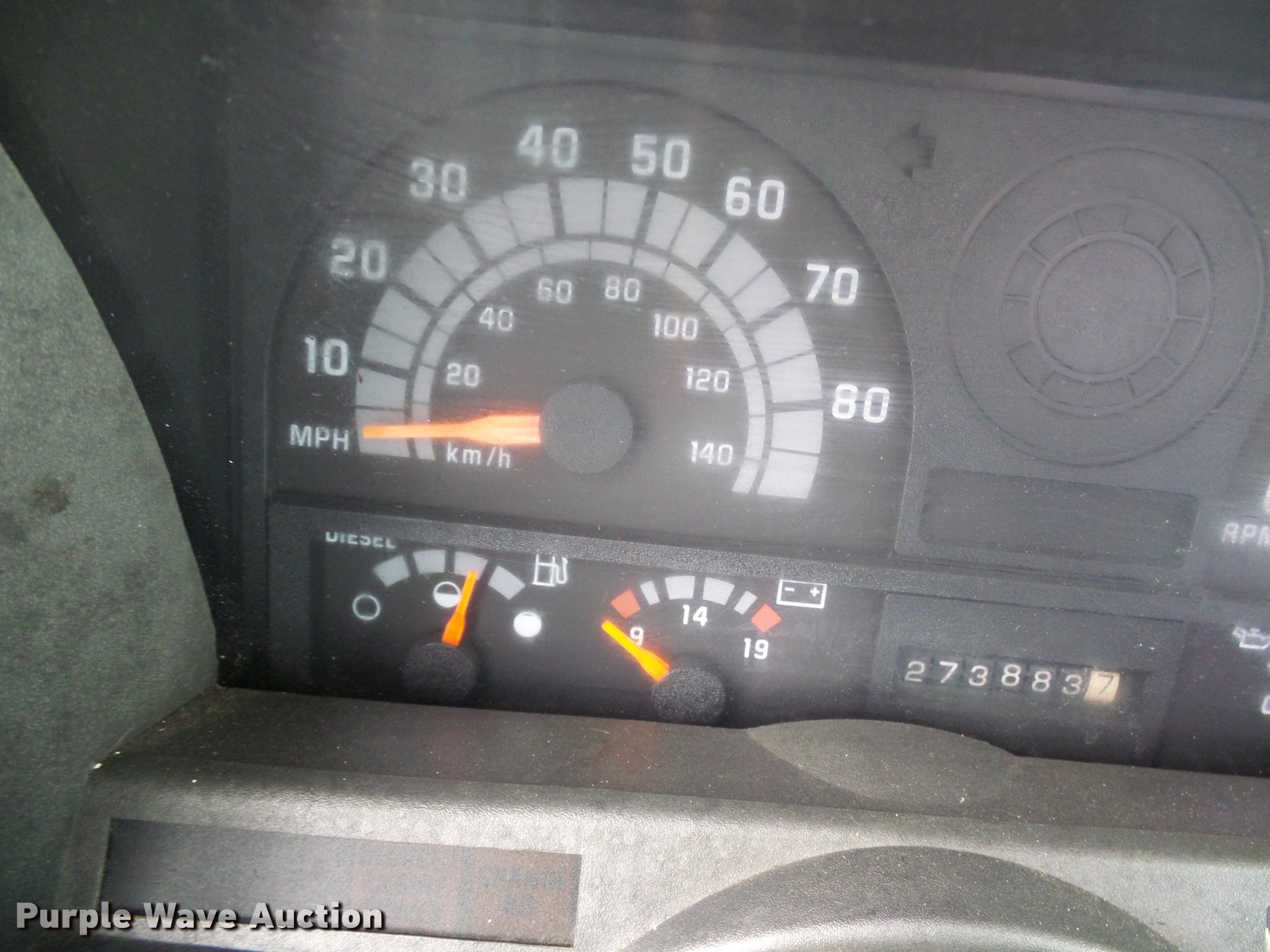 Purple Wave is selling a used Service Truck in Missouri. This item is a 2002 Chevrolet C6500 utility truck with the following: 273,883 miles on odometer, 15,309 hours on meter, Caterpillar 3126 7.2L L6 turbo diesel engine, Automatic transmission, Single axle, AC and heat, AM/FM, Suspension seat, Front tow hooks, PTO, Altec utility bed, 12'L, Shelving, (2) outriggers, Serial 17667530203, Single fuel tank, Trailer wiring, Spring suspension, Hydraulic brakes, 11R22.5 tires