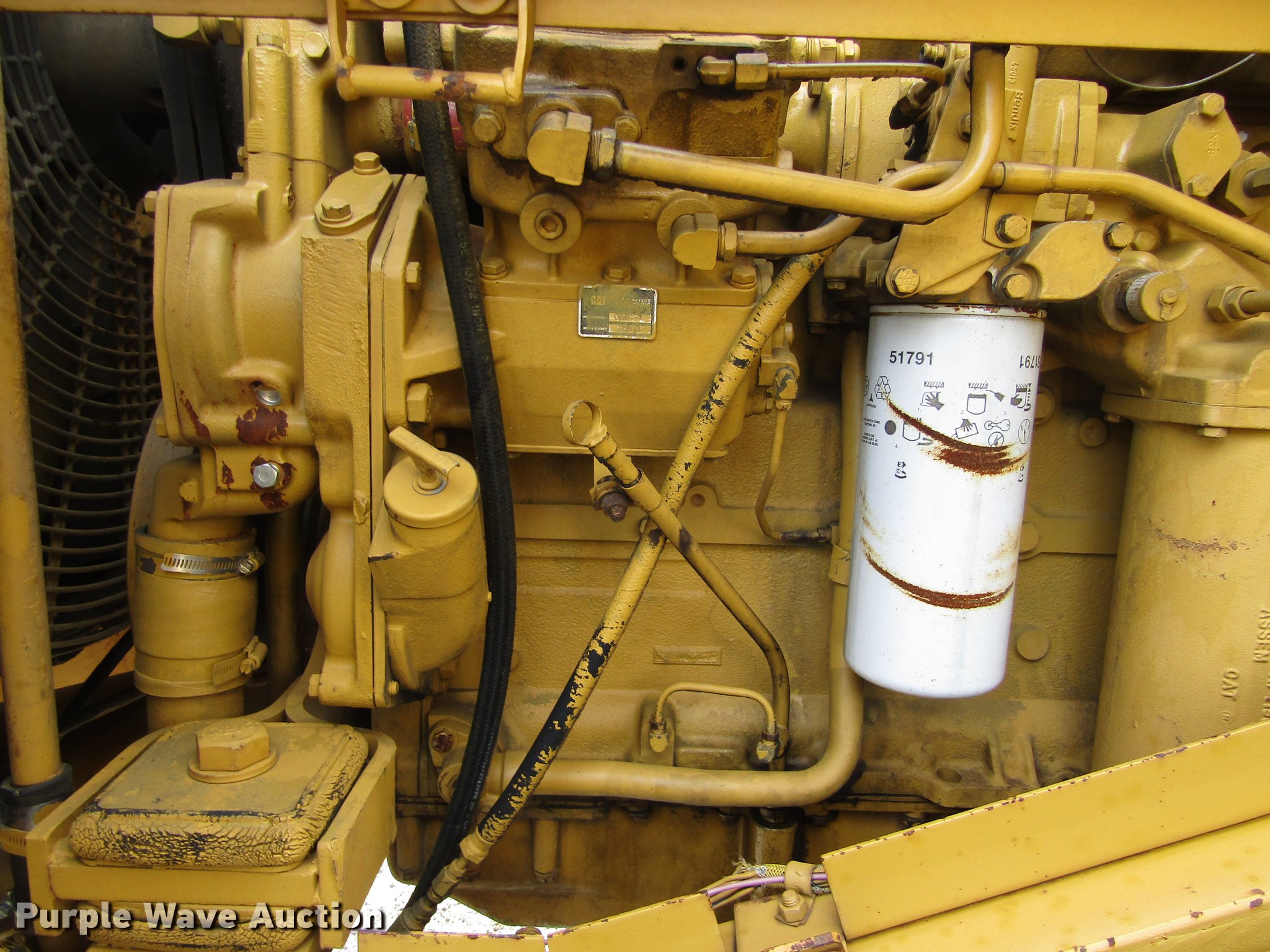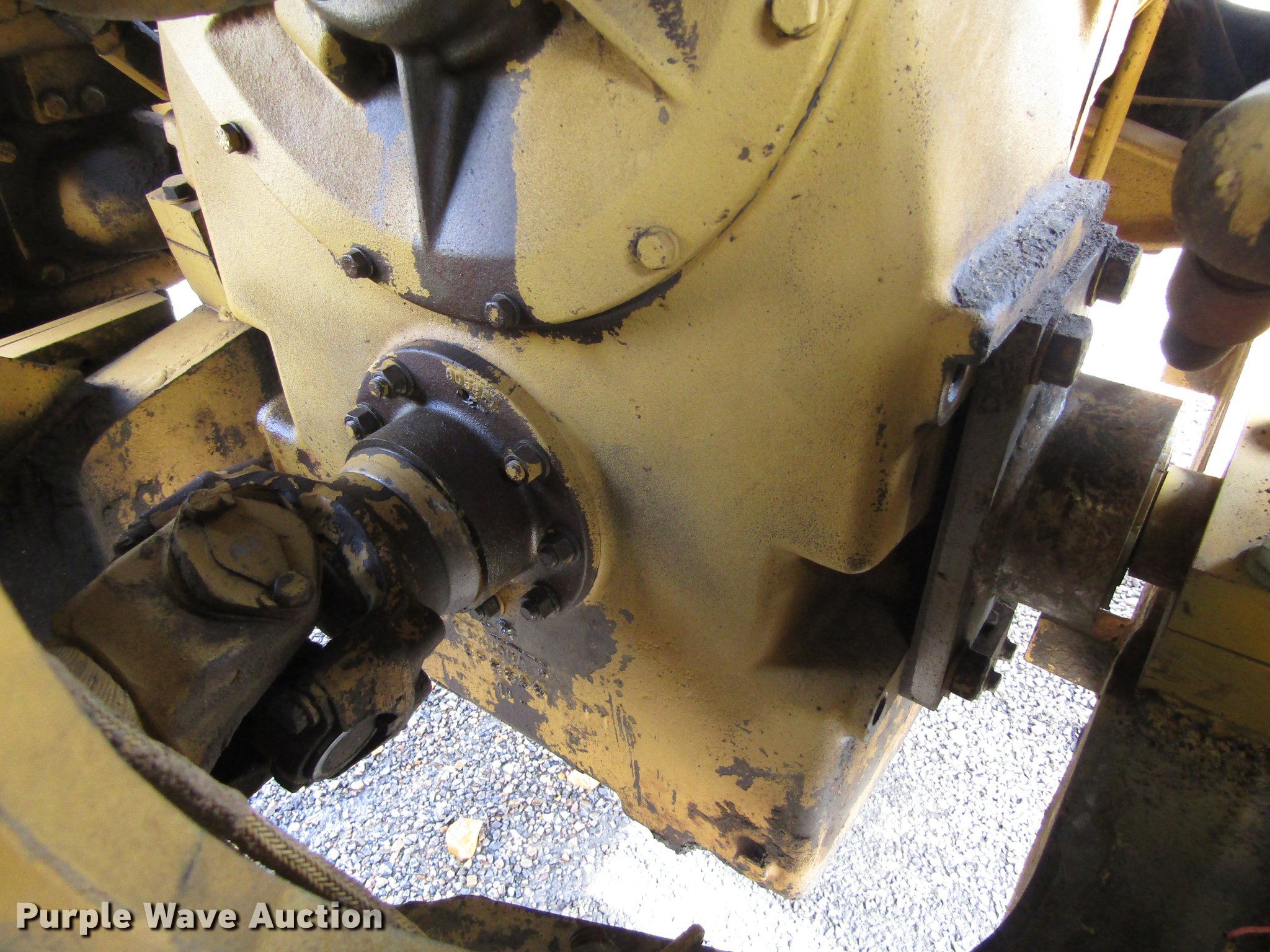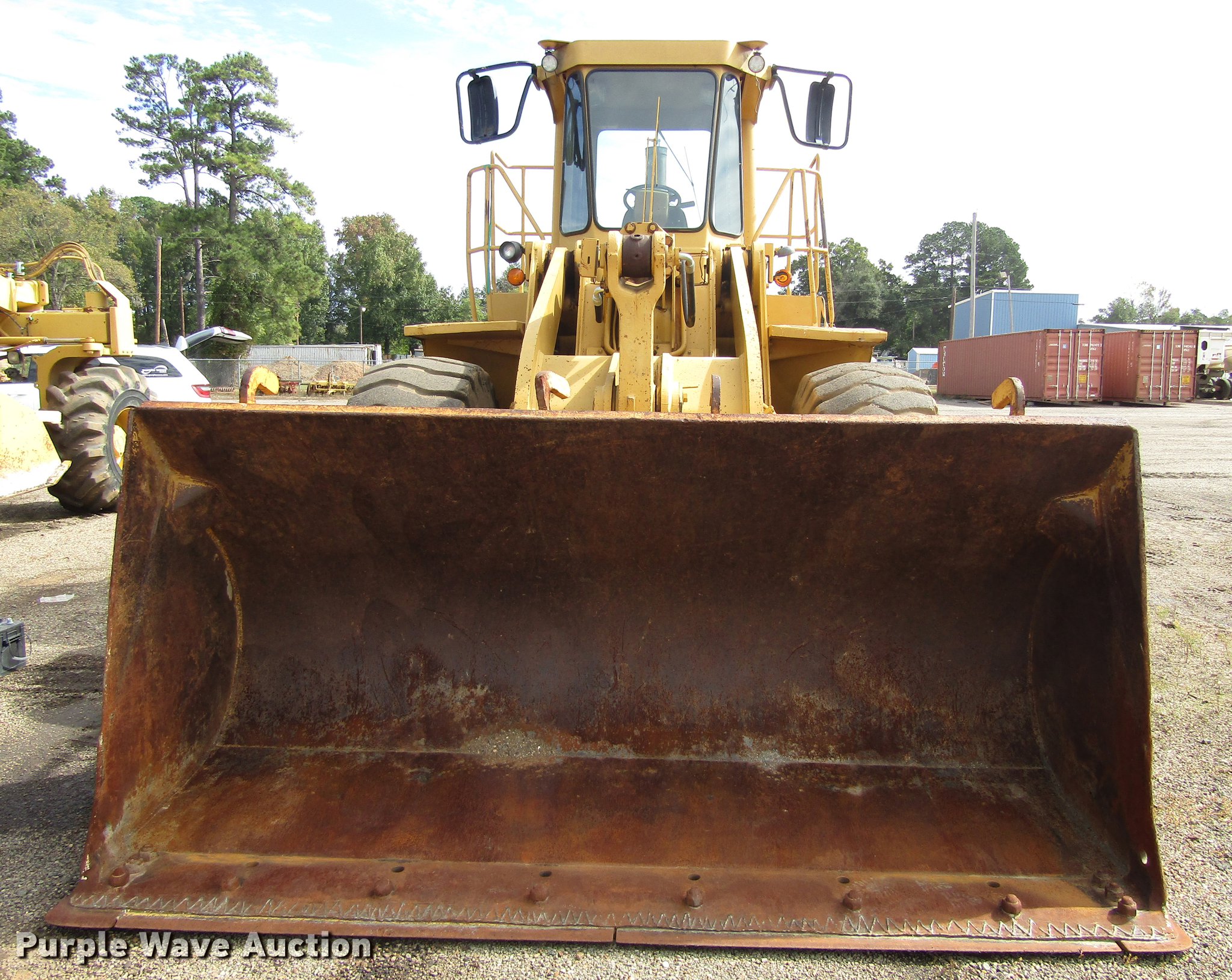 Purple Wave is selling a used Wheel Loader in Texas. This item is a 1983 Caterpillar 966D wheel loader with the following: 20,922 hours on meter, Caterpillar 3306 six cylinder turbo diesel engine, Serial 08Z1572, Shuttle shift transmission, 4F-4R gears, EROPS, Heat, Tilt steering wheel, Suspension seat, Two-lever bucket controls, Wipers, Front and rear work lights, Backup alarm, Ether start, 120"W general purpose bucket, 4 cu.yd. capacity, Bolt-on cutting edge, Manual quick coupler, General 23.5-25 tires, Serial 99Y02383