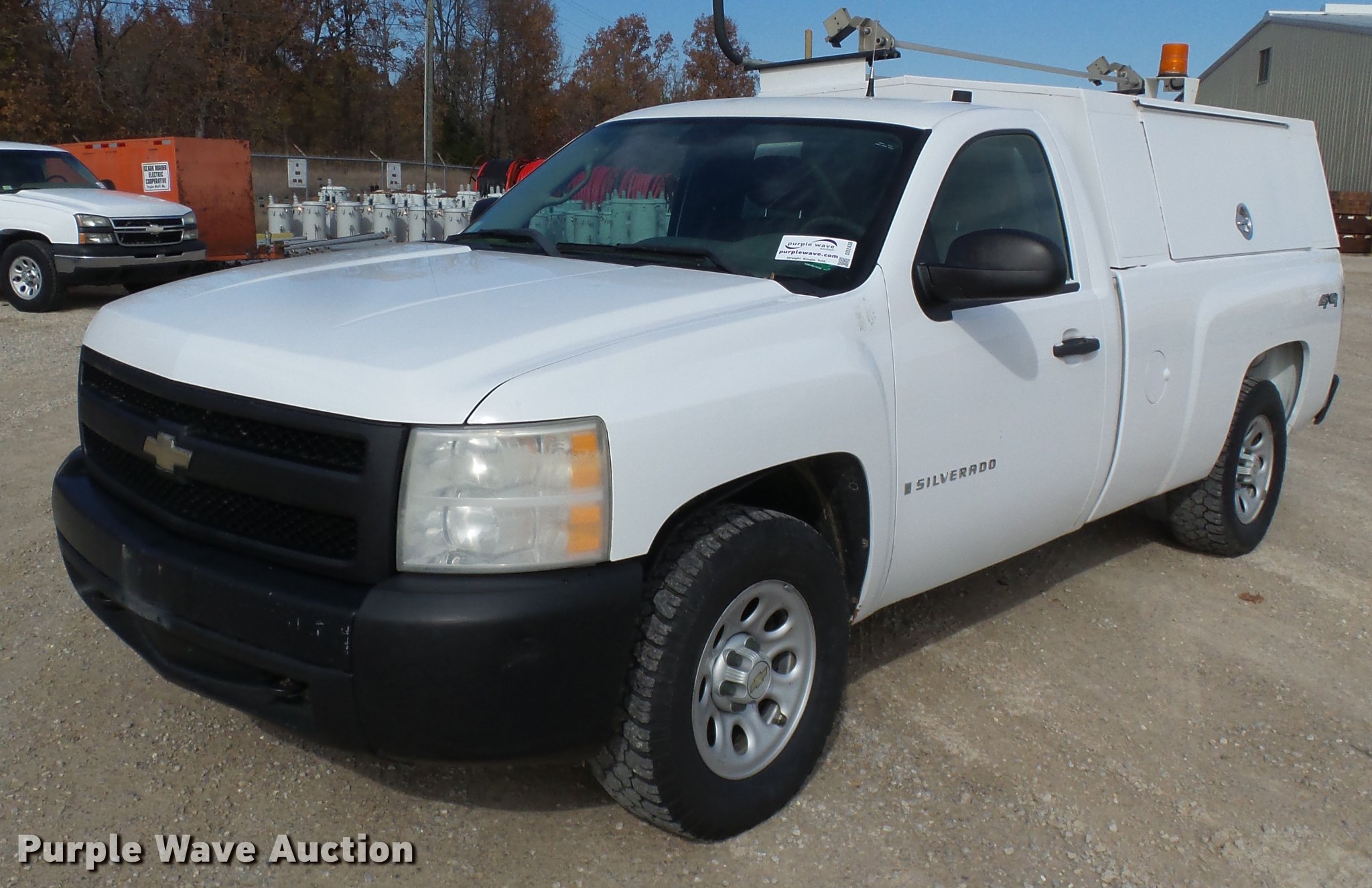 Purple Wave is selling a used 1/2 Ton Pickup or Van in Missouri. This item is a 2008 Chevrolet Silverado 1500 pickup truck with the following: 148,780 miles on odometer, 4.8L V8 OHV 16V gas engine, Automatic transmission, Four wheel drive, AC and heat, Tilt, Cruise, AM/FM/CD, Cloth interior, Front tow hooks, Long bed, Utility topper, Toolbox, Receiver hitch, Trailer wiring, LT265/70R17 tires, Cracked windshield, Check engine light on, Unit# 50