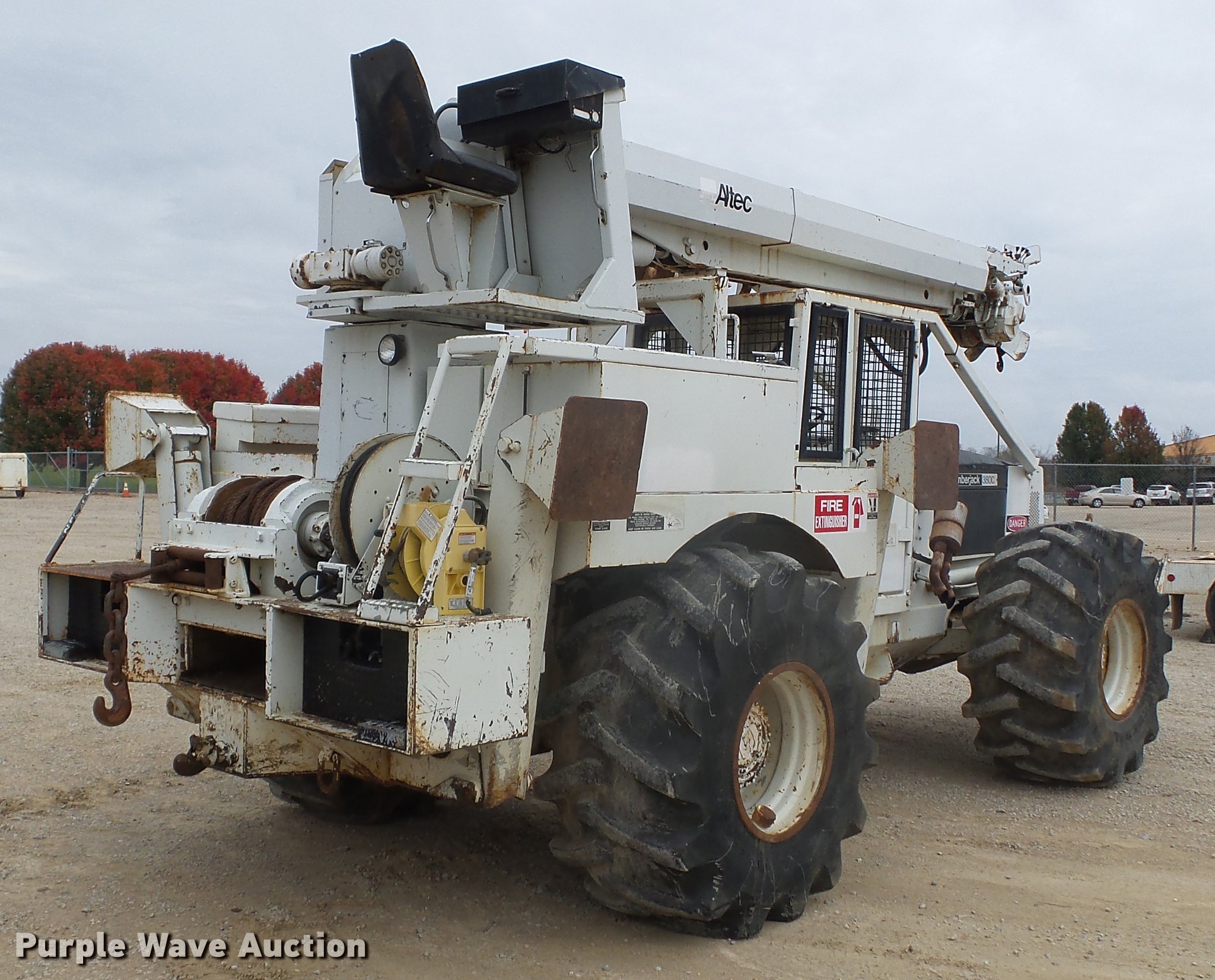 Purple Wave is selling a used Skidder in Missouri. This item is a 1992 Timberjack 380C skidder with digger derrick with the following: 3,041 hours on meter, Cummins 5.9L L6 turbo diesel engine, Serial 60235362, Powershift transmission, 4F-4R gears, Four wheel drive, Suspension seat, Front tow hooks, Altec utility bed, Altec D845ABR boom, 20,230 lbs maximum lift capacity, 45' maximum lift height, Boom rotation, Pole guide, Telescopic boom, 15" diameter auger, Rope material handler, (4) outriggers, Serial 0699RF2701, Certification valid through September 2019, 7'W push blade, Ramsey 123602 rear mounted winch, Hydraulic operation, Serial 1001528, Single fuel tank, Hydraulic brakes, 28L-26 tires, Unit# 92