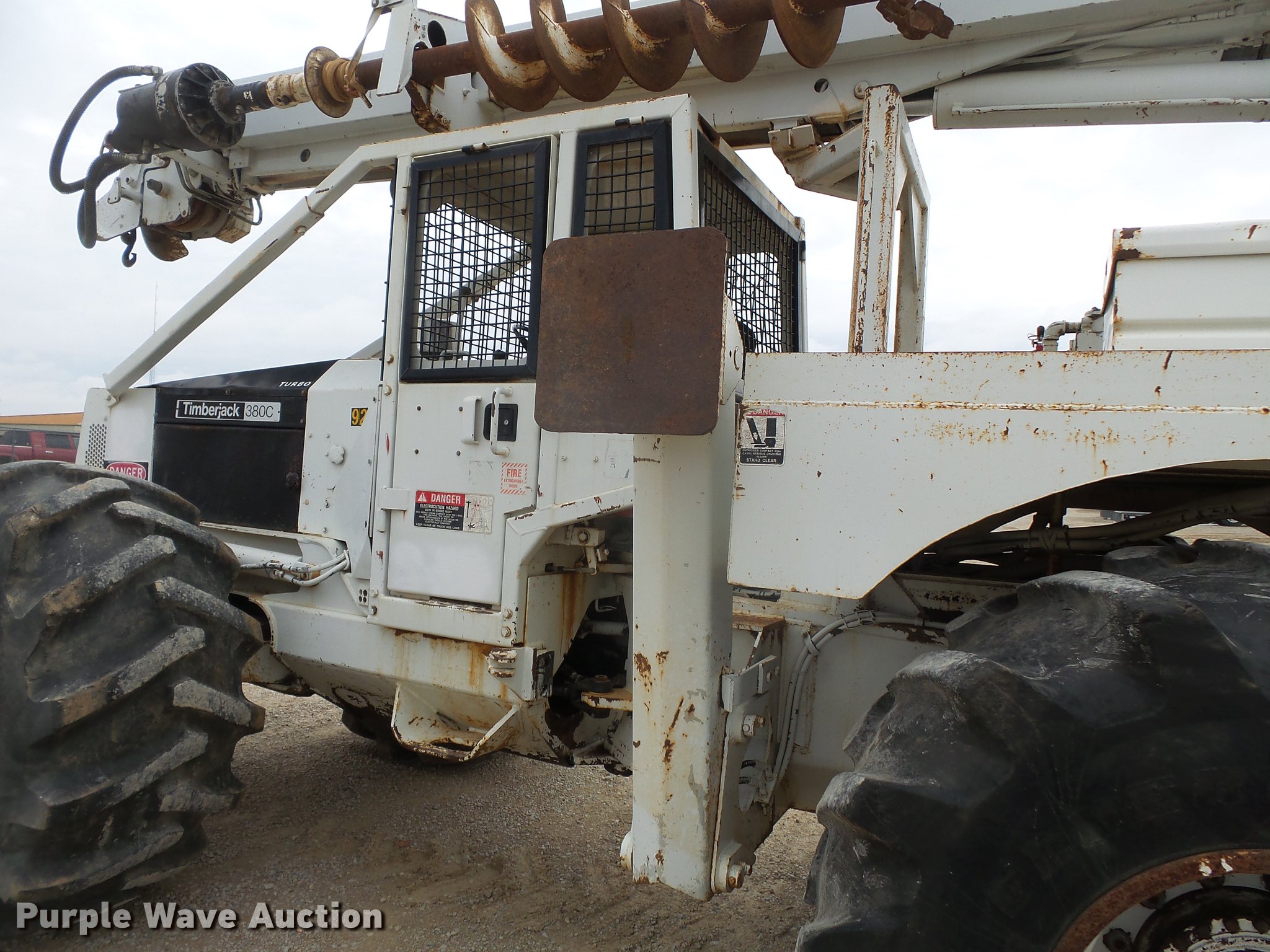 1992 Timberjack 380C skidder with digger derrick. 3,041 hours on meter, Cummins 5.9L L6 turbo diesel engine Serial 60235362, Powershift transmission 4F-4R gears, Four wheel drive, Suspension seat, Front tow hooks, Altec utility bed, Altec D845ABR boom 20,230 lbs maximum lift capacity, 45' maximum lift height, Boom rotation, Pole guide, Telescopic boom, 15" diameter auger, Rope material handler, (4) outriggers, Serial 0699RF2701, Certification valid through September 2019, 7'W push blade, Ramsey 123602 rear mounted winch Hydraulic operation, Serial 1001528, Single fuel tank, Hydraulic brakes, 28L-26 tires, Unit# 92. Black River Electric Cooperative. Fredericktown, MO 63645