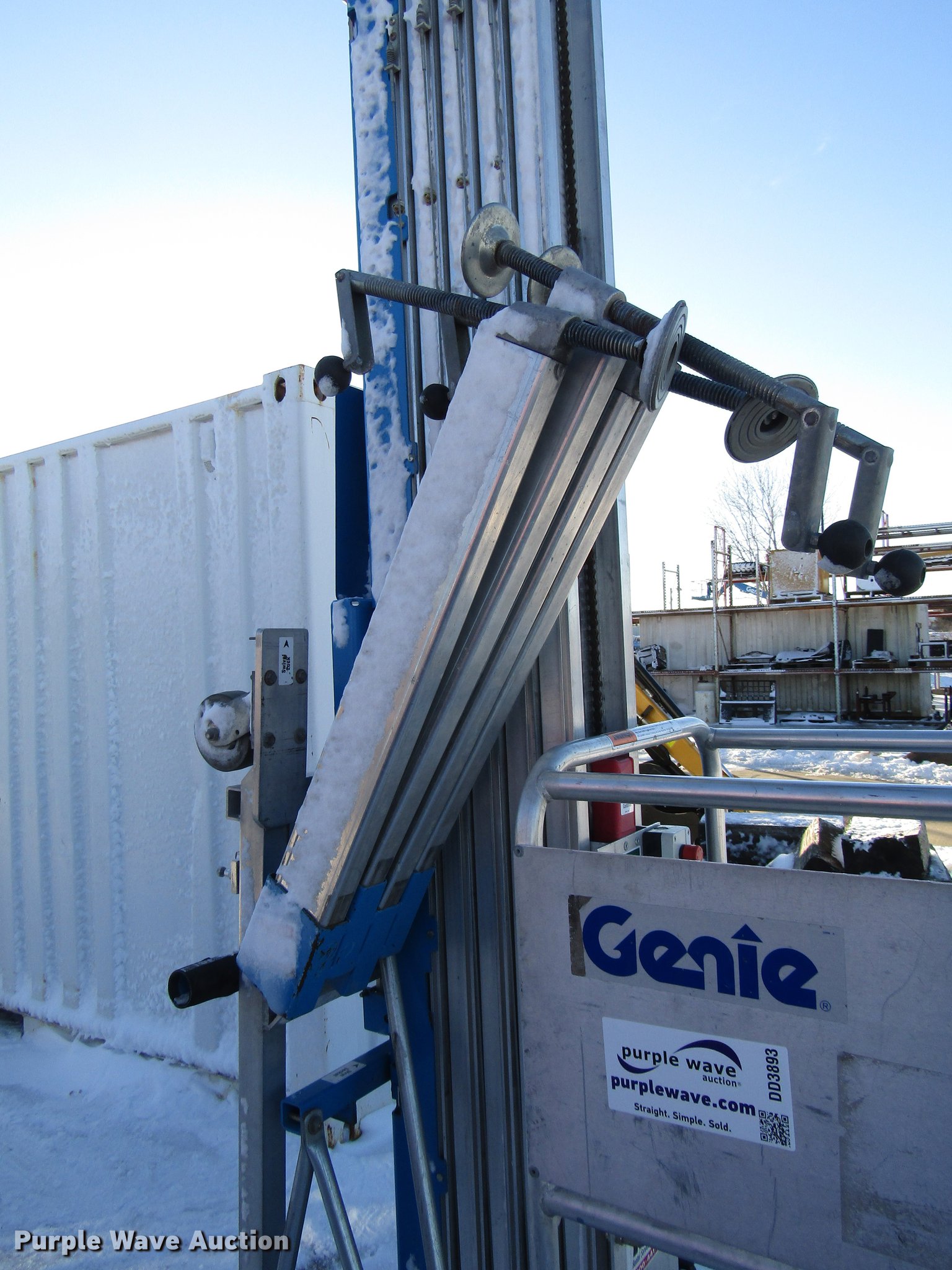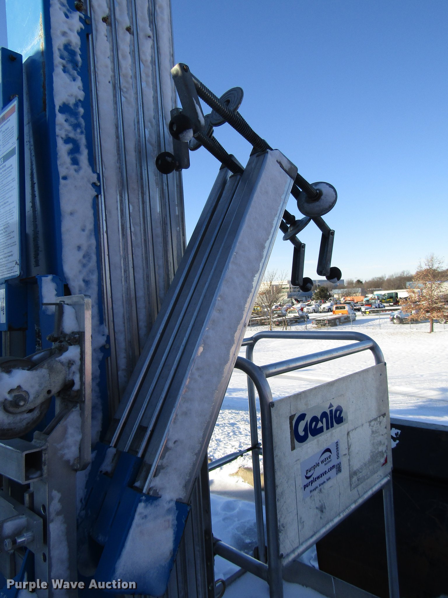 Purple Wave is selling a used Scissor or Vertical Lift in Kansas. This item is a 1999 Genie AWPA36S aerial work platform with the following: 350 lbs maximum lift capacity, 36' maximum platform height, 26" x 27" man basket, AC power outlet, Platform controls, 110V, 50/60 Hz, Outriggers, Solid tires, Unit did not pass annual inspection, Possible battery issues, Possible basket issues, Capacitor needs to be replaced, Mast hook stopper is facing wrong way, Motor cover missing, Ground control box damaged, Tilt frame damaged, Unit may have been dropped, Serial 3899-12183