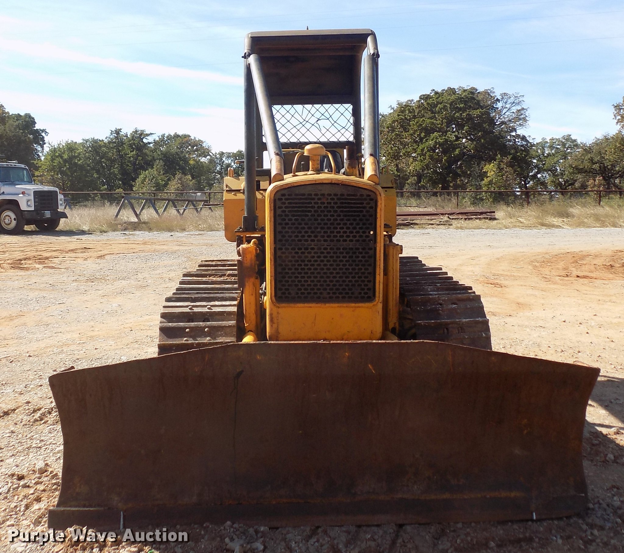 John Deere 450B dozer. John Deere four cylinder turbo diesel engine, Powershift transmission 6F-3R gears, Canopy, Suspension seat, Clutch brake steering, Sweeps, Screen guards, 88"W angle dozer blade, Rear draw bar, 16"W single grouser track pads, Frame welds. Banner Oil & Gas. Loco, OK 73442